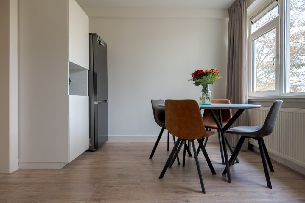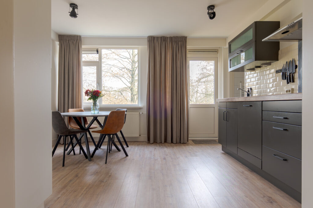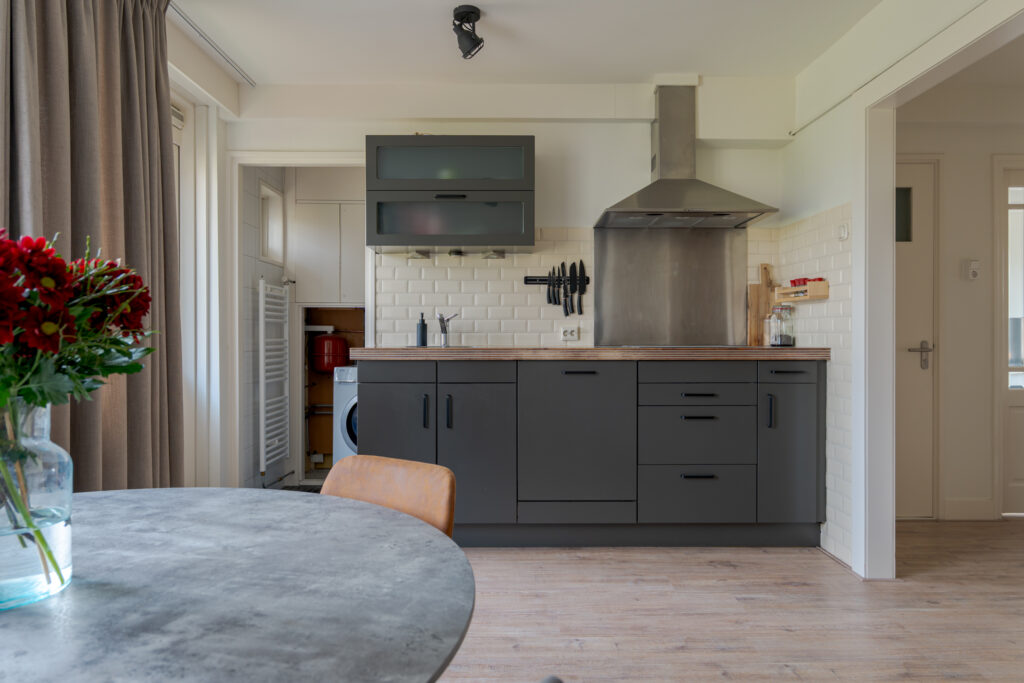 De royale keuken is separaat gelegen en beschikt eveneens over een eigen balkon. De opstelling is praktisch en is voorzien van veel licht door diverse raampartijen. Met ruimte voor een ruime eettafel kan je hier je gasten ontvangen voor een gezellig diner of borrelafspraak. Aangrenzend bevindt zich de badkamer, voorzien van een douche, wastafelmeubel en aansluiting voor de wasmachine en cv-ketel. Het separate toilet in de hal is in 2025 gerenoveerd en voorzien van een eigentijdse look.