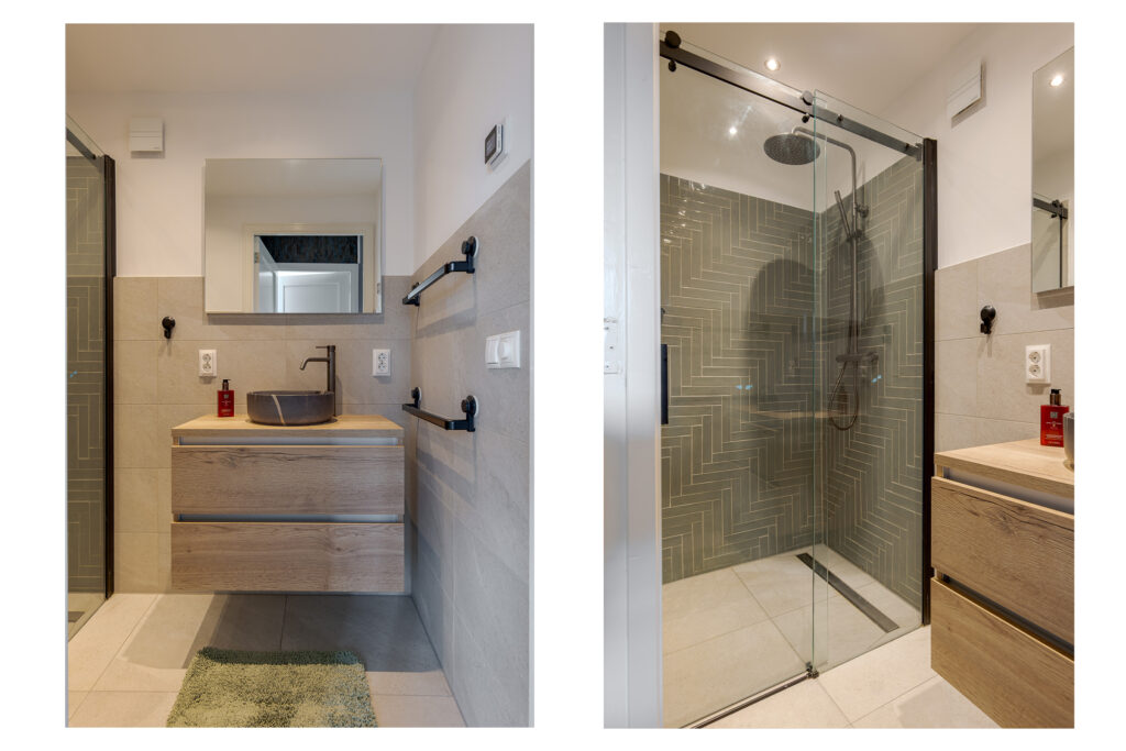 • Twee badkamers, beide met douche en wastafelmeubel (waarvan één met toilet);