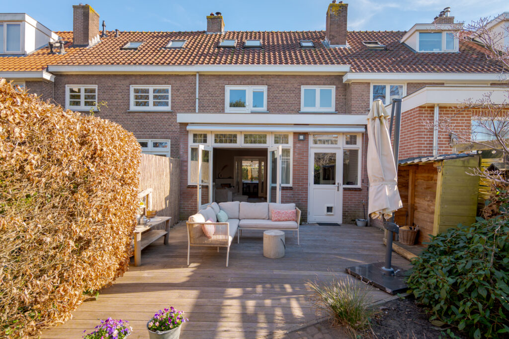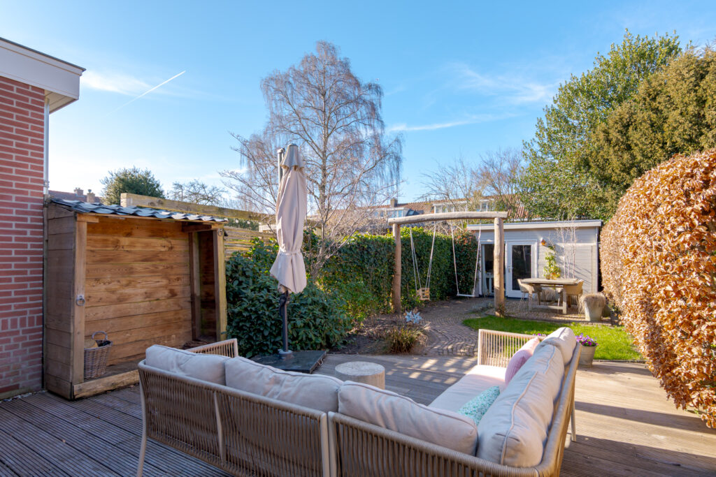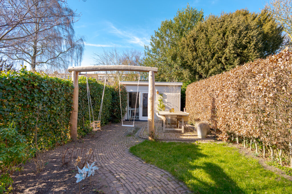 De achtertuin is opvallend diep en gelegen op het noordwesten. Hierdoor is er zowel in de ochtend, als verder op de dag altijd een fijne plek in de zon of schaduw te vinden. De tuin is verzorgd aangelegd met klinkerbestrating, hagen voor privacy en een pergola die voor extra sfeer zorgt. Achterin de tuin bevindt zich een vrijstaand thuiskantoor. Een ideale ruimte voor werken aan huis, een atelier of hobbyruimte, los van de woning maar toch dichtbij. Onopvallend is de naastgelegen, ruime berging, ideaal voor tuinspullen en gereedschap!