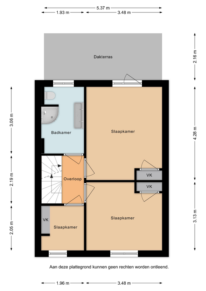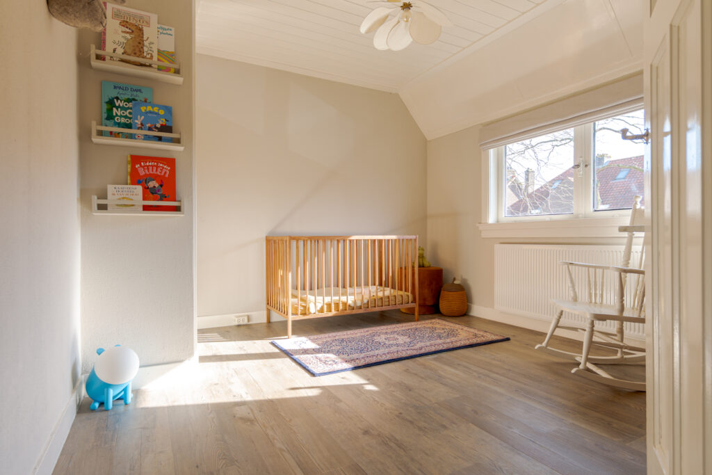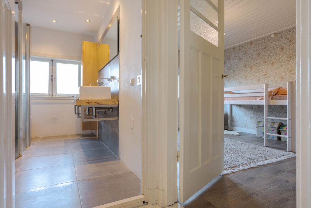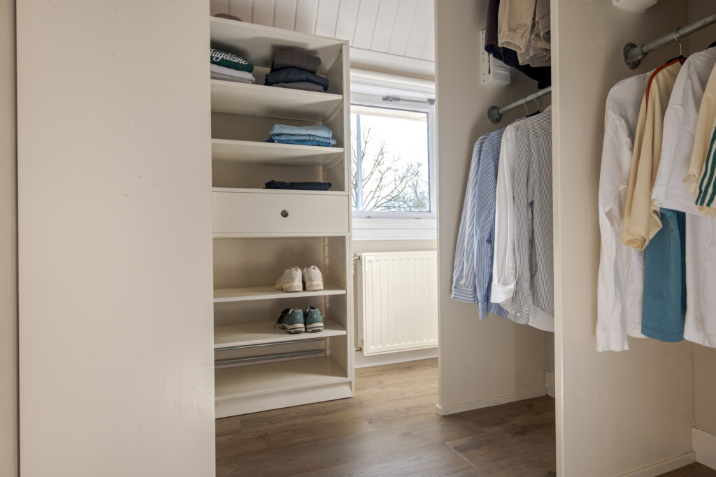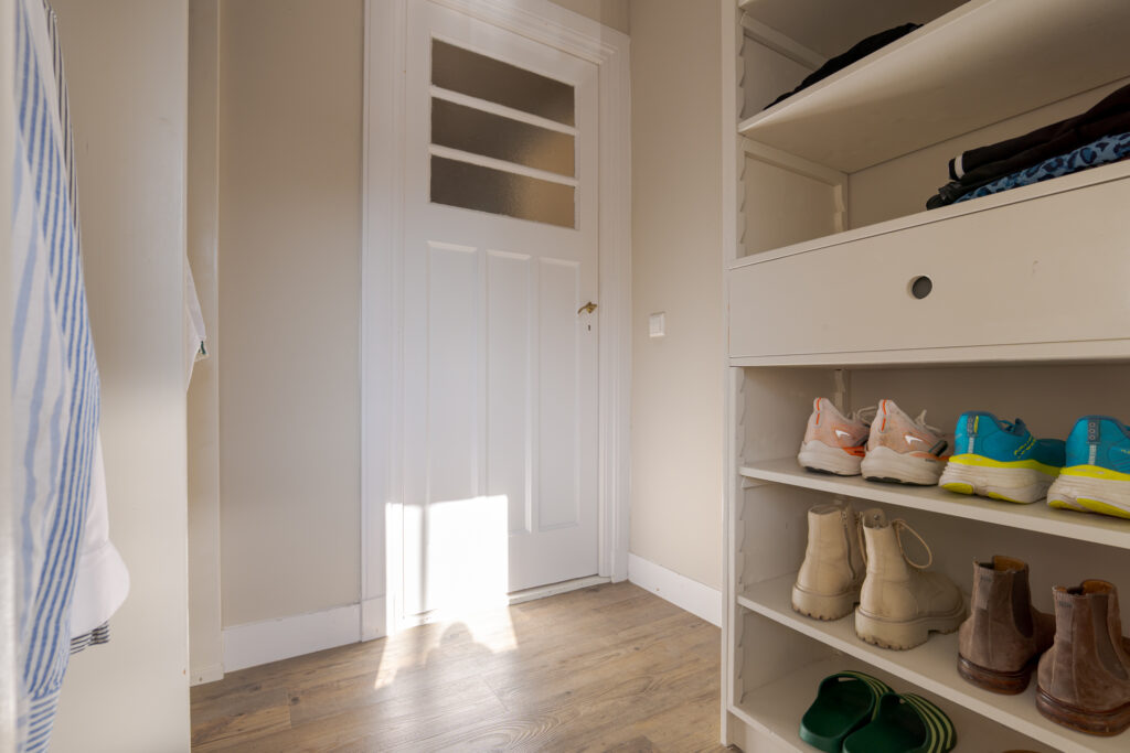 Op de eerste verdieping bevinden zich drie slaapkamers van verschillende afmetingen. De twee grootste slaapkamers zijn voorzien een praktische inbouwkast. De derde slaapkamer is momenteel in gebruik als kleedkamer. Aan de achterzijde biedt de slaapkamer toegang tot het platte dak van de uitbouw. De badkamer is modern uitgevoerd en voorzien van een inloopdouche, toilet, een dubbele wastafel en elektrische vloerverwarming, waardoor u hier comfortabel de dag kunt beginnen.