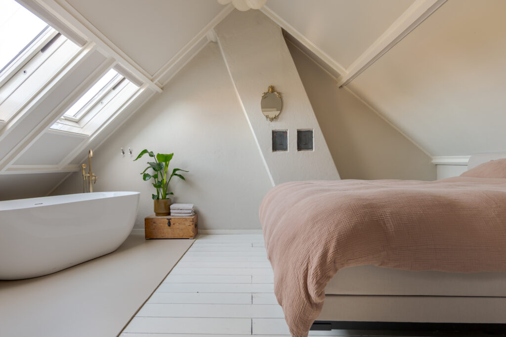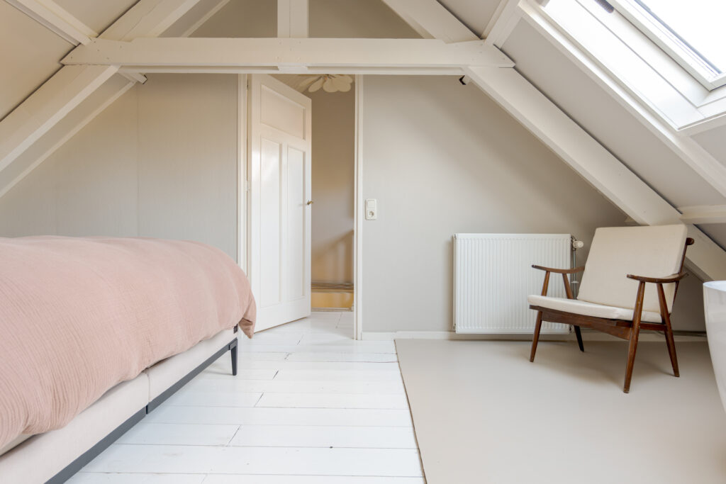 De tweede verdieping verrast met een royale vierde slaapkamer onder de schuine kap. De dakramen zorgen hier voor prettig daglicht. Het vrijstaande ligbad in deze ruimte maakt dit vertrek bijzonder en geeft een bijna hotelachtige sfeer, een fijne plek om tot rust te komen! Op de voorzolder is toegang tot de extra bergruimte, tevens bevindt zich hier de stookruimte.