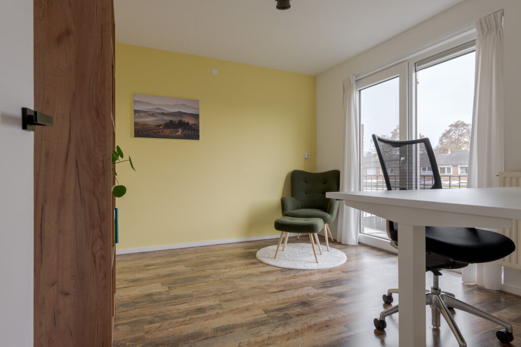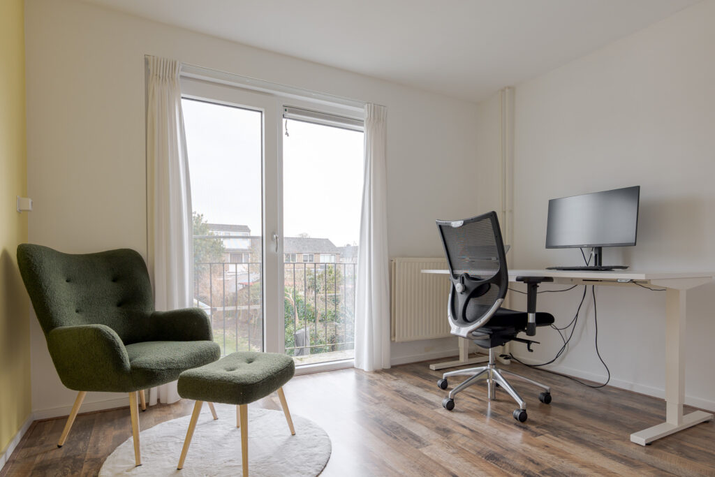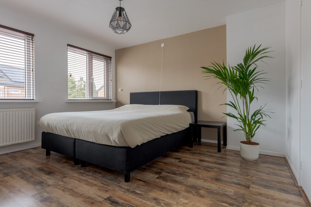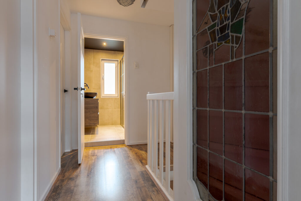 Op de eerste verdieping bevinden zich drie slaapkamers van verschillende afmetingen. De kamers zijn functioneel ingedeeld en geschikt voor gebruik als slaap-, werk- of hobbykamer. De badkamer is onlangs gerenoveerd en uitgevoerd in sfeervolle aardetinten, die mooi contrasteren met de moderne zwarte accenten. De badkamer beschikt over een douche, dubbel wastafelmeubel en toilet. Op deze verdieping zijn tevens vaste kasten aanwezig en één van de slaapkamers biedt toegang tot het balkon.