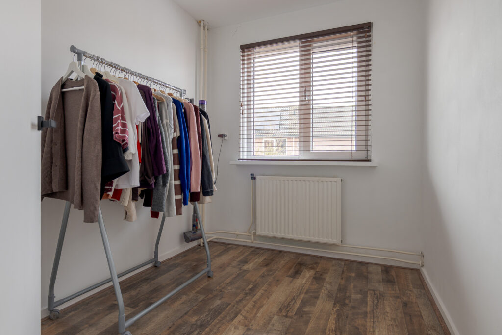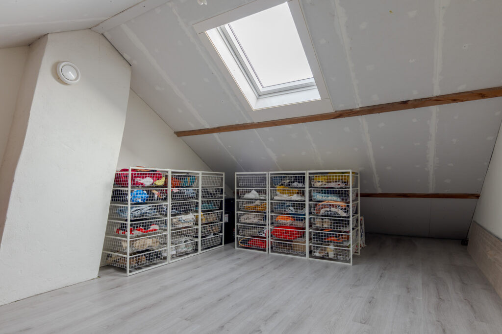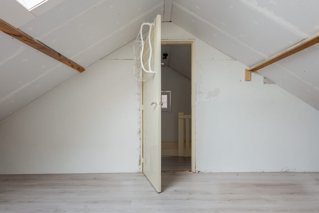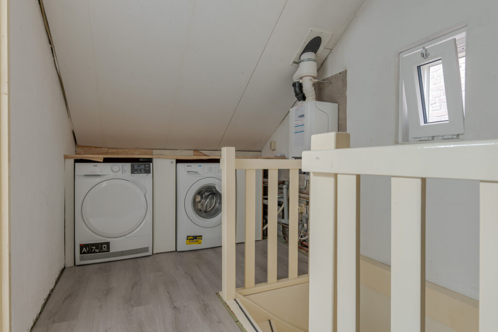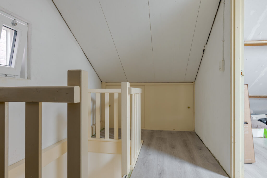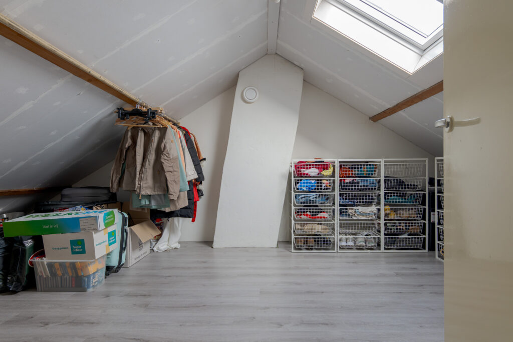 De tweede verdieping is bereikbaar via een vaste trap. Op de overloop bevindt zich de ketelopstelling en daarnaast is hier nog een extra slaapkamer met dakraam aanwezig. Ook is er bergruimte beschikbaar achter de knieschotten.