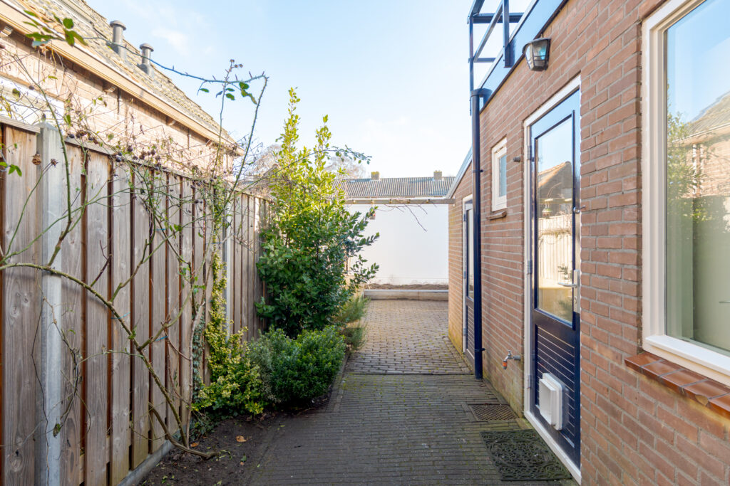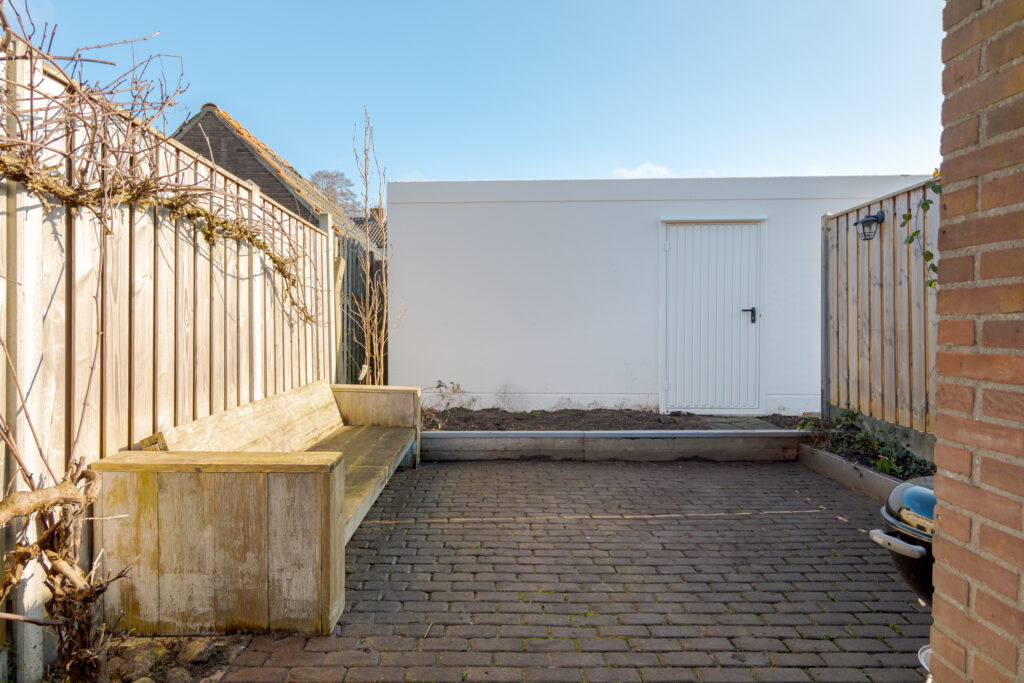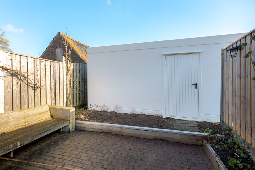 De achtertuin is gelegen op het noordoosten en gezellig ingericht met zowel bestrating als borders. Momenteel wordt gebruikgemaakt van een berging achter het perceel. Deze berging betreft een verplaatsbare unit en wordt gehuurd. De mogelijkheid bestaat om de berging en bijbehorende grond in overleg te huren of te kopen. Nadere informatie hierover is op aanvraag beschikbaar.