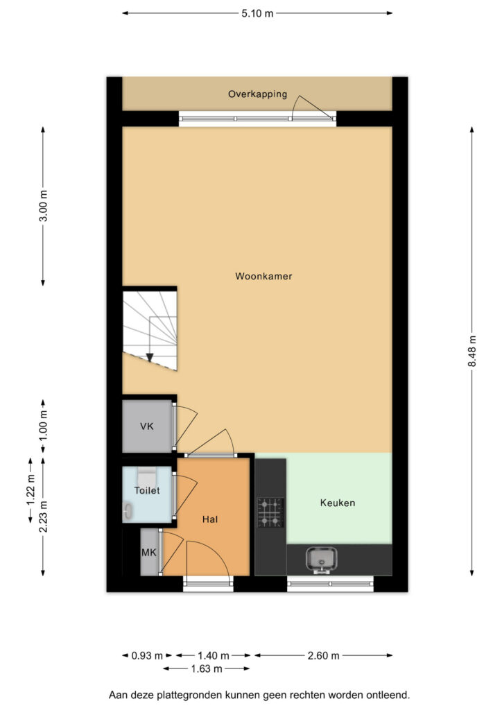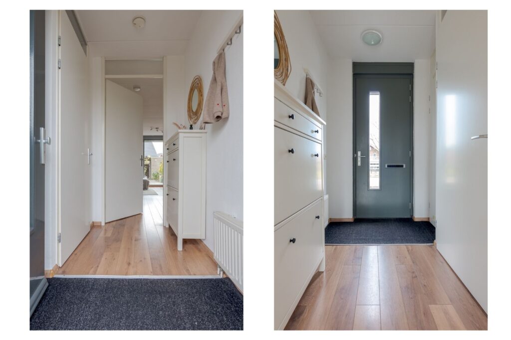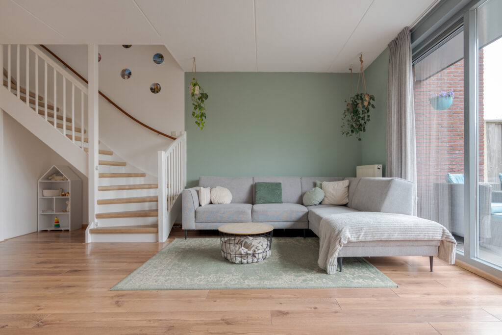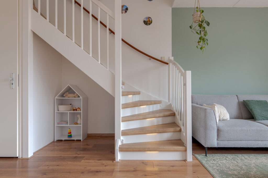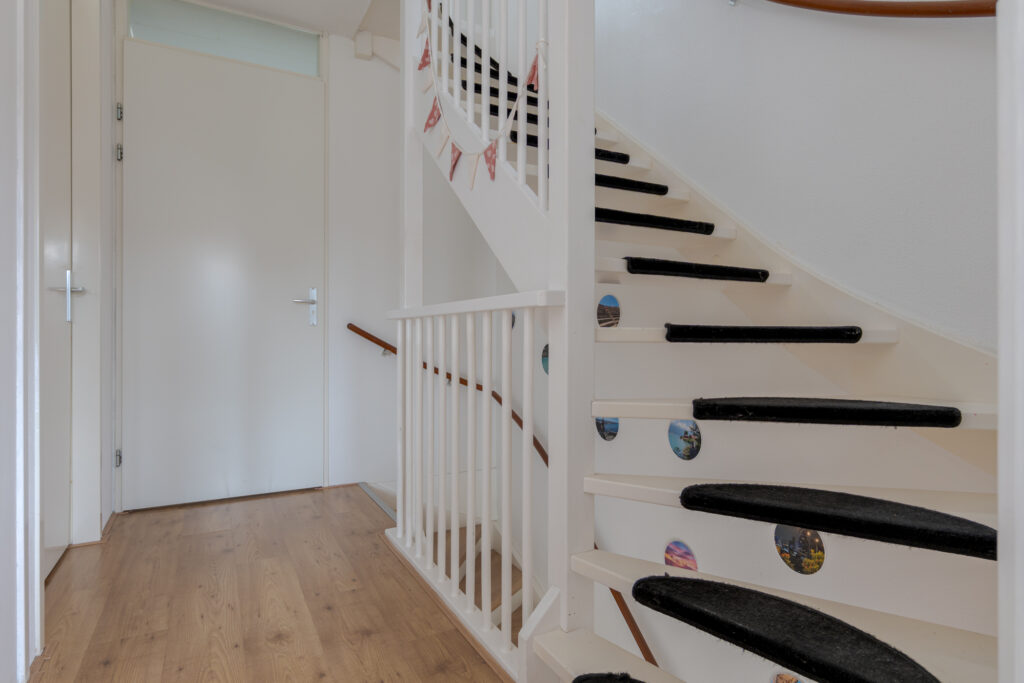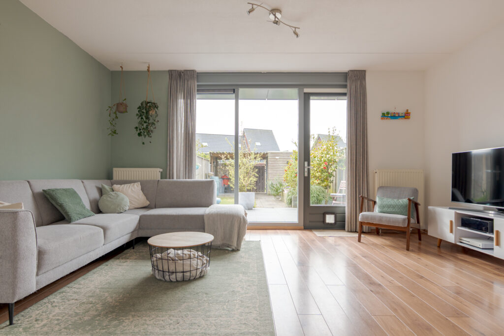 Via de entree komt u in de hal met meterkast en toilet. Aan de voorzijde van de woning bevindt zich de open keuken, uitgevoerd in een moderne opstelling met prettig zicht naar buiten. Aansluitend loopt u door naar de woonkamer aan de tuinzijde. Deze is heerlijk licht dankzij de grote raampartij en de directe verbinding met de achtertuin. De houten vloer en de neutrale afwerking zorgen voor een warme en verzorgde uitstraling, waardoor u zich hier direct thuis voelt. Ook beschikt de woonkamer over een praktische opbergkast en is de trap hiernaast terug te vinden.