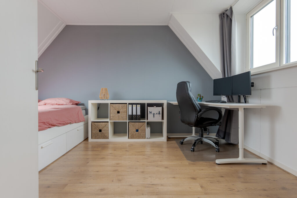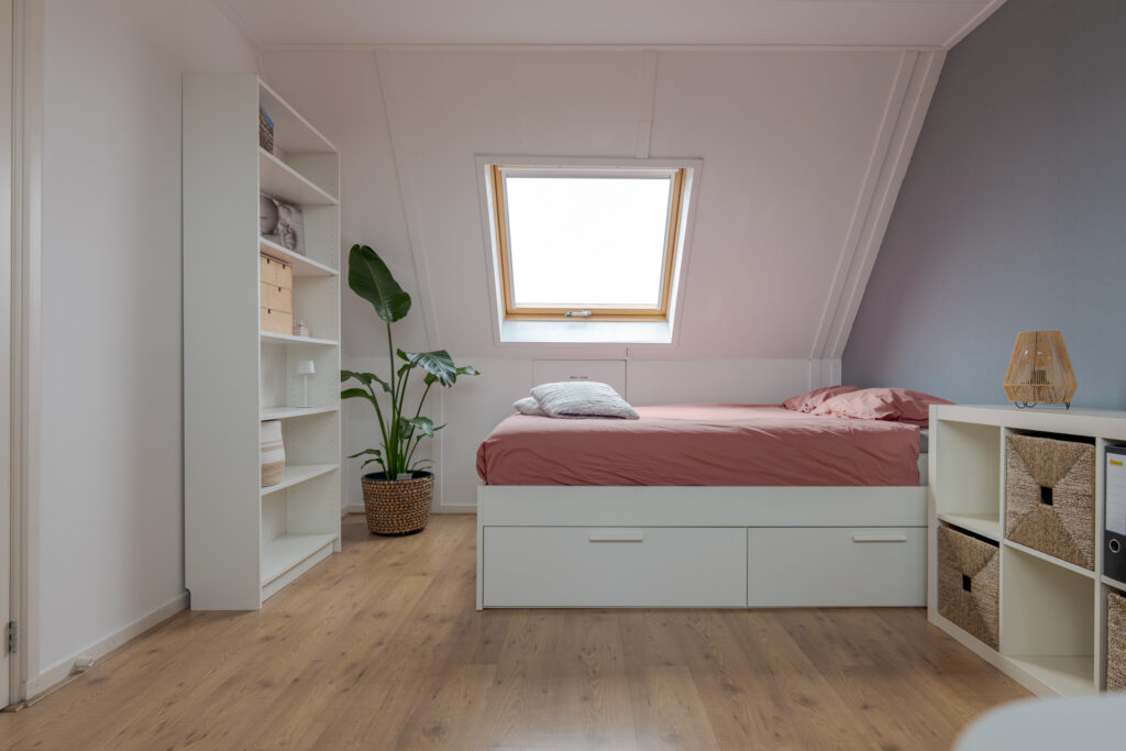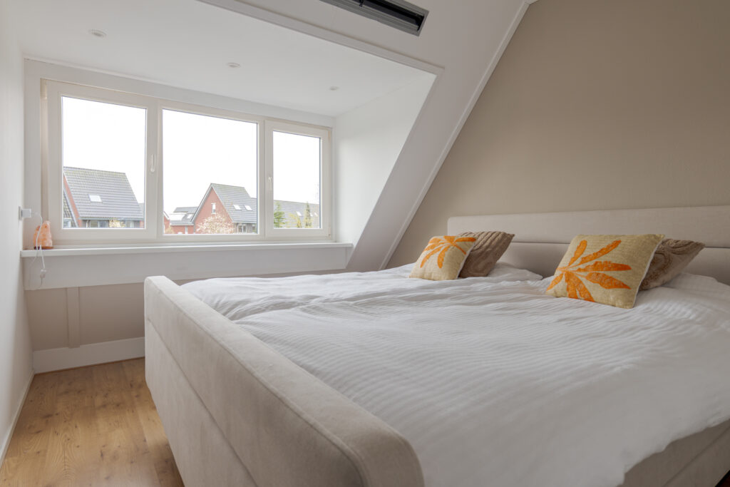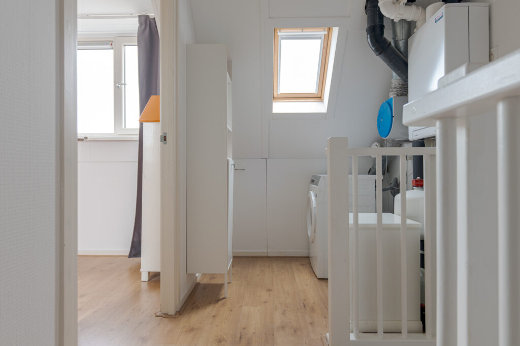 Via een vaste trap bereikt u de tweede verdieping. Hier treft u een ruime vierde slaapkamer met veel daglicht, evenals een aparte was-/stookruimte. Daarnaast is er extra bergruimte aanwezig, wat deze verdieping bijzonder praktisch maakt.