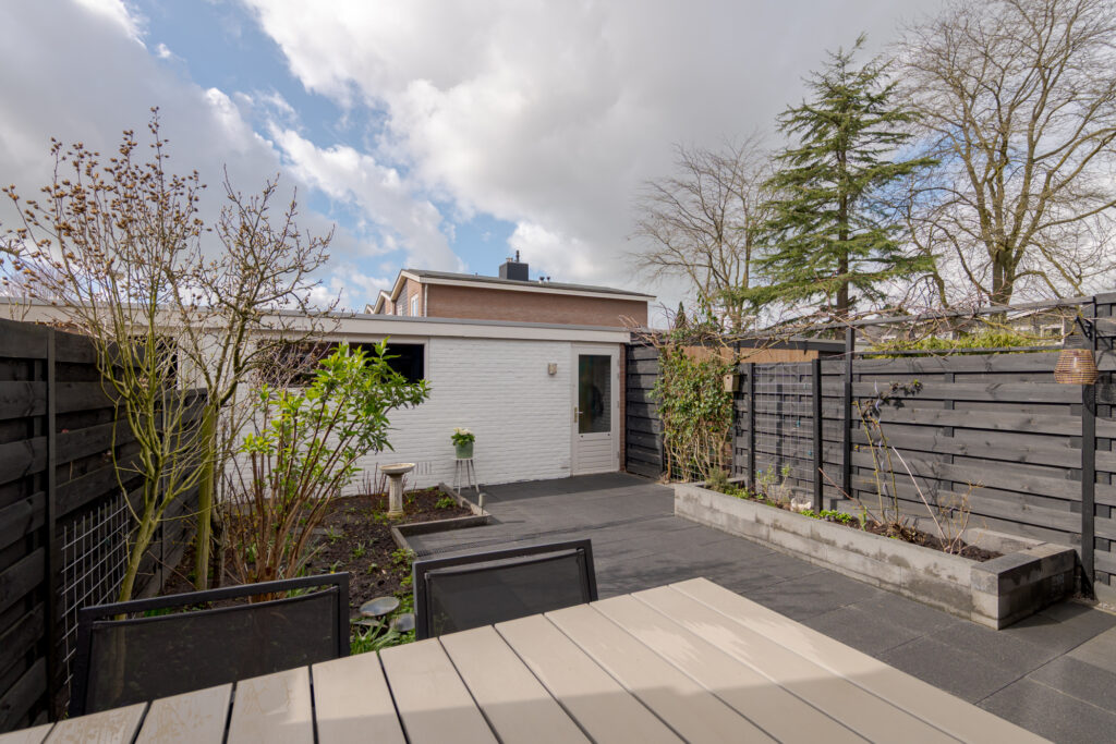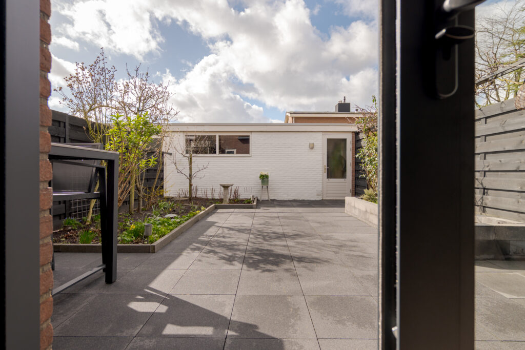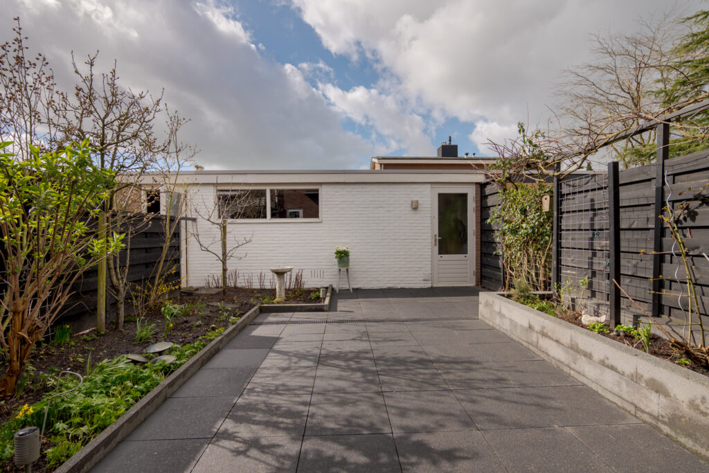 Buiten beschikt de woning over een verzorgde en strak vormgegeven voor- én achtertuin. De achtertuin is diep en ligt gunstig op het zuidwesten, waardoor u hier prettig van de zon kunt genieten. De zonwering aan de achtergevel zorgt voorde nodige schaduw op zonnige en warme dagen. De bestrating en de diepte van de tuin bieden volop ruimte voor meerdere zitplekken en een praktische inrichting. Achterin is de royale garage van 31 m2 gelegen. Het aanwezige keuken blok maakt deze ruimte geschikt voor meerdere doeleinden.