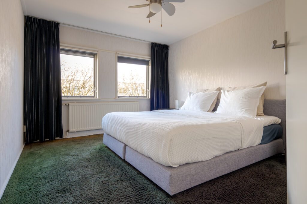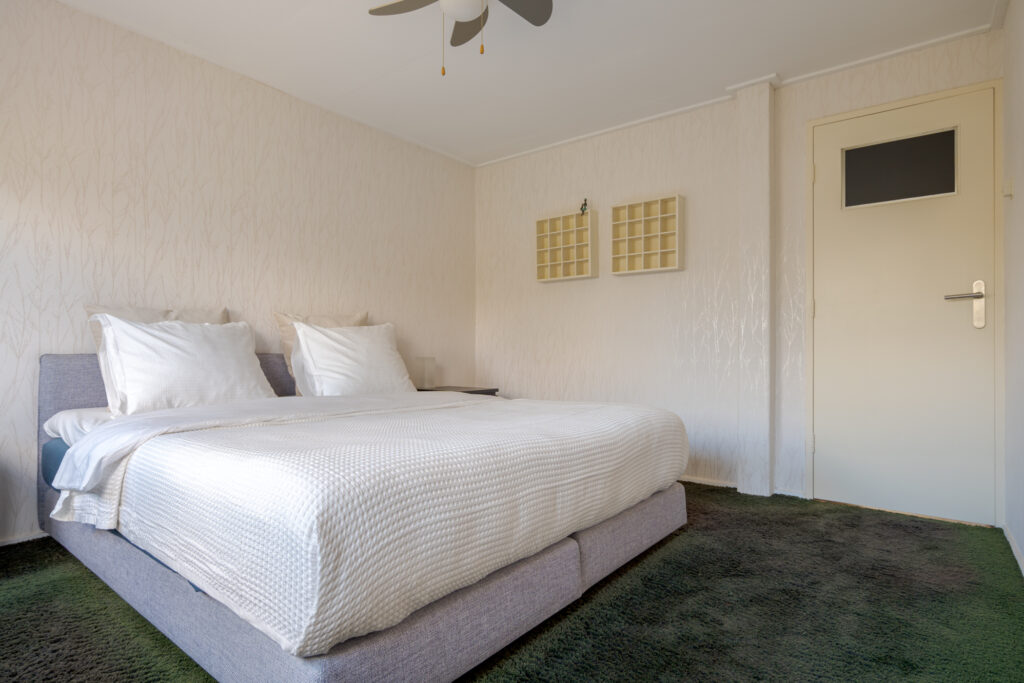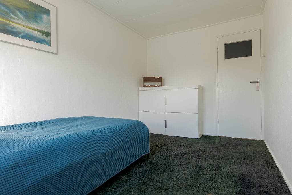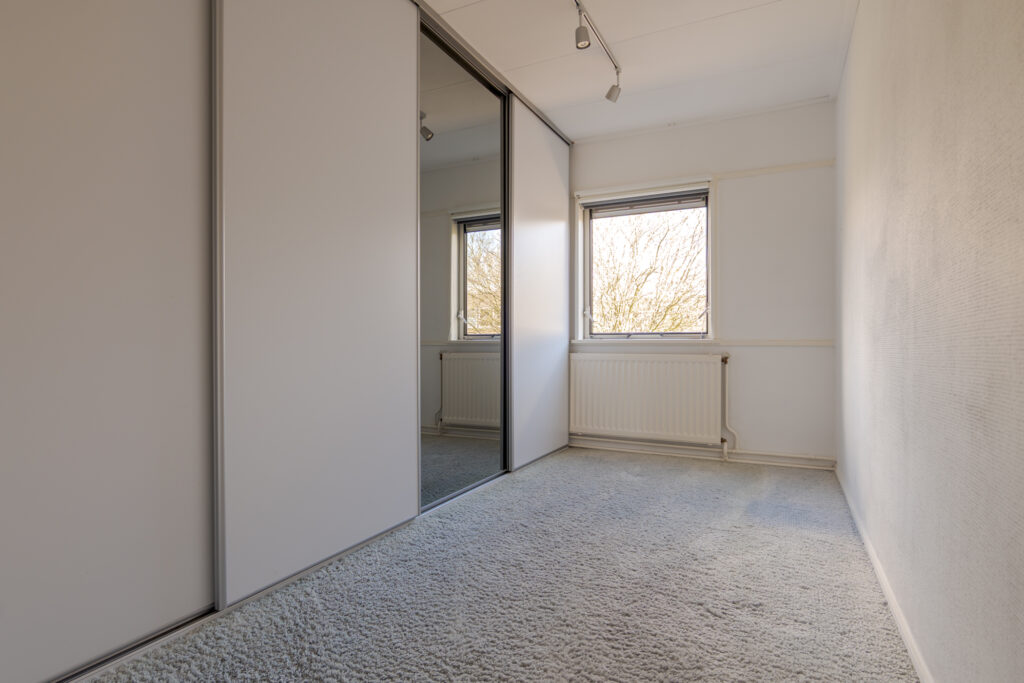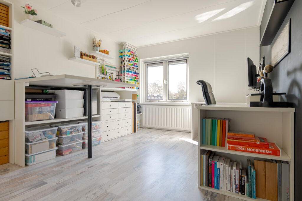 Op de eerste verdieping geeft de overloop toegang tot maar liefst vier slaapkamers en de badkamer. Twee slaapkamers zijn ruimer van opzet, terwijl de andere kamers ook uitstekend gebruikt kunnen worden als kinder-, werk- of logeerkamer. De badkamer is compact en functioneel ingedeeld met douche en wastafel en toilet. Vanuit een van de slaapkamers is er middels een vlizotrap toegang tot een bergzolder.