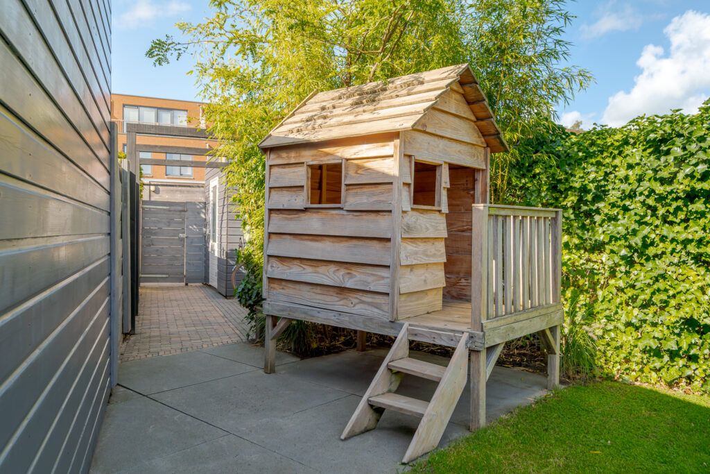 De buitenruimte is een groot pluspunt van deze woning. De nette en verzorgde achtertuin is maar liefst circa 24 meter diep en gelegen op het westen, waardoor u tot in de avond van de zon kunt genieten. Daarnaast beschikt de woning over een voortuin en zijtuin, wat zorgt voor extra ruimte en privacy. Het terras is te overdekken waardoor u ook lekker in de schaduw kan zitten. De vrijstaande houten berging is plaats voor fietsen en tuingereedschap en via de achterom is de tuin goed bereikbaar