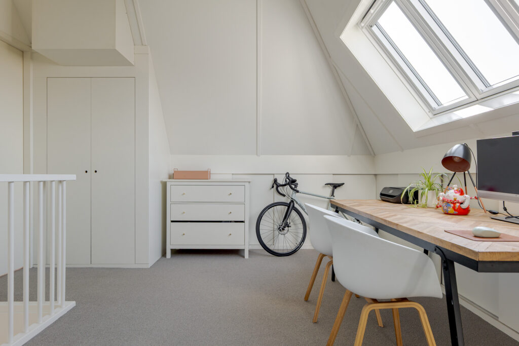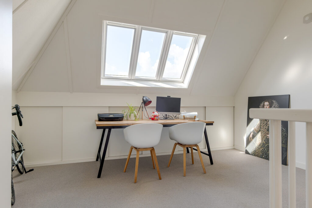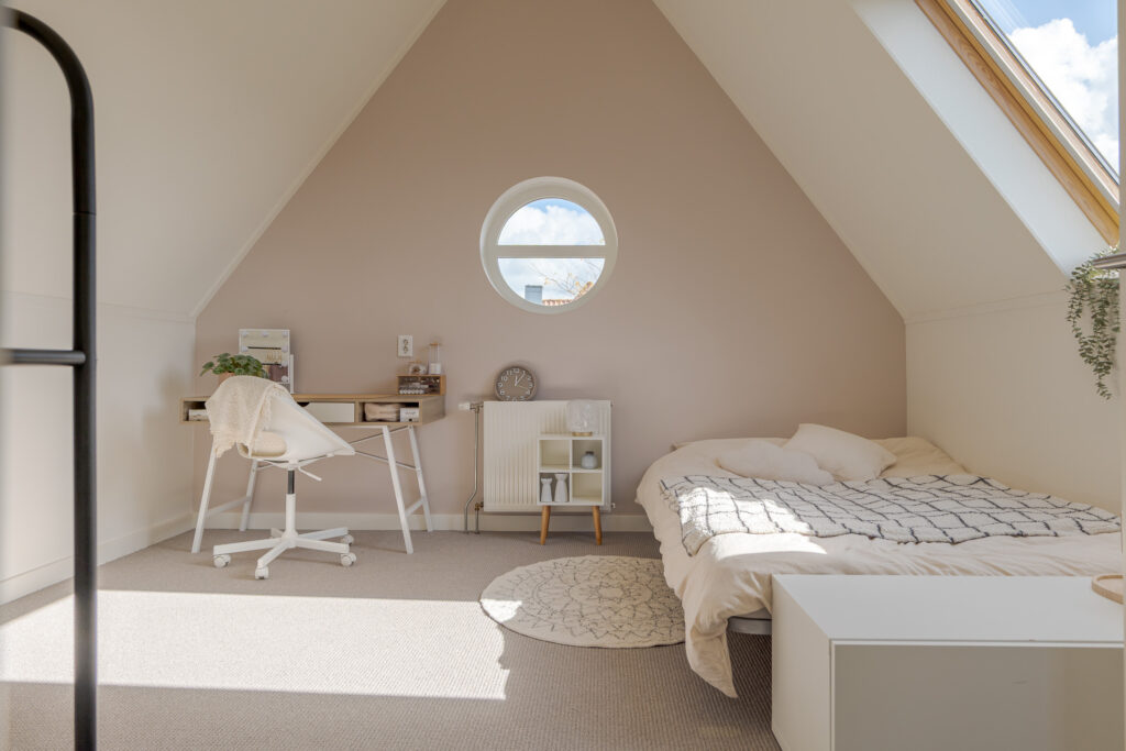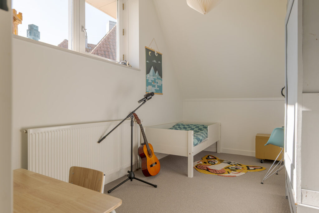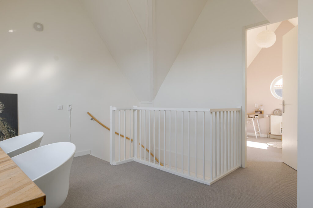 Op de eerste verdieping bevinden zich meerdere slaapkamers van goed formaat en een sfeervolle badkamer. Deze is compleet uitgerust met een ligbad, douche, dubbele wastafel en toilet, wat zorgt voor comfort en gebruiksgemak. Er bevindt zich hier ook een afgesloten ruimte voor de wasmachine. De tweede verdieping is eveneens volwaardig en ingericht met een extra slaapkamer, en een stookruimte. Dankzij het dakraam is ook deze verdieping aangenaam licht en uitstekend bruikbaar, bijvoorbeeld als werk- of hobbyruimte.