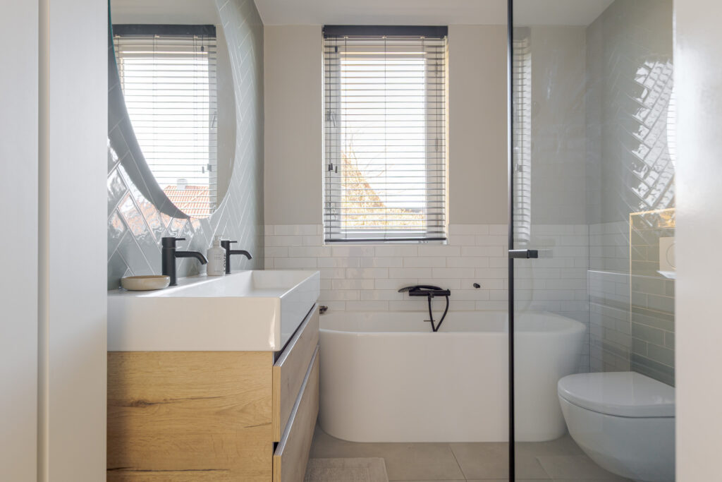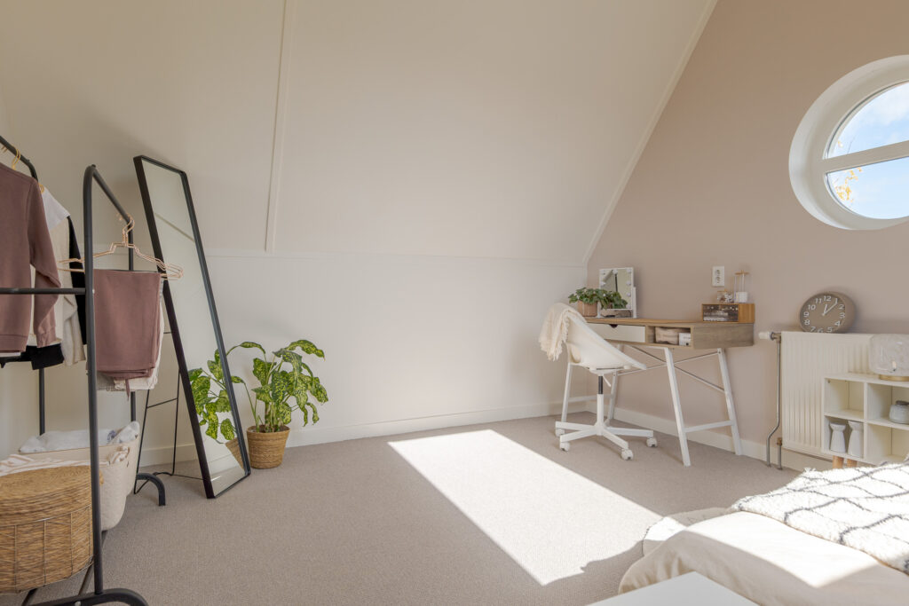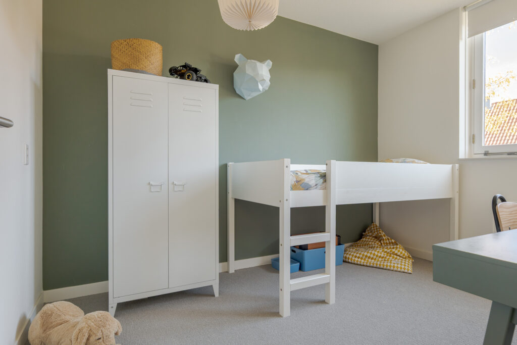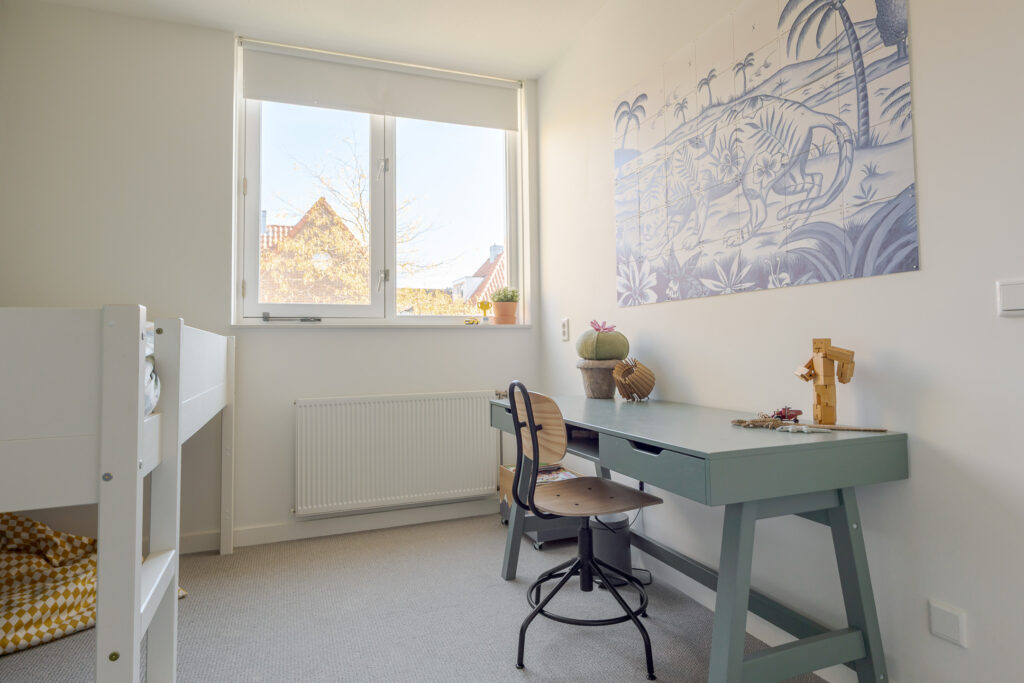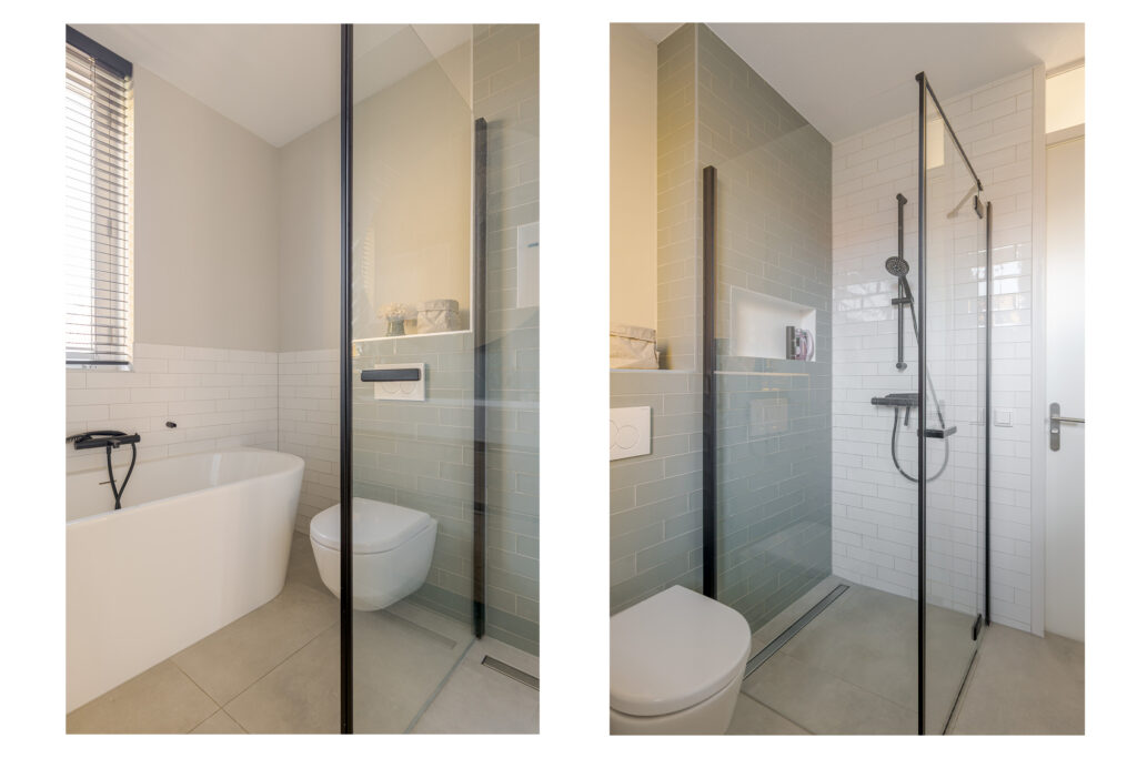 Op de eerste verdieping bevinden zich meerdere slaapkamers van goed formaat en een sfeervolle badkamer. Deze is compleet uitgerust met een ligbad, douche, dubbele wastafel en toilet, wat zorgt voor comfort en gebruiksgemak. Er bevindt zich hier ook een afgesloten ruimte voor de wasmachine. De tweede verdieping is eveneens volwaardig en ingericht met een extra slaapkamer, en een stookruimte. Dankzij het dakraam is ook deze verdieping aangenaam licht en uitstekend bruikbaar, bijvoorbeeld als werk- of hobbyruimte.
