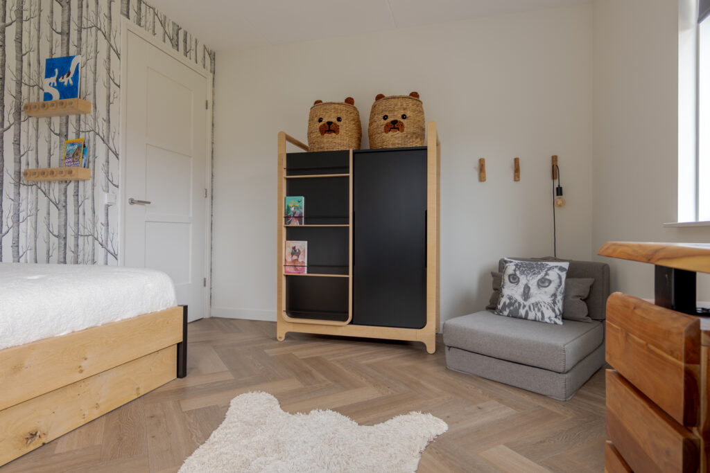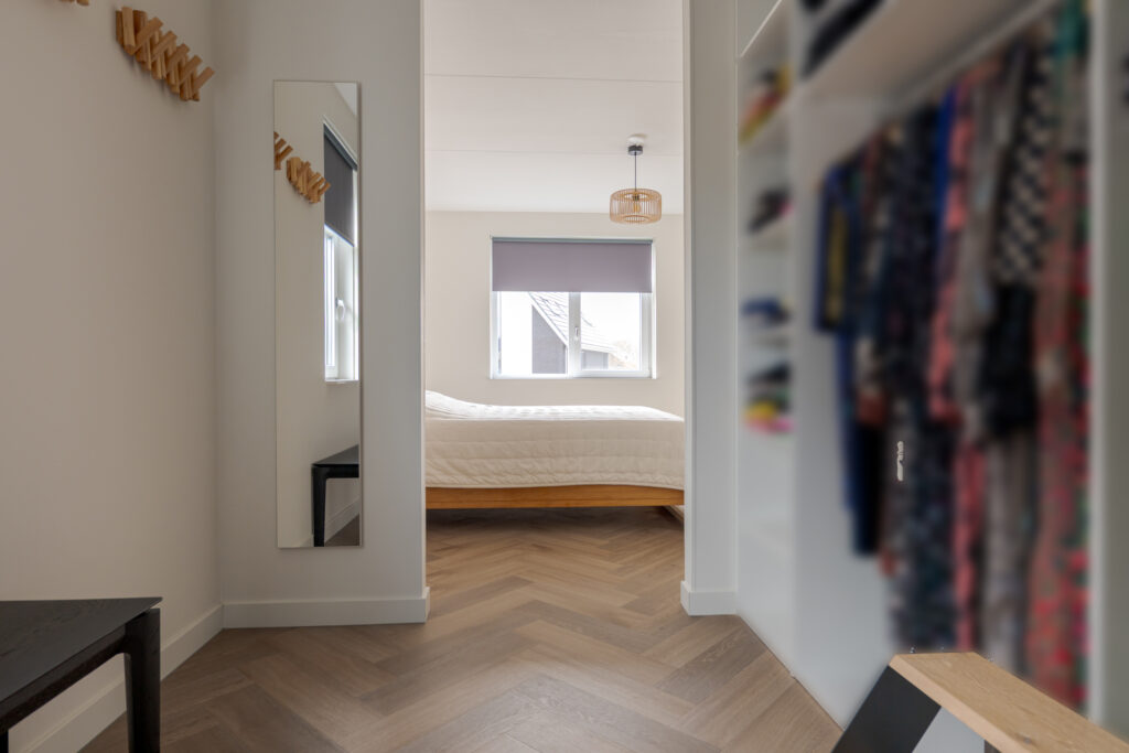 Op de eerste verdieping geeft de overloop toegang tot vier royale slaapkamers, een inloopkast en de badkamer. De slaapkamers zijn stuk voor stuk prettig van formaat en verzorgd afgewerkt. De badkamer sluit perfect aan bij de rest van de woning en is modern en compleet ingericht met een dubbele wastafel, ligbad, inloopdouche en toilet. Een comfortabele verdieping waar afwerking en praktisch gebruik mooi samenkomen.