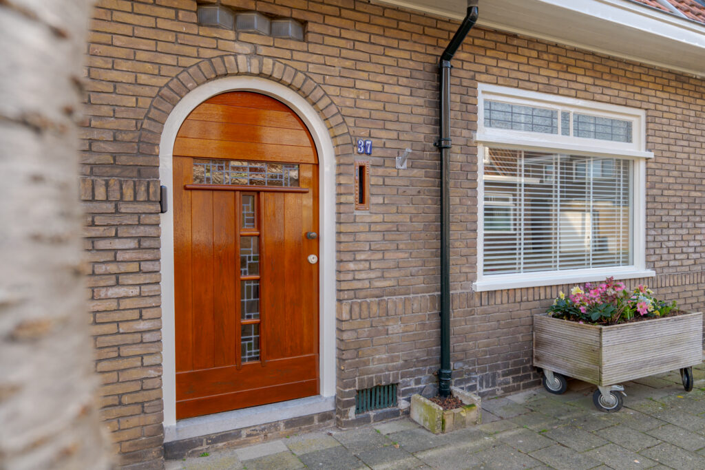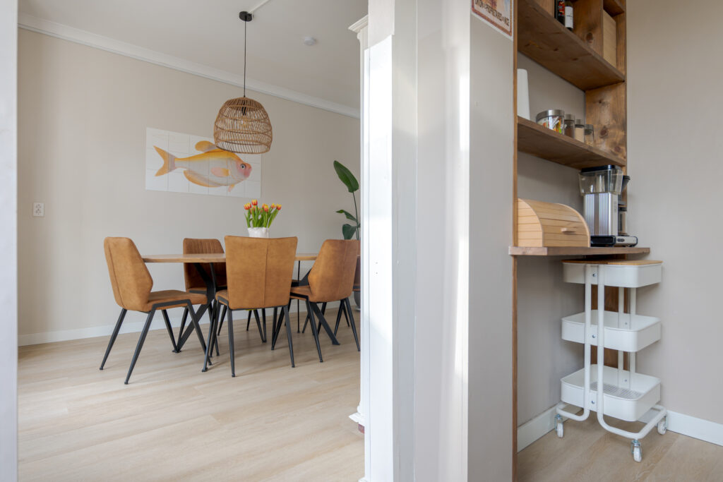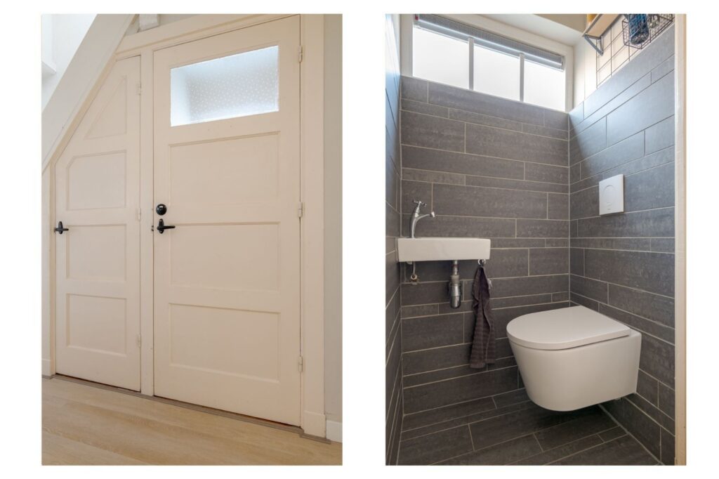 De karakteristieke voordeur biedt een charmant jaren ’30 entree. In de hal is gelijk al zichtbaar dat de woning afgelopen jaren met liefde is onderhouden en gemoderniseerd. Hier is de meterkast, trapopgang, toilet gelegen en tevens de toegang tot de kelder. De kelder is niet alleen praktisch als bergruimte, maar ook ideaal voor de wasmachine, droger en vriezer – uit het zicht en toch gemakkelijk bereikbaar.