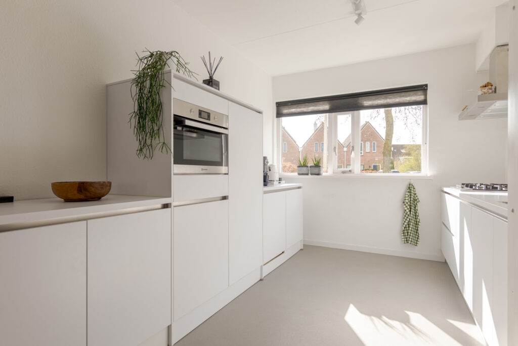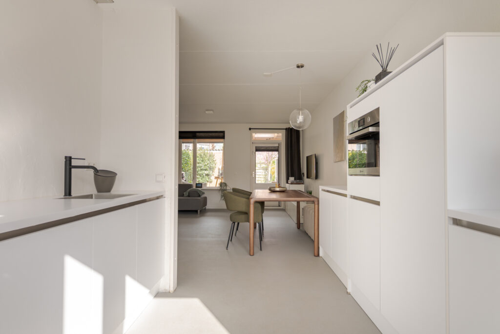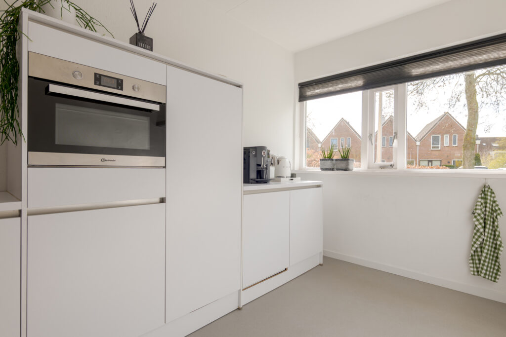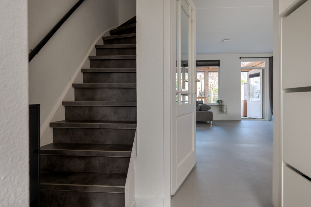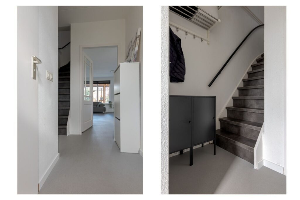 De woning ligt aan het eind van een doodlopend straatje aan een voetpad met veel parkeergelegenheid voor de deur. Het voortuintje biedt nog eens extra privacy. Via de entree komt u binnen in de hal met toilet, meterkast en trapopgang. De woonkamer is voorzien van witte wanden en een fijne grindvloer. Deze combinatie zorgt voor een frisse en rustige uitstraling. De witte strakke keuken, met inbouwapparatuur en een koffiecorner, aan de voorzijde sluit hier mooi op aan. Vanuit de woonkamer komt u in de serre, deze vormt een waardevolle aanvulling op het woongedeelte en zorgt voor extra leefruimte te gebruiken voor verschillende doeleinden. Op de begane grond is bovendien een praktische trapkast aanwezig.