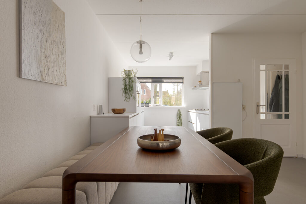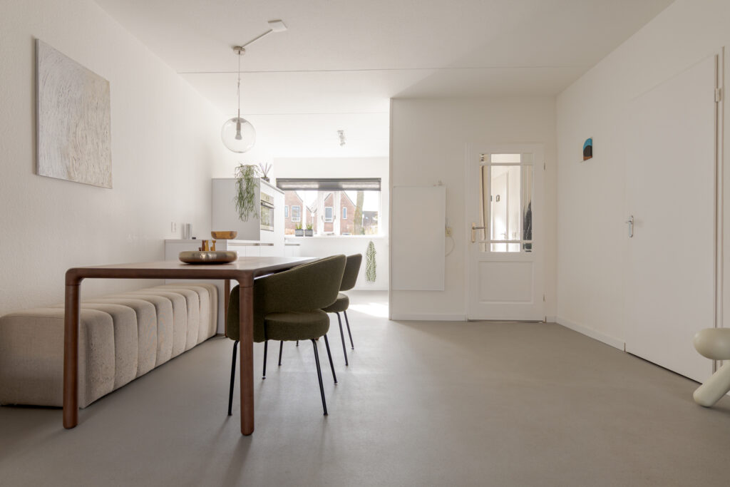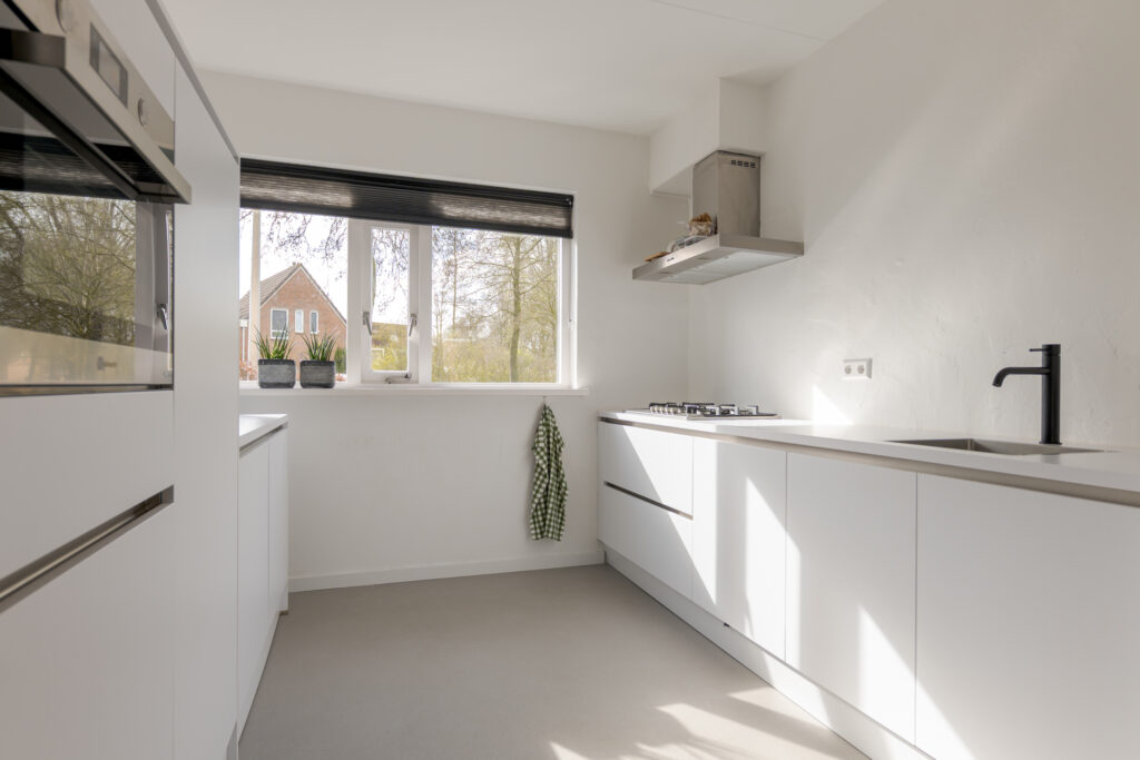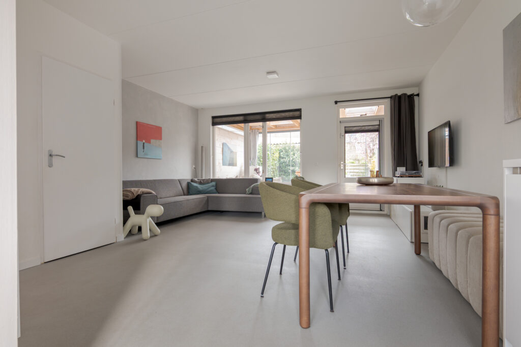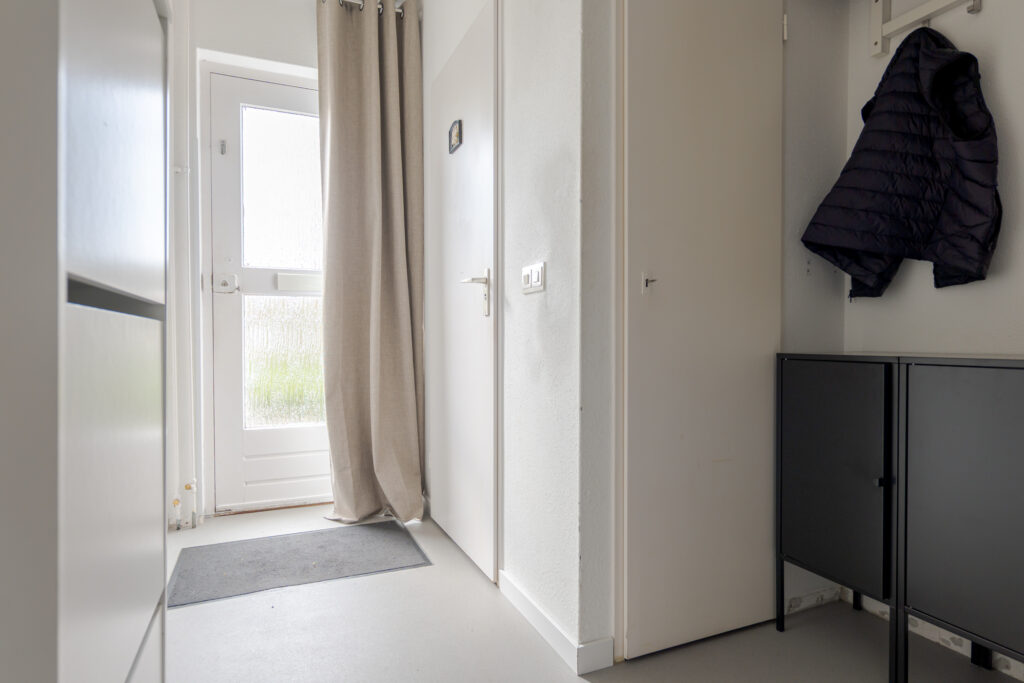 De woning ligt aan het eind van een doodlopend straatje aan een voetpad met veel parkeergelegenheid voor de deur. Het voortuintje biedt nog eens extra privacy. Via de entree komt u binnen in de hal met toilet, meterkast en trapopgang. De woonkamer is voorzien van witte wanden en een fijne grindvloer. Deze combinatie zorgt voor een frisse en rustige uitstraling. De witte strakke keuken, met inbouwapparatuur en een koffiecorner, aan de voorzijde sluit hier mooi op aan. Vanuit de woonkamer komt u in de serre, deze vormt een waardevolle aanvulling op het woongedeelte en zorgt voor extra leefruimte te gebruiken voor verschillende doeleinden. Op de begane grond is bovendien een praktische trapkast aanwezig.