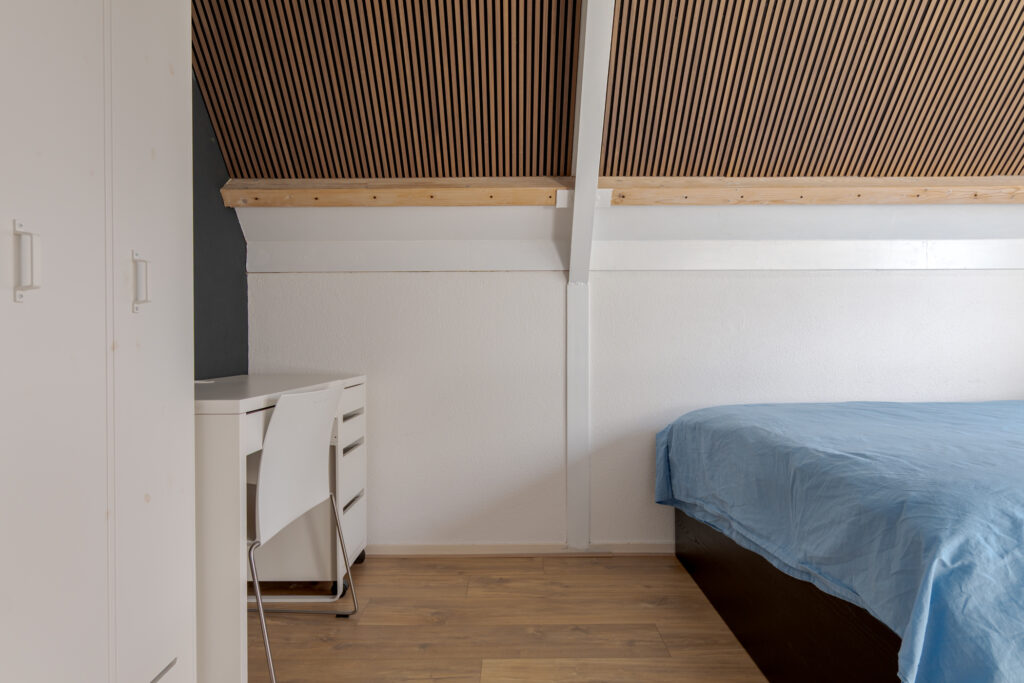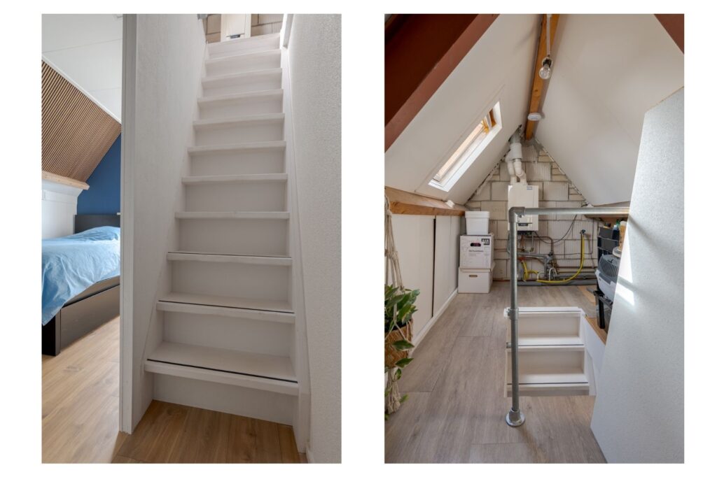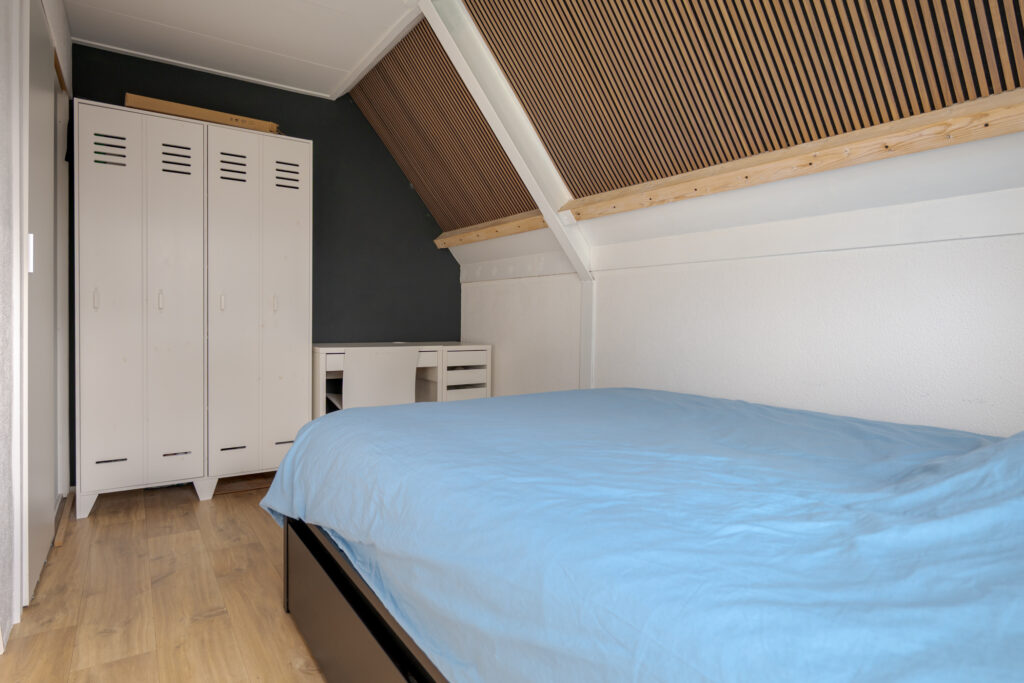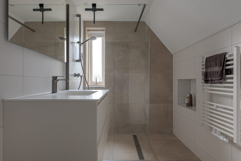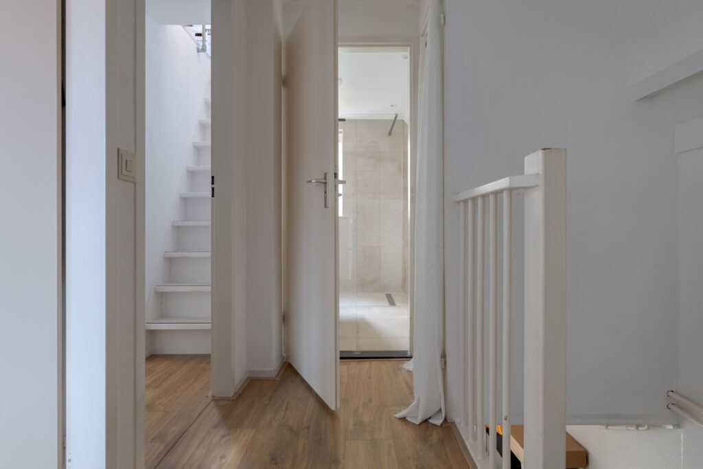 Op de eerste verdieping bevinden zich drie slaapkamers, de badkamer en de overloop. De sfeervolle badkamer is in 2025 helemaal vernieuwd. De ruimte is compleet uitgevoerd met een inloopdouche, wastafelmeubel en toilet in rustige tinten, waardoor ook deze ruimte rustig en comfortabel aanvoelt. Daarnaast is op deze verdieping de wasruimte aanwezig, wat het geheel extra praktisch maakt.