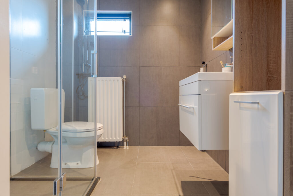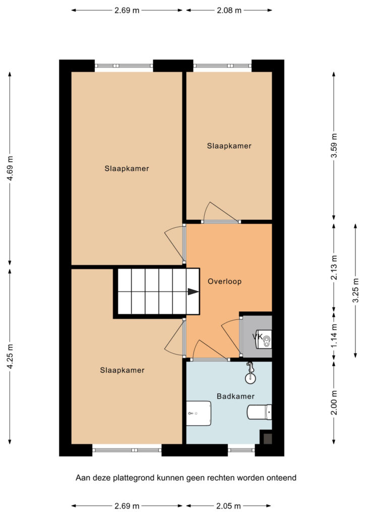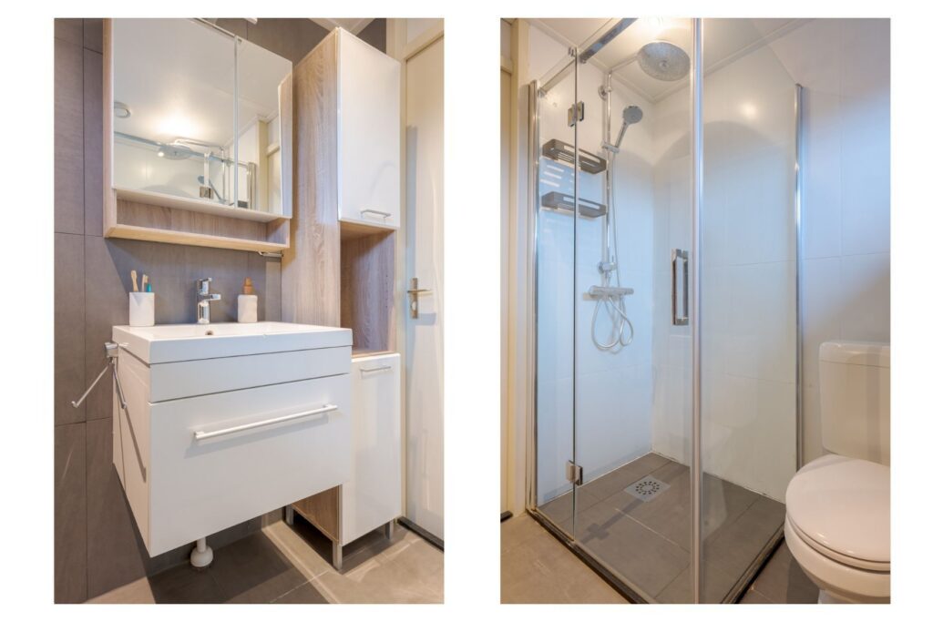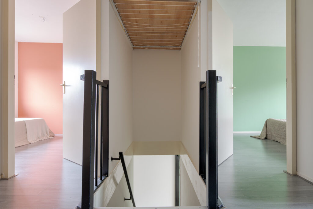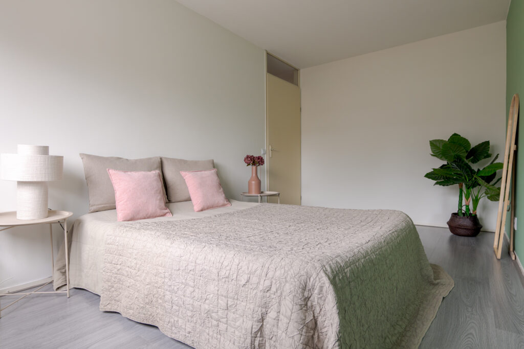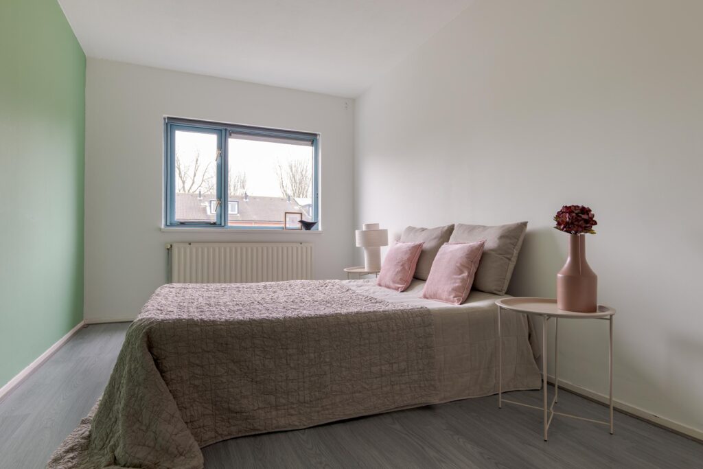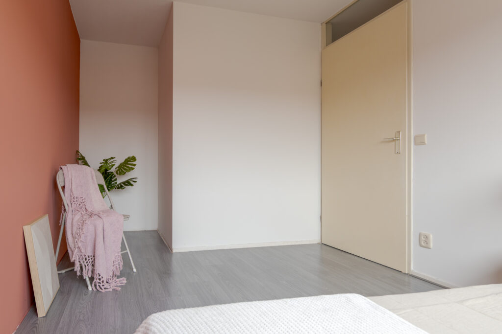 Op de eerste verdieping komt u uit op de overloop, die toegang biedt tot drie slaapkamers van verschillende afmetingen. De kamers zijn functioneel ingedeeld en lenen zich uitstekend voor gebruik als slaap-, werk- of hobbyruimte. De badkamer is uitgevoerd in een frisse grijs-witte betegeling en voorzien van een douche, wastafel en toilet. Daarnaast is op deze verdieping een vaste kast met de ketelopstelling aanwezig, die tevens extra bergruimte biedt.