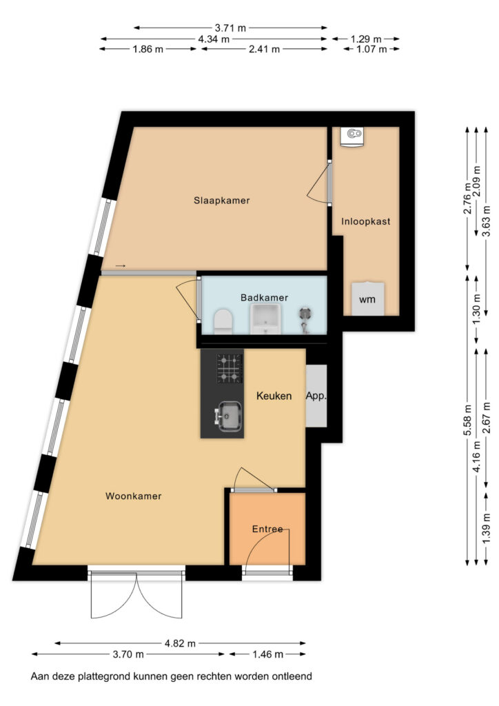 De slaapkamer is bereikbaar via een praktische schuifdeur en wordt daarmee een rustige, afsluitbare ruimte. Perfect voor een goede nachtrust maar ook geschikt als fijne thuiswerkplek.