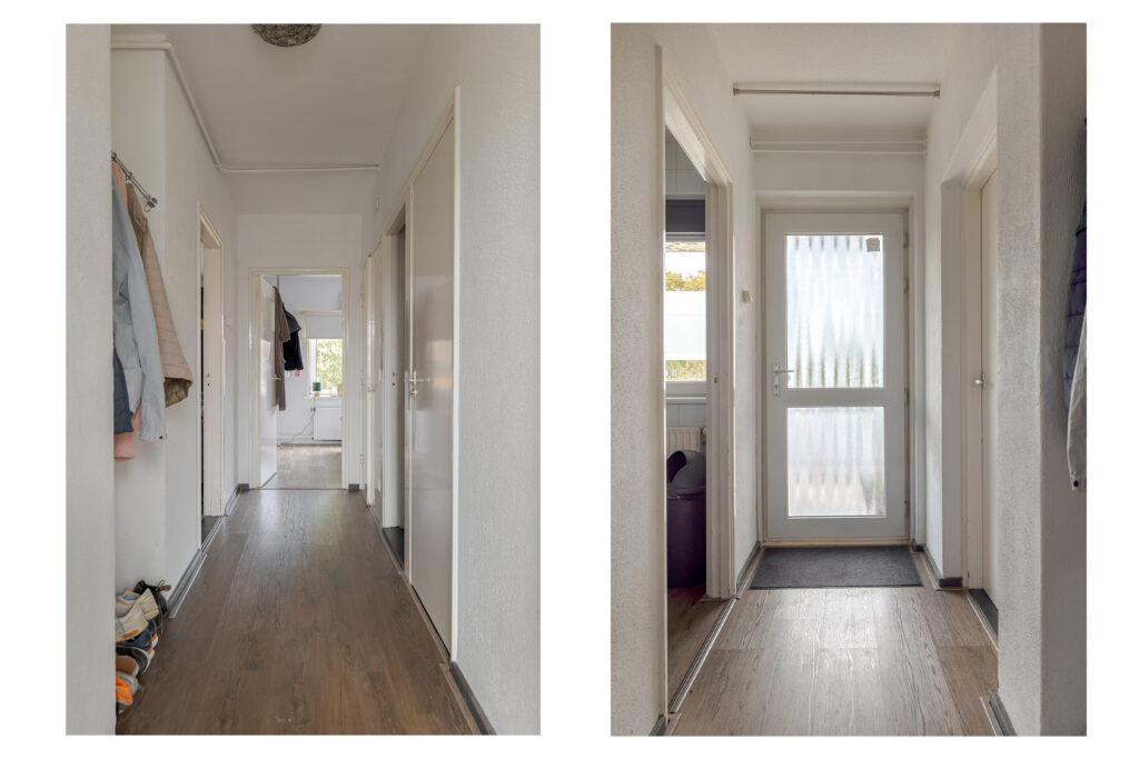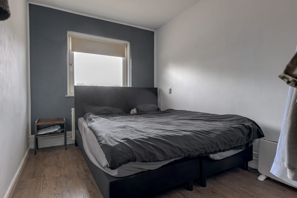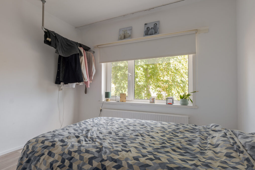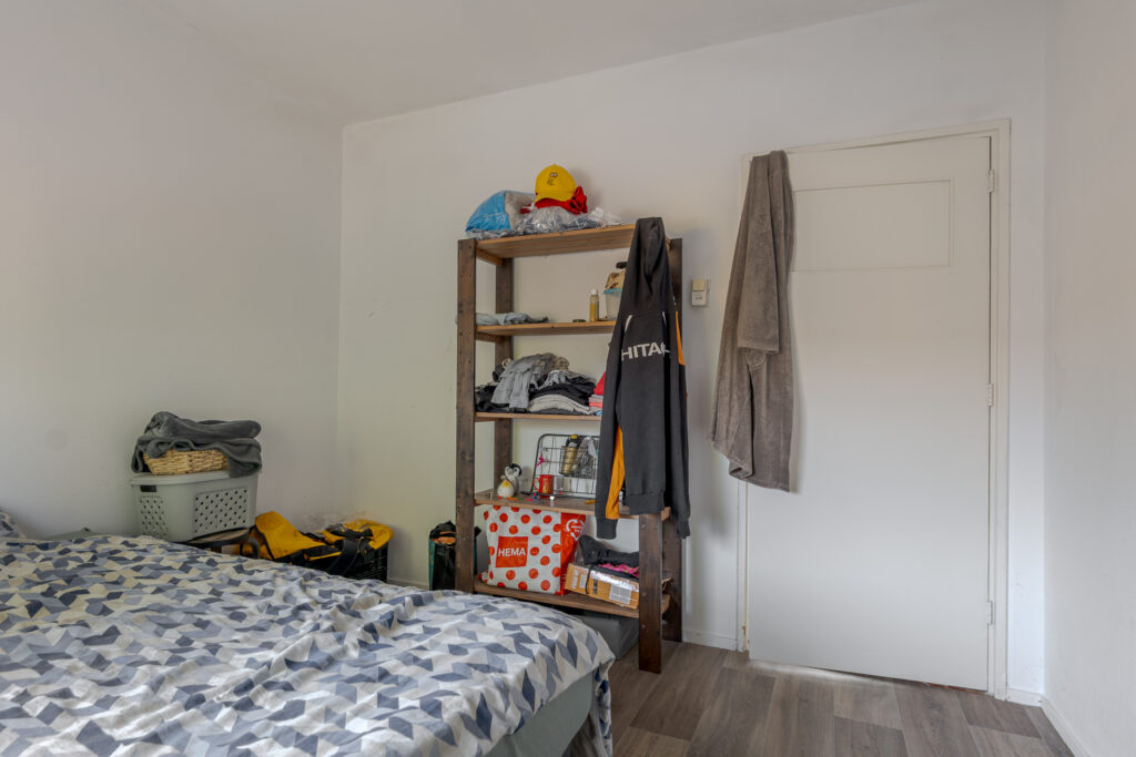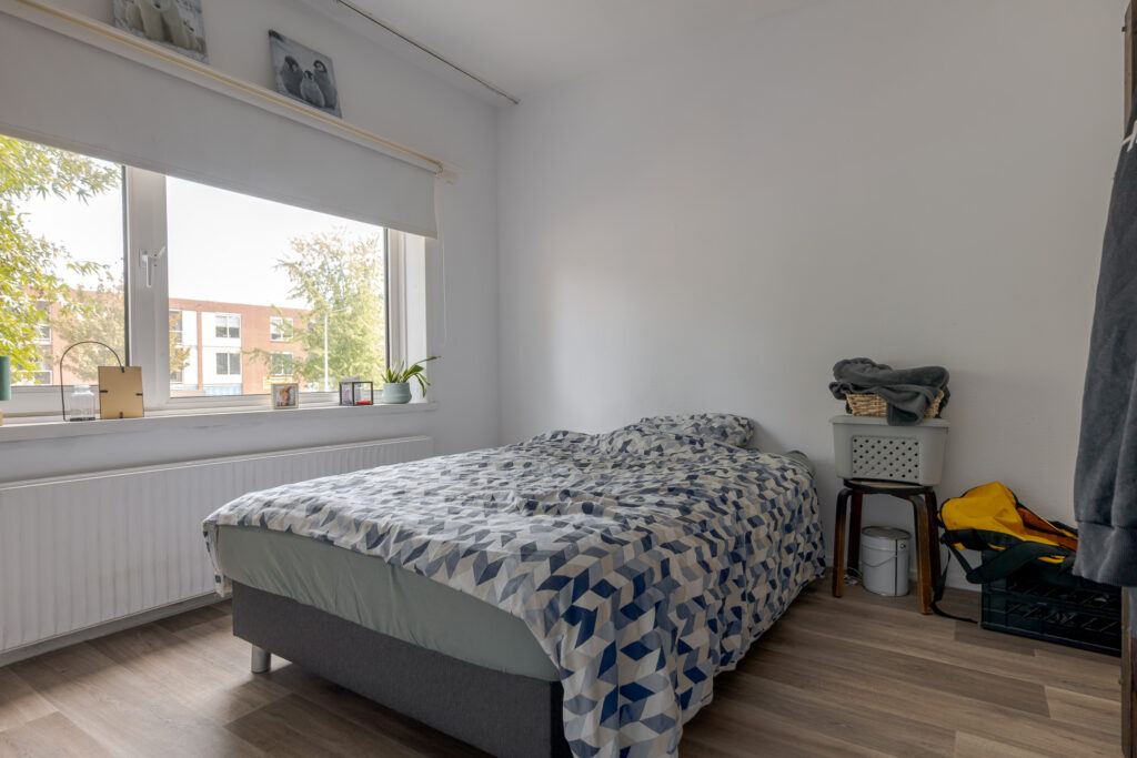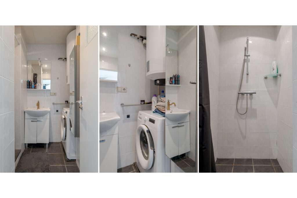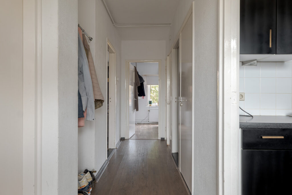 Het appartement beschikt over drie slaapkamers, die flexibel in te delen zijn als slaap-, werk- of hobbyruimte. De badkamer heeft een wastafel en douche en hier bevindt zich tevens de wasmachineaansluiting. Het toilet is bereikbaar via de hal waar meerdere vaste kasten voor praktische bergruimte zorgen.