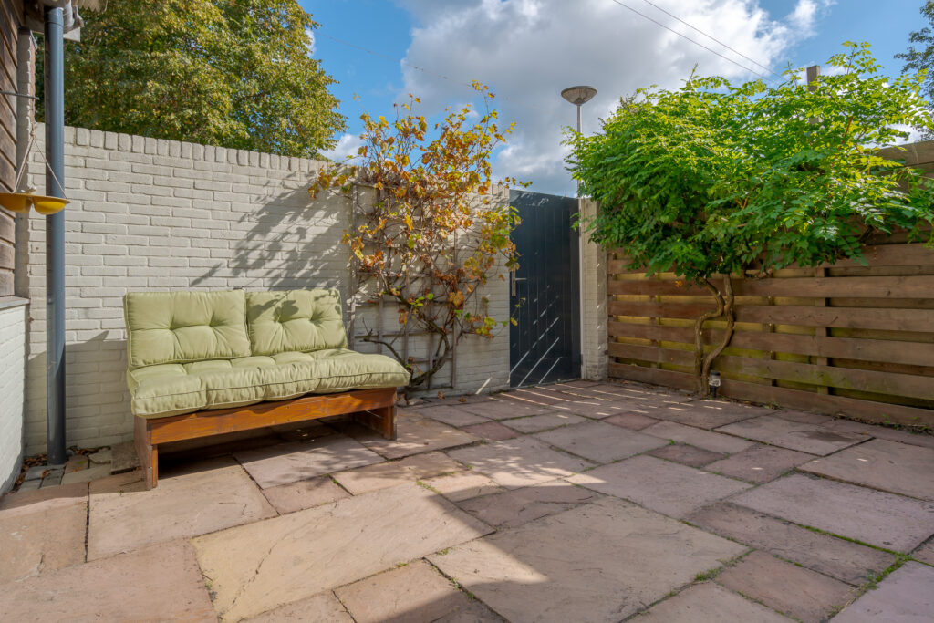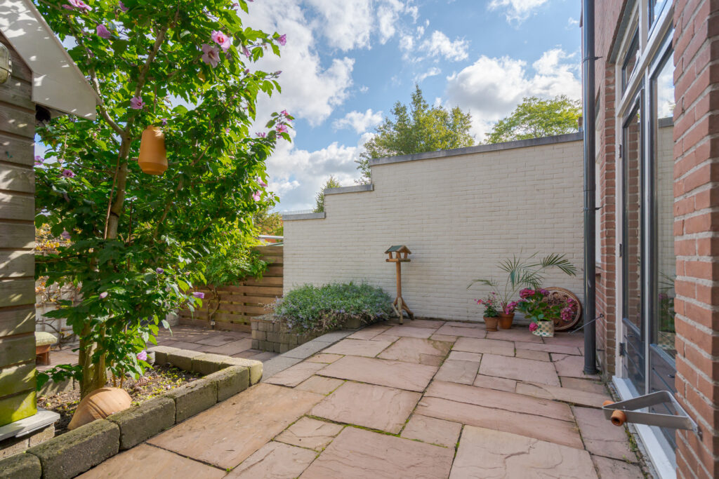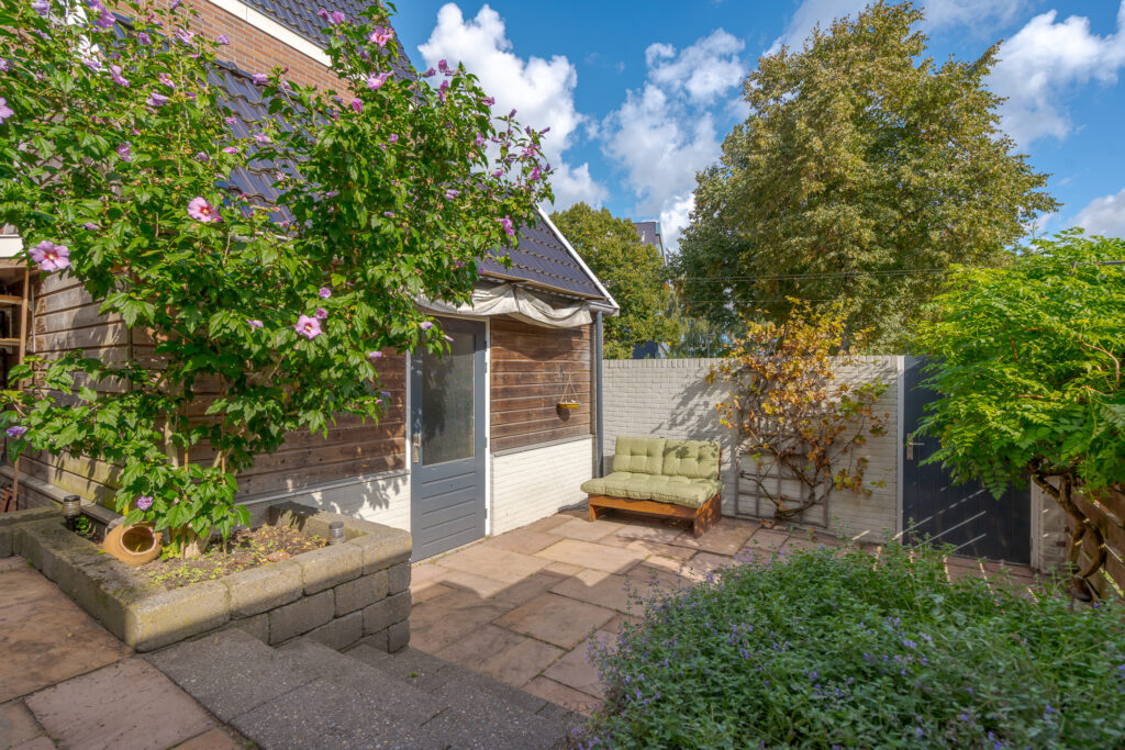 Buiten is er een fijne tuin aangelegd waar u heerlijk kunt vertoeven van de zomermaanden. Tot slot is er een separate garage/berging met ruime vliering aanwezig, perfect voor het stallen van fietsen of opslag.