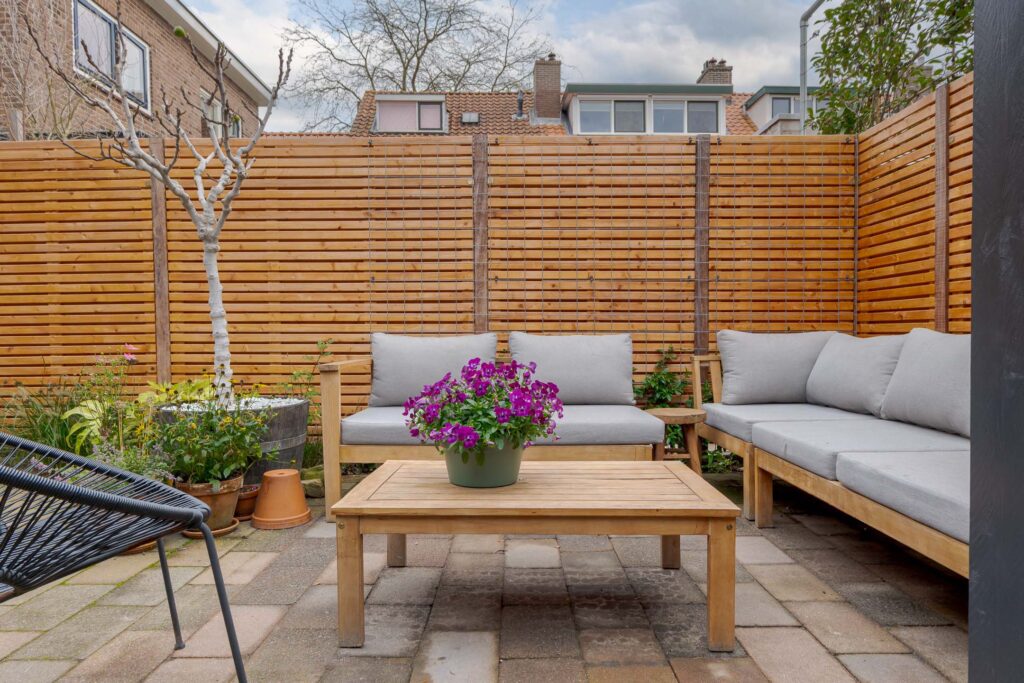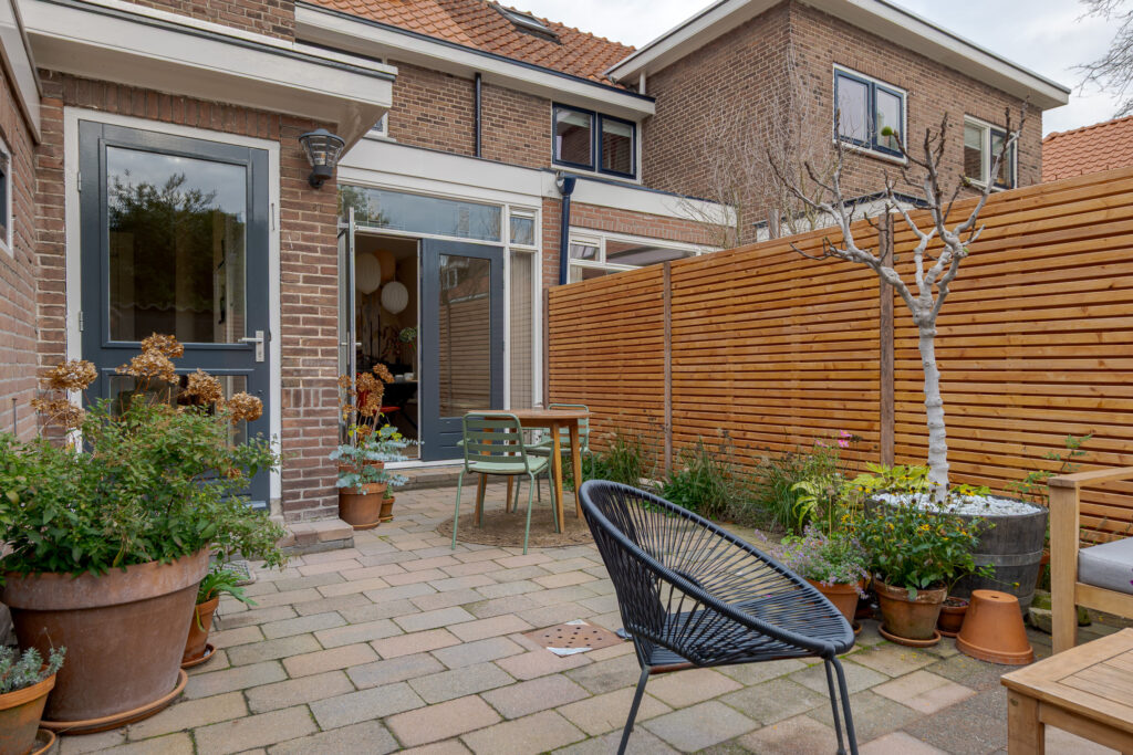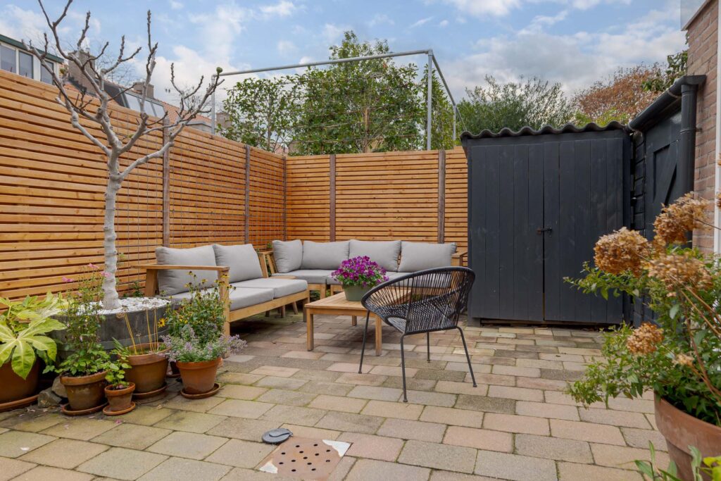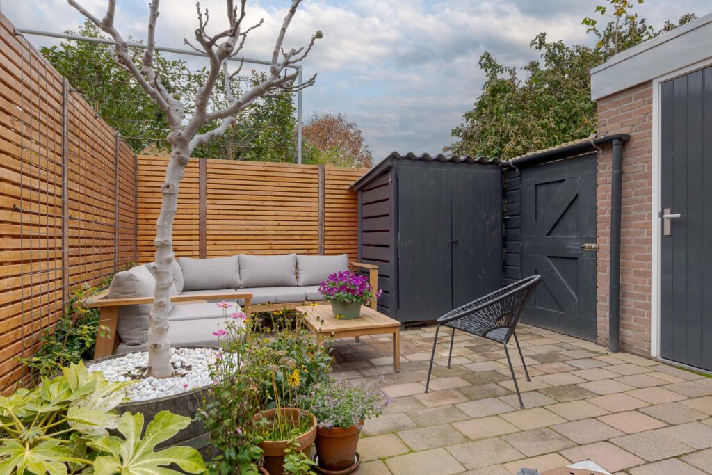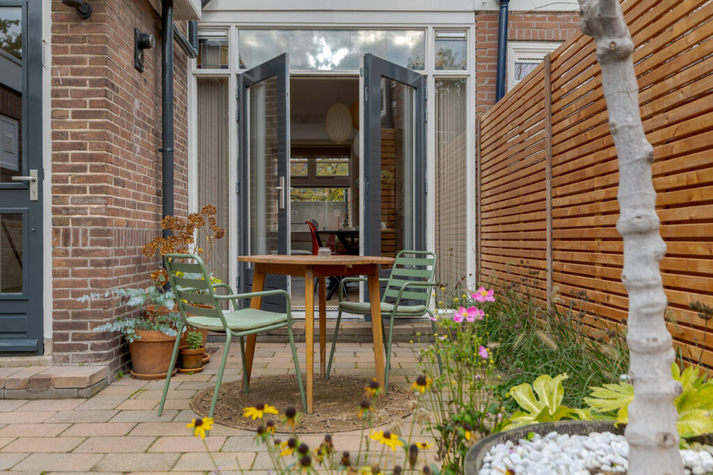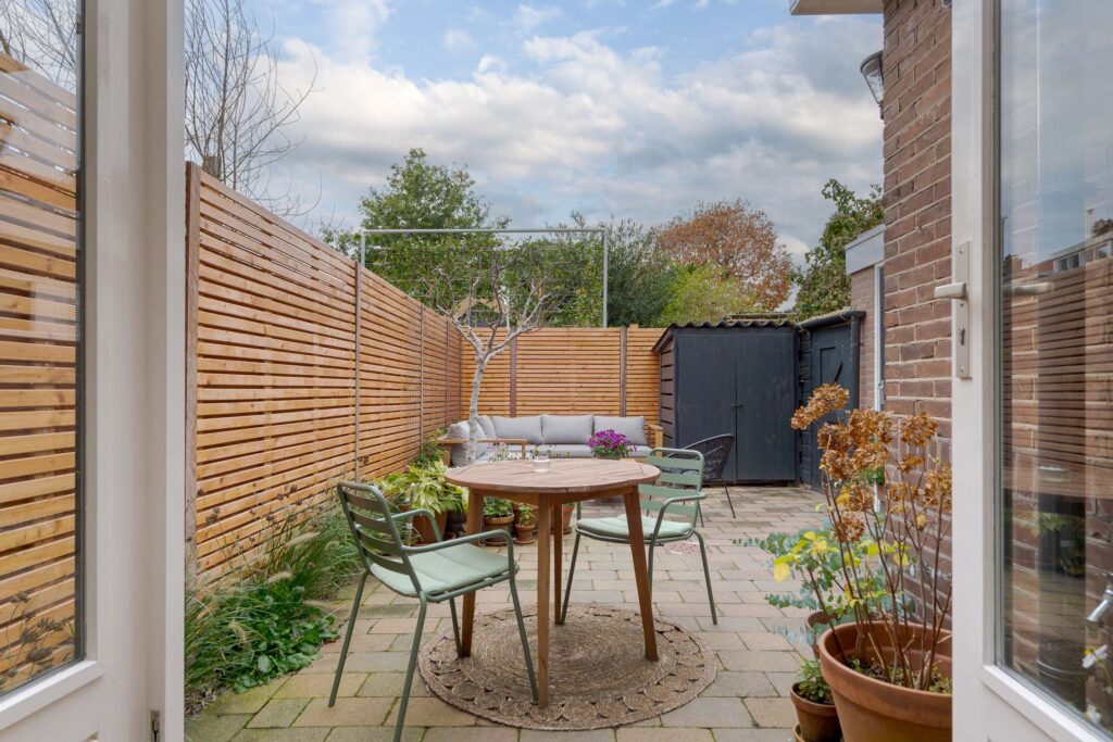 – zonnige achtertuin op het zuidwesten met nieuwe schutting (2025);