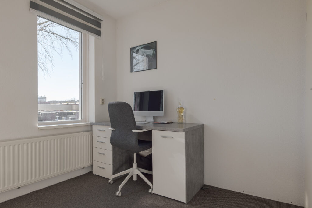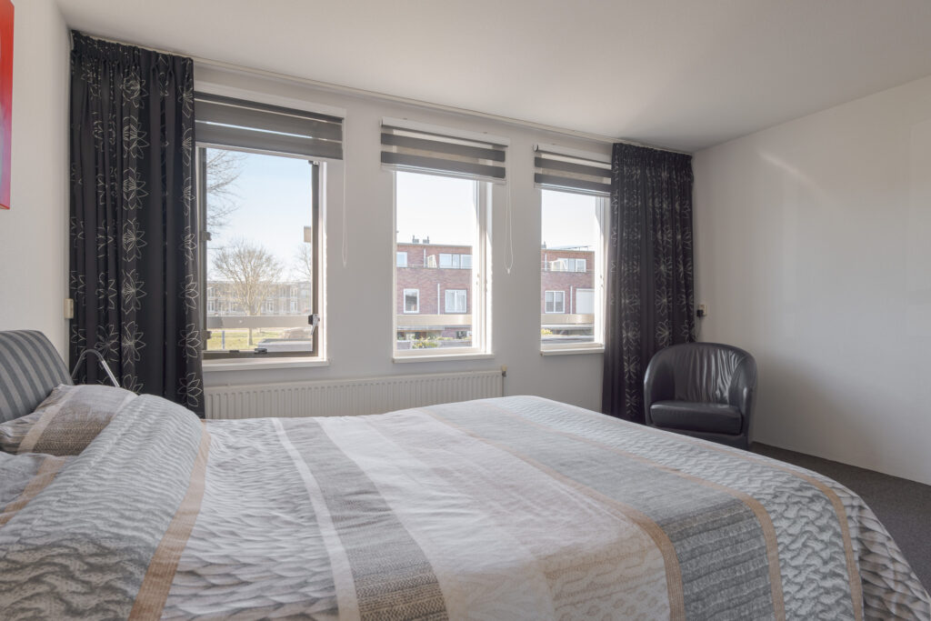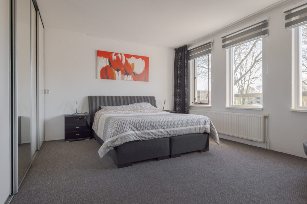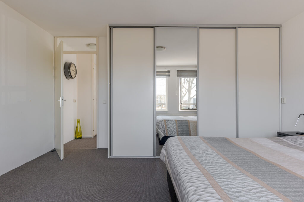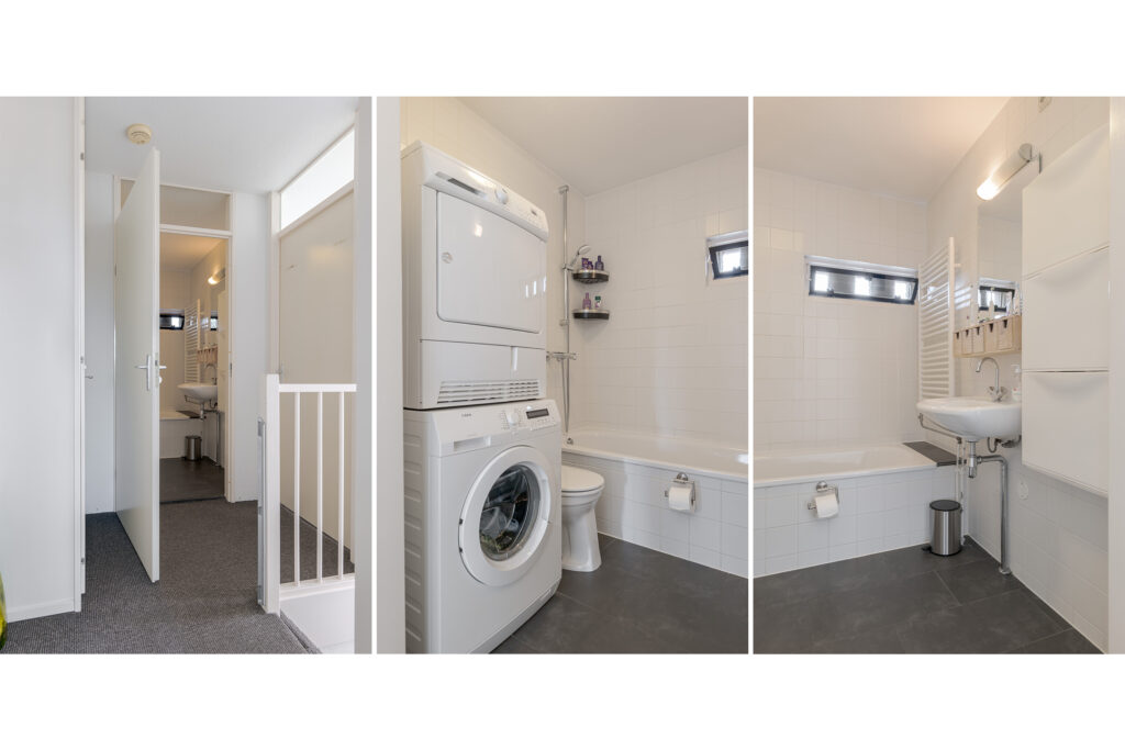 De hoofdslaapkamer ligt aan de achterzijde van de woning, terwijl de tweede slaapkamer aan de voorzijde is gesitueerd. Beide kamers beschikken over een vaste kast, ideaal voor extra opbergruimte. De badkamer is praktisch ingedeeld en voorzien van een ligbad, toilet, wastafel en wasmachineaansluiting. Op de overloop bevindt zich nog een extra vaste kast met de cv-ketel (2024).