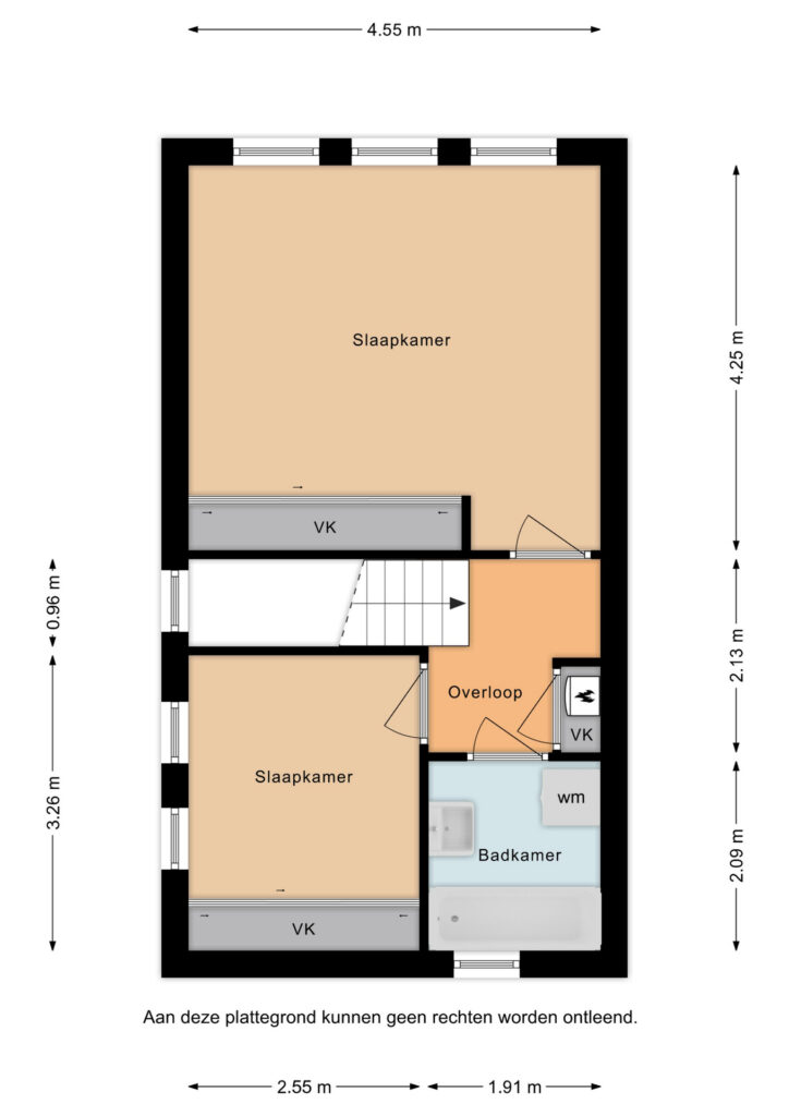 Op de eerste verdieping bevinden zich twee slaapkamers.