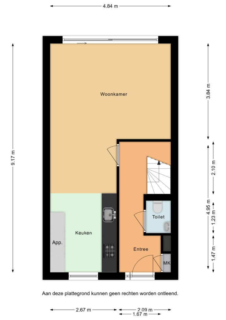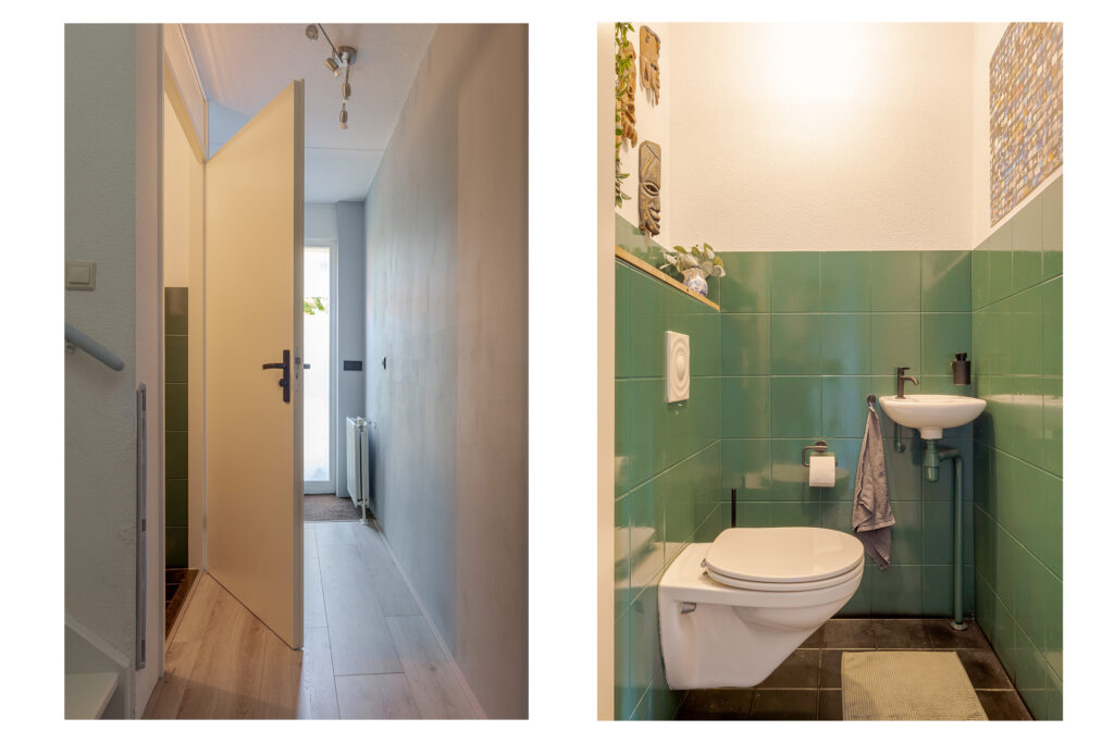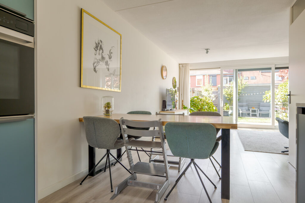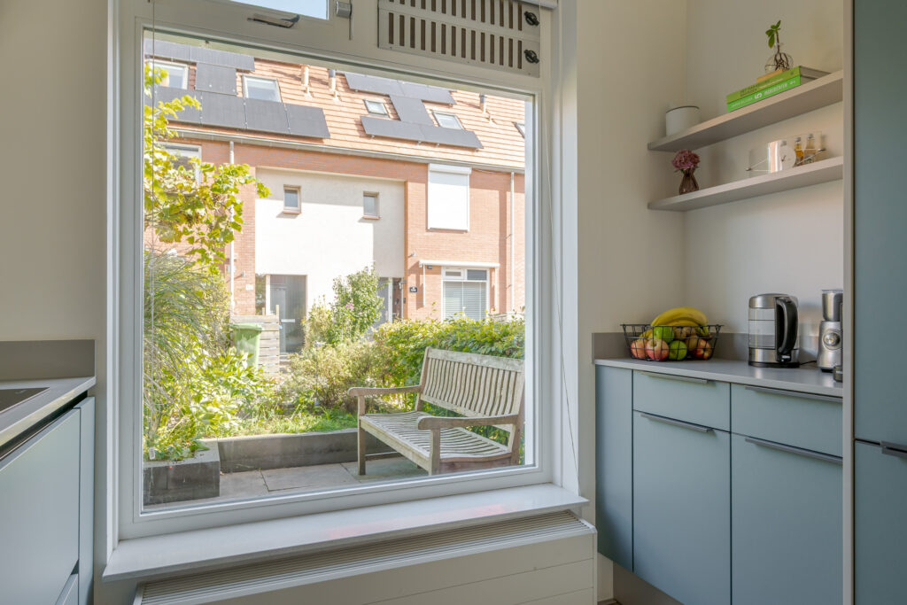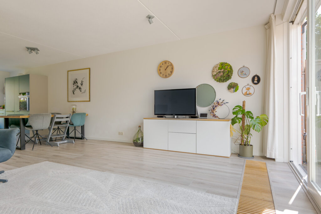 Het voortuintje biedt prettige privacy. U komt binnen in de hal, vanuit hier heeft u toegang tot de meterkast, het toilet, trapopgang en de woonkamer. De woonkamer is heerlijk licht dankzij de grote schuifpui naar de tuin, met als bijkomend voordeel dat de leefruimtes binnen en buiten naadloos in elkaar overlopen.