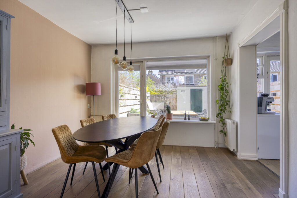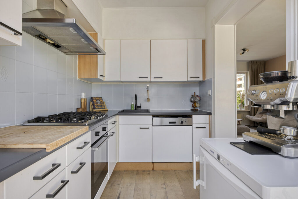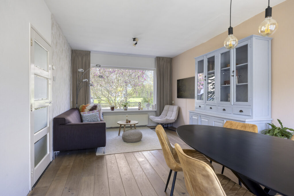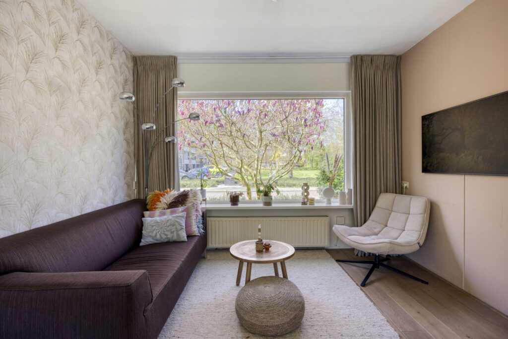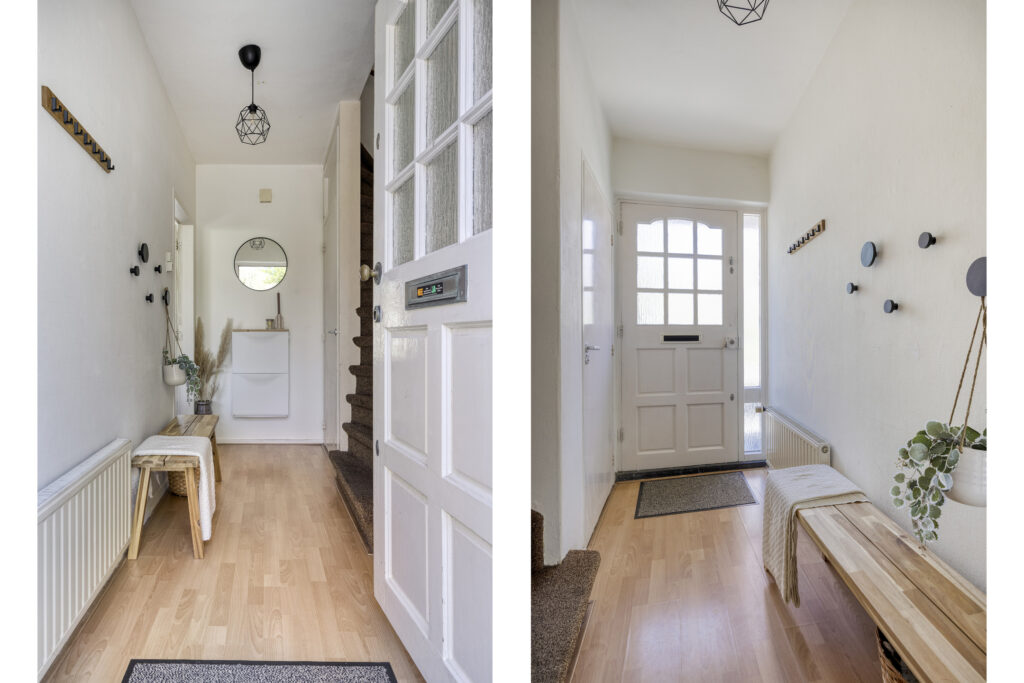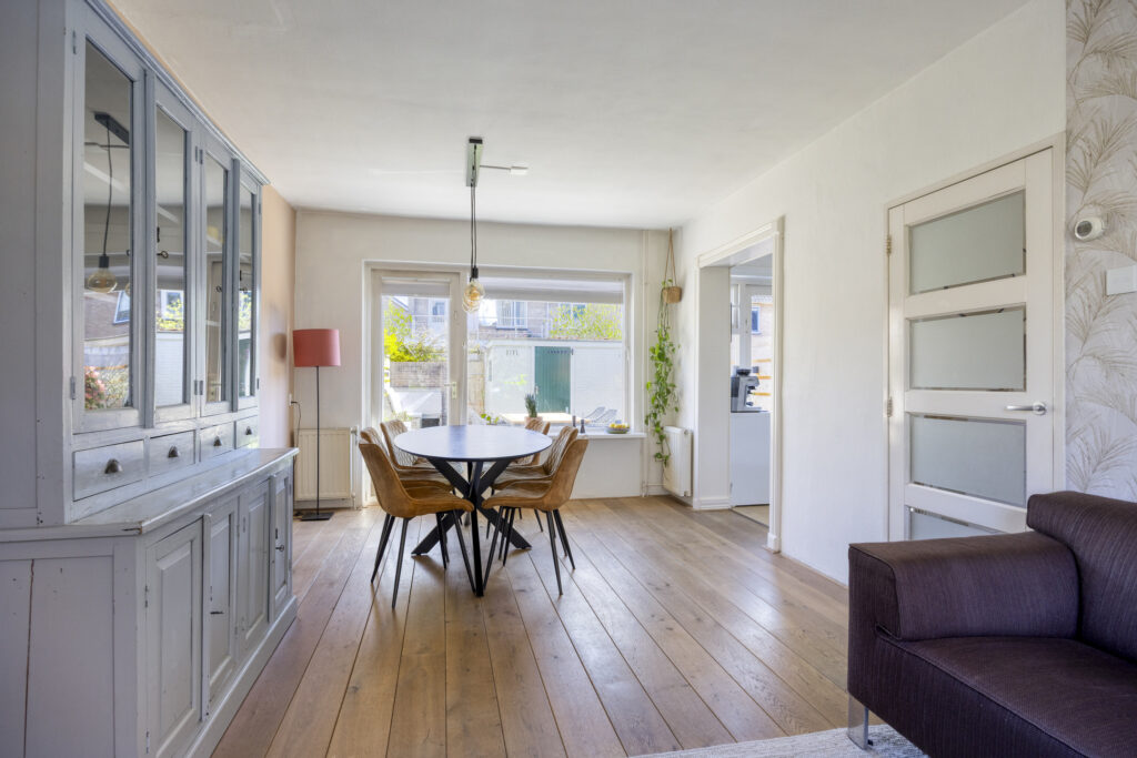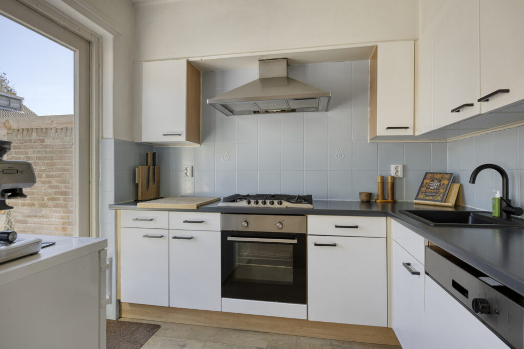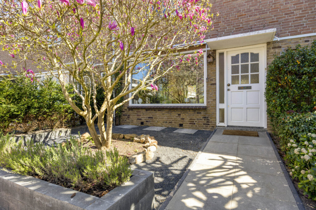 Via de nette voortuin met prachtige magnoliaboom, komt u bij de entree. In de hal bevindt zich het toilet, de trapopgang en een praktische trapkast. Vanuit hier loopt u door naar de woonkamer, een aangename leefruimte met grote raampartijen aan zowel de voor- als achterzijde. Daardoor valt direct op hoe prettig licht deze ruimte aanvoelt. De lichte afwerking en de houten vloer zorgen voor een verzorgde basis. Aansluitend bevindt zich de keuken aan de achterzijde, uitgevoerd in een lichte kleurstelling en praktisch ingedeeld met genoeg kast- en werkruimte én toegang tot de tuin.