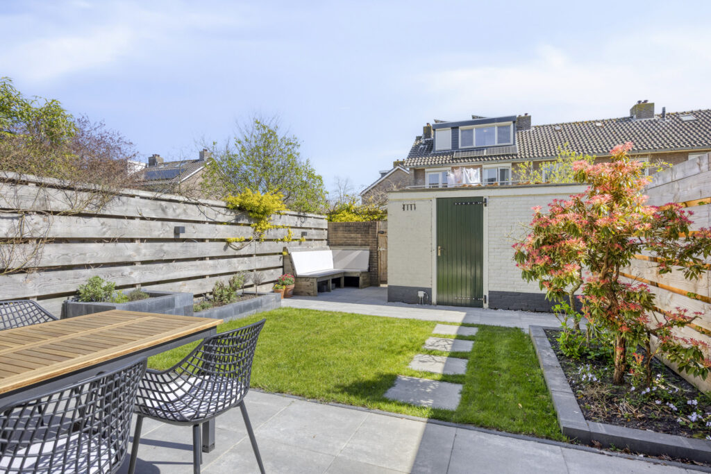 Een groot pluspunt van deze woning is zonder twijfel de buitenruimte. Zowel de voor- en achtertuin zijn in 2025 opnieuw aangelegd. De achtertuin heeft een prettige opzet met terras, gazon en groene borders. Dankzij de diepte van circa 11 meter is hier volop ruimte om fijne zitplekken te creëren, te tuinieren of gewoon in alle rust van buiten te genieten. De tuin ligt op het oosten en beschikt bovendien over een achterom. Achterin de tuin staat een vrijstaande stenen berging, voorzien van elektra, ideaal voor fietsen, gereedschap en extra opslag. Juist de verzorgde aanleg maakt dit een buitenruimte waar u direct plezier van kunt hebben.