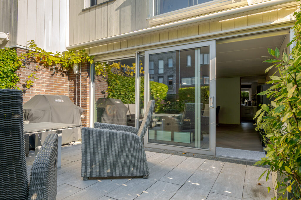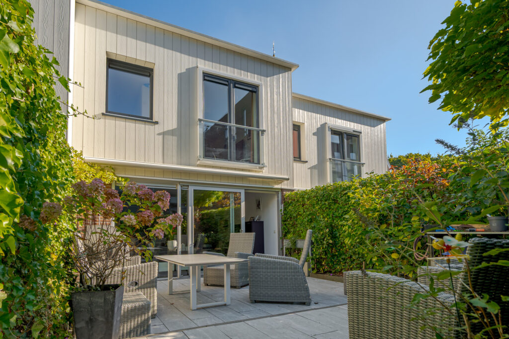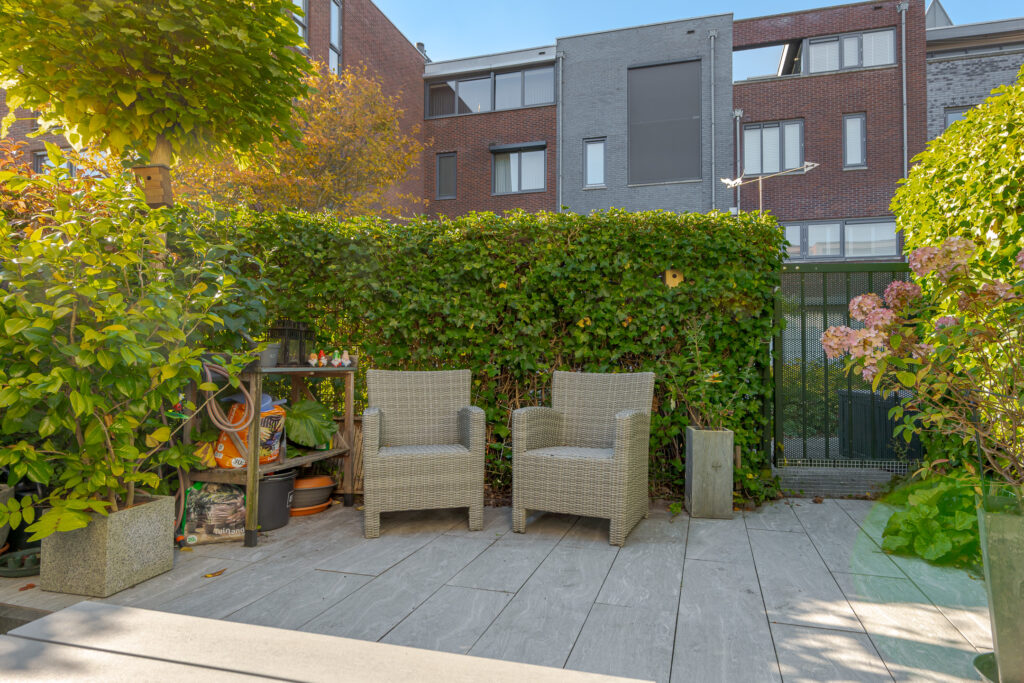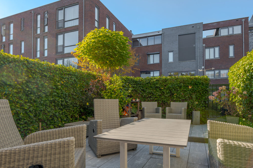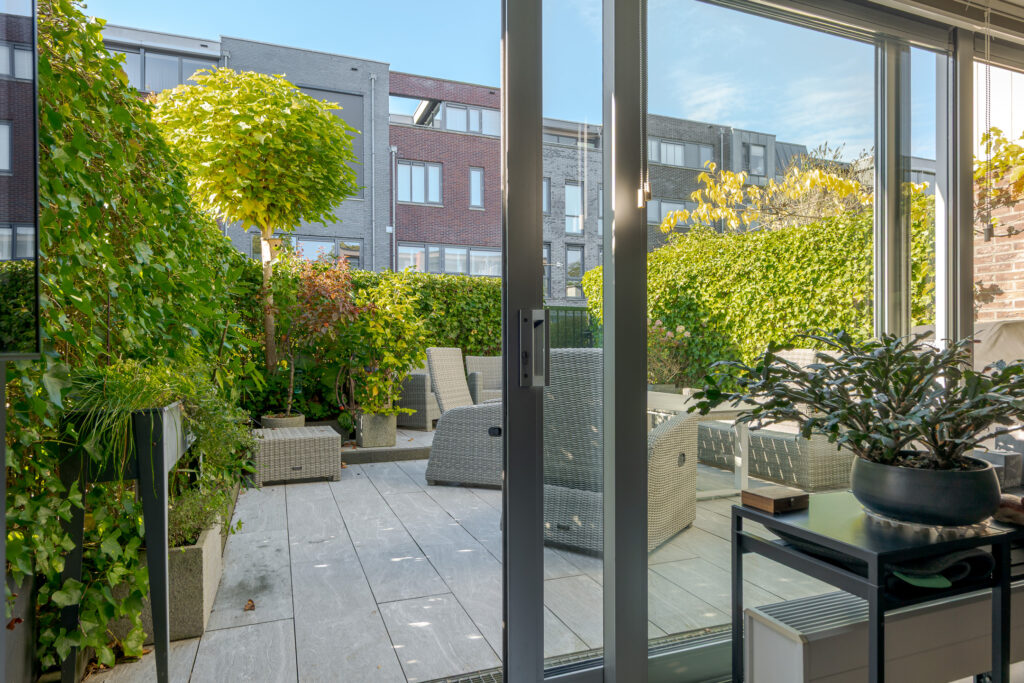 De achtertuin is verzorgd aangelegd, ligt op het noordwesten en is tevens bereikbaar via een achterom. Middels de zonwering aan de achtergevel kunt u ook in de schaduw van de tuin genieten.