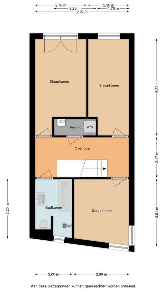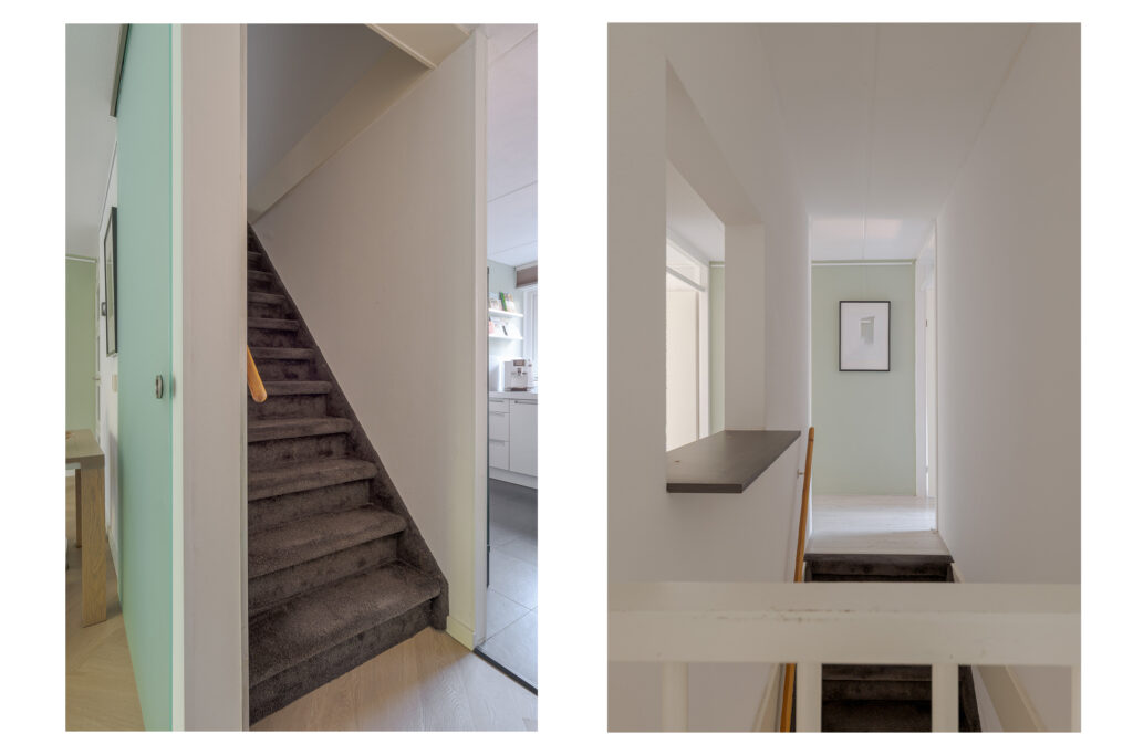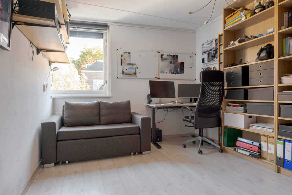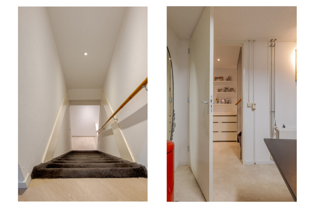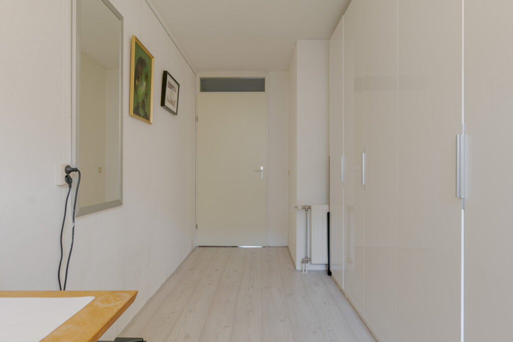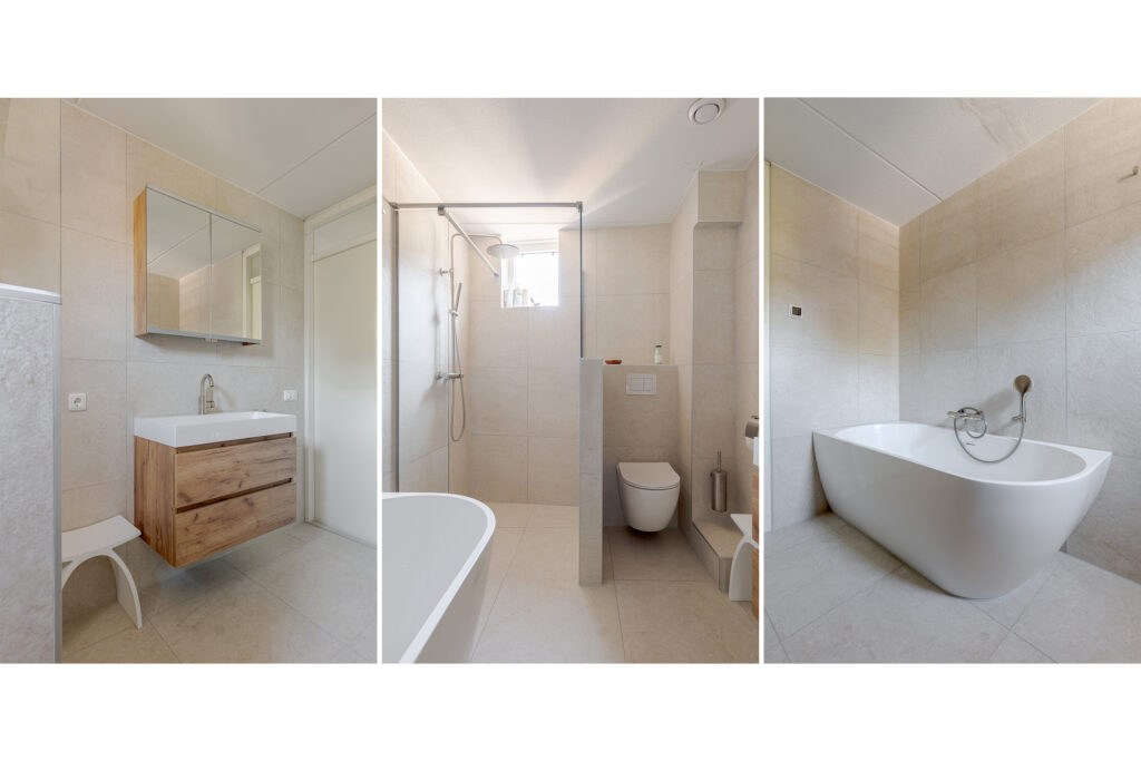 Op de eerste verdieping bevinden zich drie slaapkamers. De badkamer is vernieuwd in 2025 en beschikt over een ligbad, inloopdouche, wastafelmeubel en toilet. Er is gebruik gemaakt van een grote tegel zowel op de vloer als op de wand in lichte kleur. Gecombineerd met het houtaccent van het wastafelmeubel zorgt dit voor een fijne rustige sfeer. Op de overloop is een berging met wasmachineaansluiting en CV ketel (uit 2022) aanwezig, voor extra gebruiksgemak.