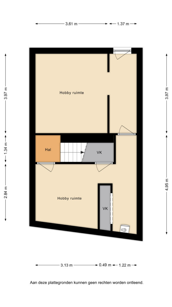 Vanuit de hal komt u middels een trap in de kelder. Hier heeft u twee ruimtes tot uw beschikking die naar eigen wens kunnen worden gebruikt. De huidige bewoners hebben hier twee hobbyruimtes van gemaakt. De ruimtes zouden ook goed kunnen worden gebruikt als extra logeerplekken, opslag of misschien wel kantoorruimte. Vanuit het souterrain komt in de parkeerkelder.