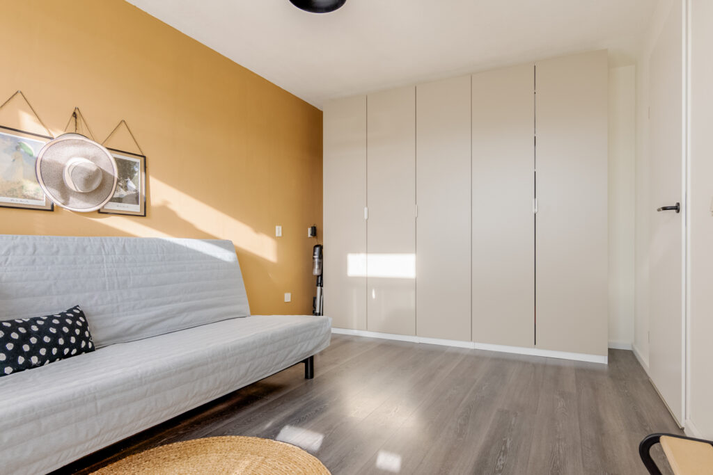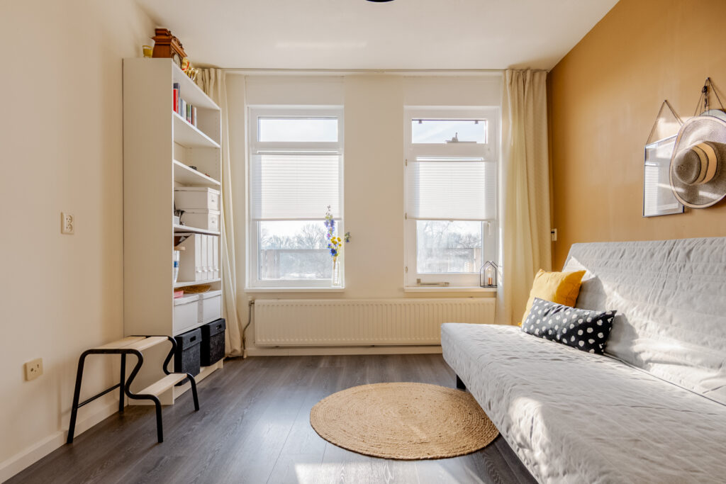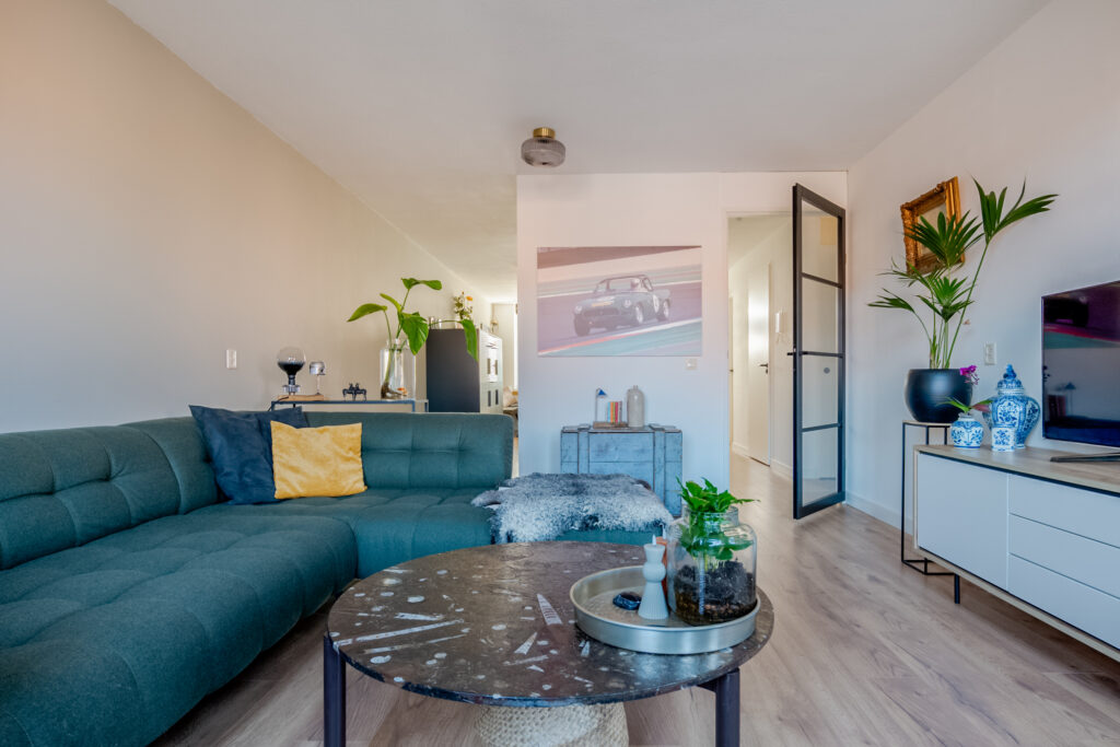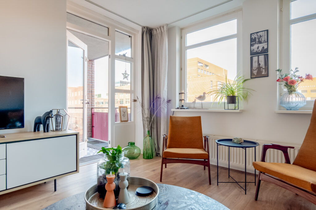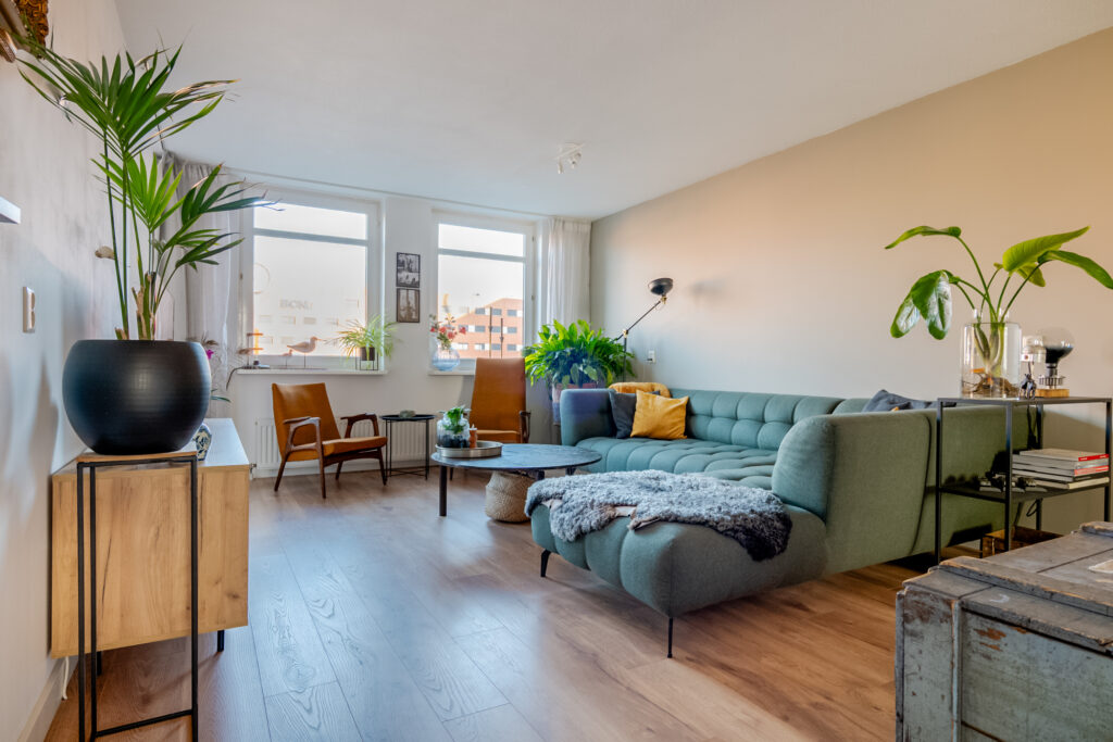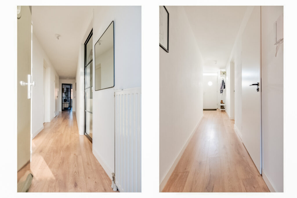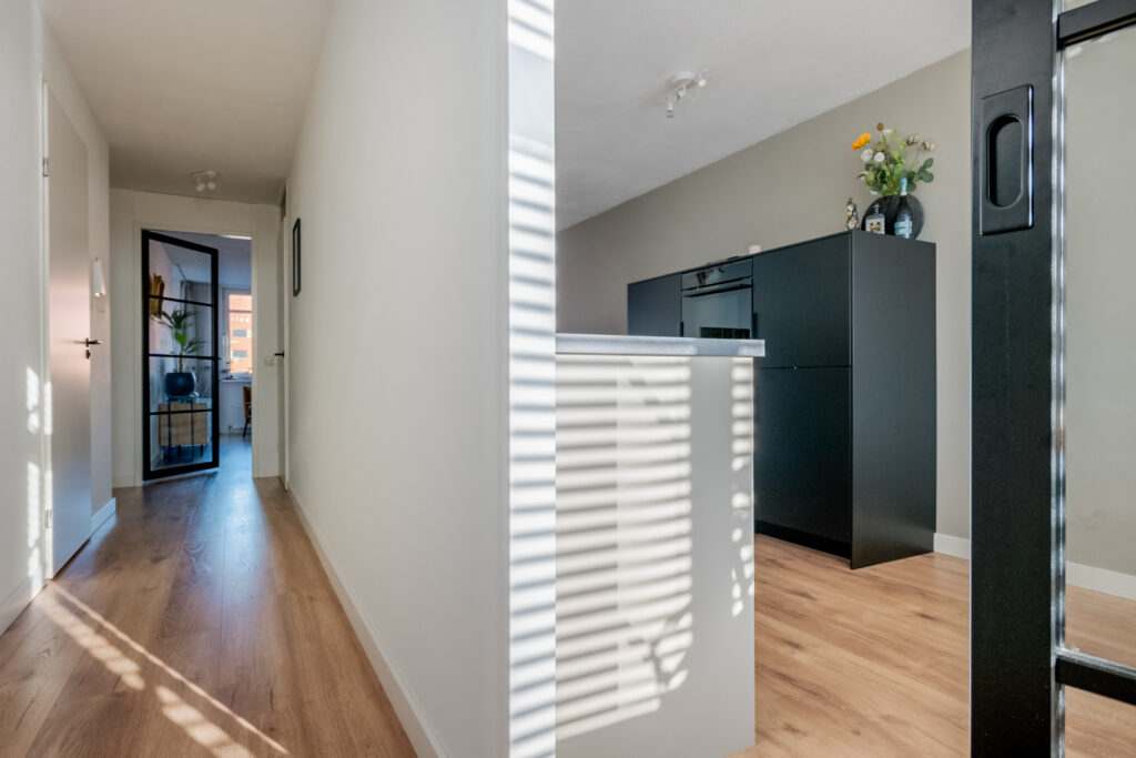 De entree van de woning geeft toegang tot een centrale gang met meterkast, separaat toilet en toegang tot alle vertrekken. De woonkamer is ruim opgezet en heeft een open verbinding met de keuken, wat zorgt voor een prettig ruimtelijk gevoel. De raampartijen zorgen voor een goed verlichte leefruimte. Het balkon, bereikbaar via de woonkamer, vormt een fijne buitenruimte, waar u beschut kunt genieten van het uitzicht op de Peperbus en het buitengevoel.