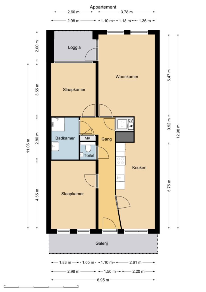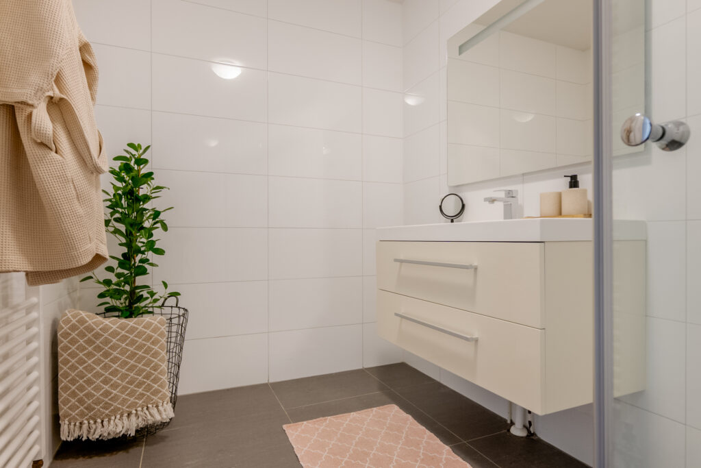 Het appartement beschikt over twee royale slaapkamers. Eén slaapkamer is gelegen aan de zijde van het balkon, de tweede slaapkamer bevindt zich aan de galerijzijde. Beide kamers hebben een prettige afmeting. De nette badkamer is bereikbaar vanuit de gang en is voorzien van een douche en wastafel.