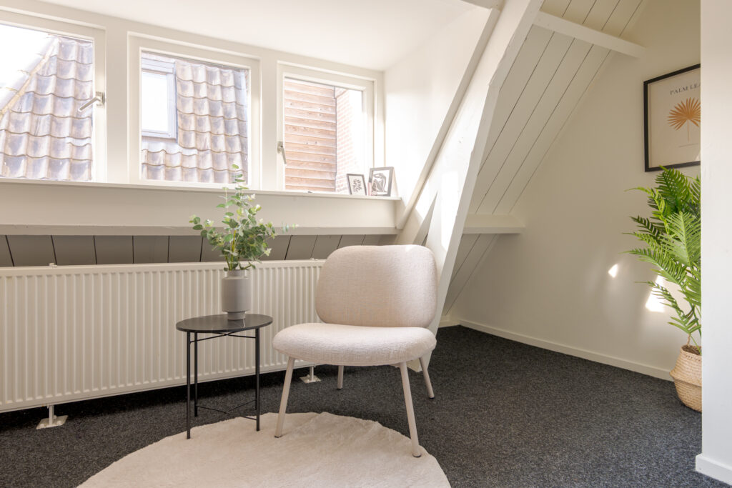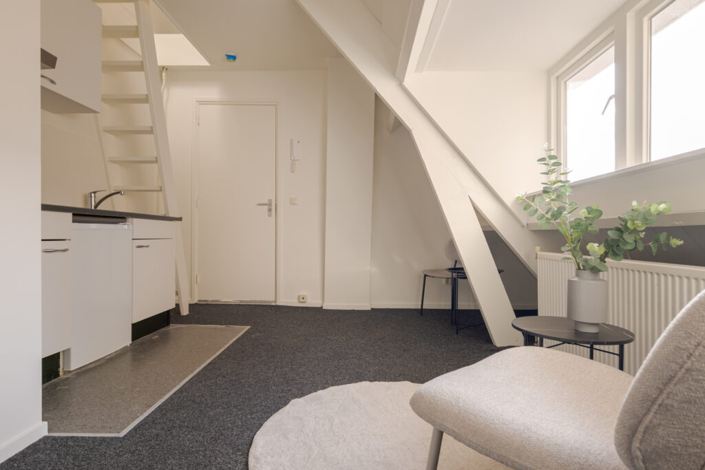 Dit gezellige appartement ligt op de tweede verdieping en biedt ruimte voor een fijne zit- en eethoek. De keuken is netjes opgesteld en vanuit de woonkamer is de badkamer bereikbaar, voorzien van een douche en wastafel. Via de trapopgang heb je toegang tot de ruimte waar je een slaapgedeelte kunt creëren. Het dakkapel zorgt voor een fijne en lichte sfeer in het appartement.