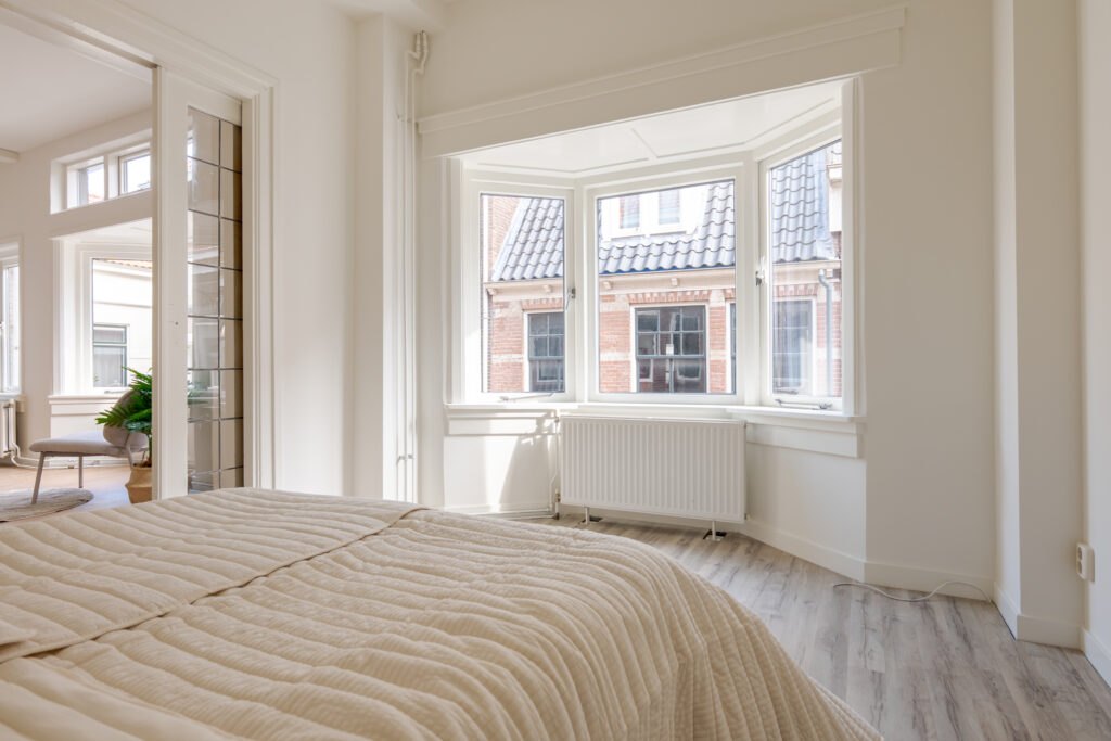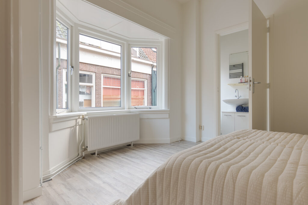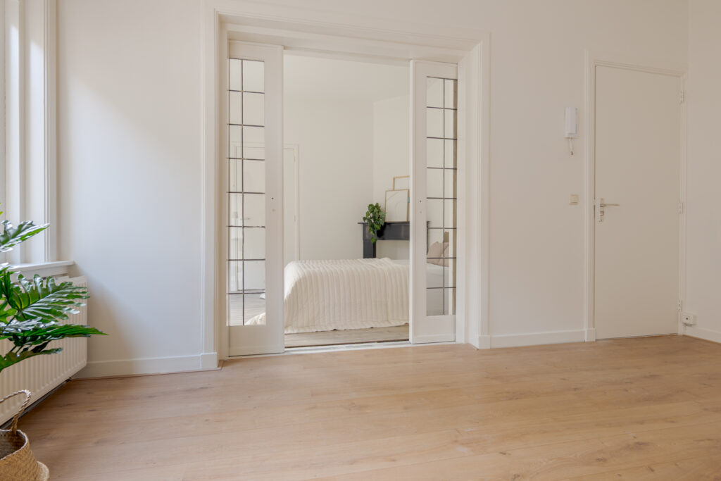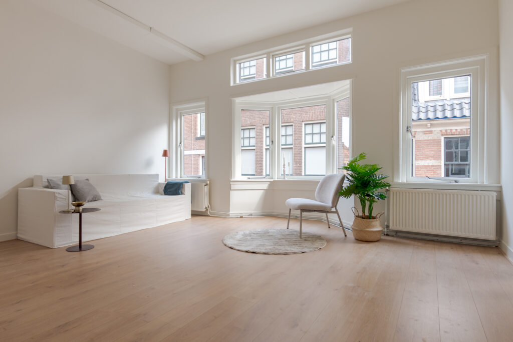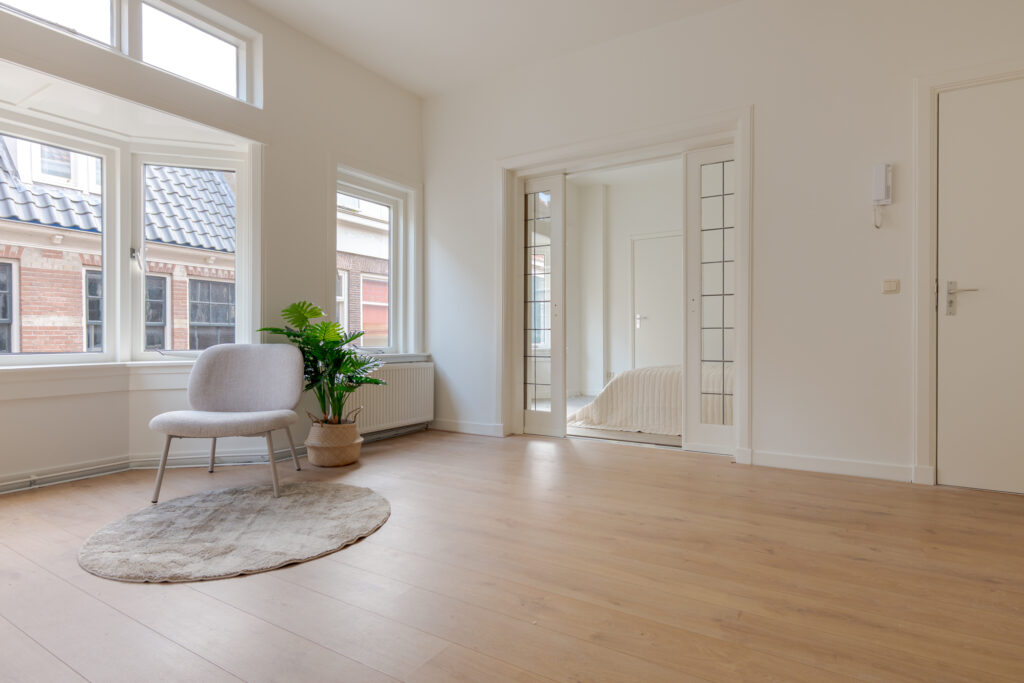 Via de trapopgang is de eerste verdieping van het pand bereikbaar. Vanaf de overloop ligt de toegang tot het ruime appartement, gelegen aan de voorzijde van het pand. De karakteristieke erkers zorgen voor veel natuurlijk licht en geven het appartement een gezellige sfeer.