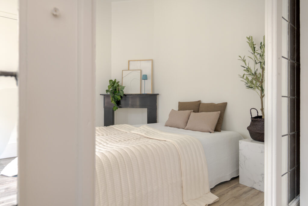 De woonkamer biedt volop ruimte voor een comfortabele zit- en eethoek. Via de charmante en-suite deuren bereik je de slaapkamer, die directe toegang biedt tot de eigen badkamer. De badkamer is voorzien van een wastafel en een douche.