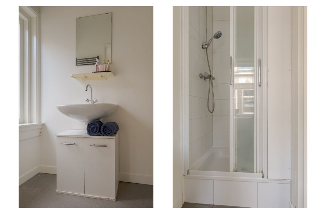 Op deze woonlaag wordt alleen het toilet gedeeld met één ander appartement. De overige voorzieningen zijn voor eigen gebruik.