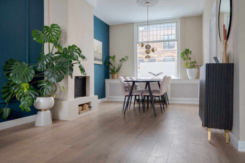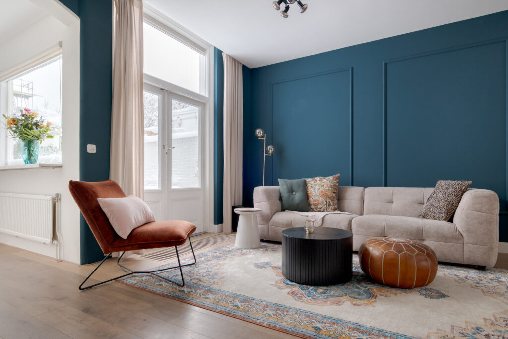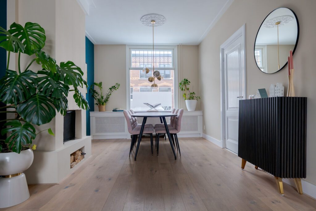 Bij binnenkomst wordt u verwelkomd in de hal met toegang tot het stijlvol betegelde toilet en een woonkamer vol sfeer. De woonkamer is een fijne leefruimte met glas-in-lood ramen aan de voorzijde en openslaande deuren aan de achterzijde. Hierdoor profiteert u van veel lichtinval en een prettige verbinding met de tuin. De open haard zorgt voor extra sfeer en warmte.