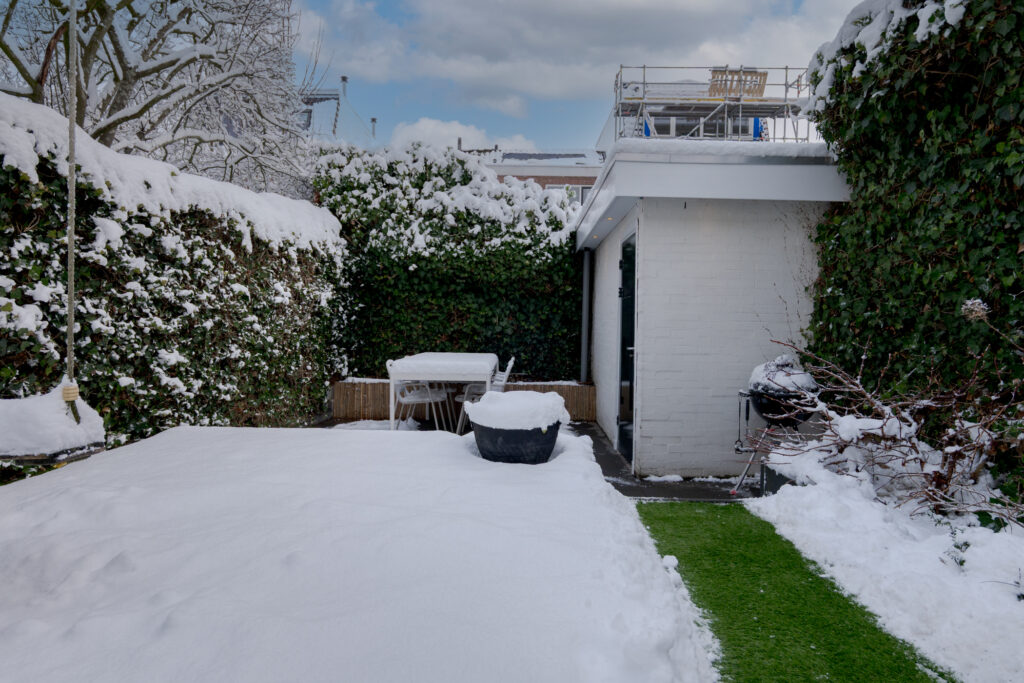 De achtertuin is verrassend ruim en ligt gunstig op het zuidoosten. Hierdoor geniet u hier van zowel de ochtend- als middagzon. De tuin is verzorgd aangelegd en biedt voldoende ruimte voor meerdere zitplekken. Achterin de tuin staat een vrijstaande stenen berging, ideaal voor fietsen en tuinspullen.