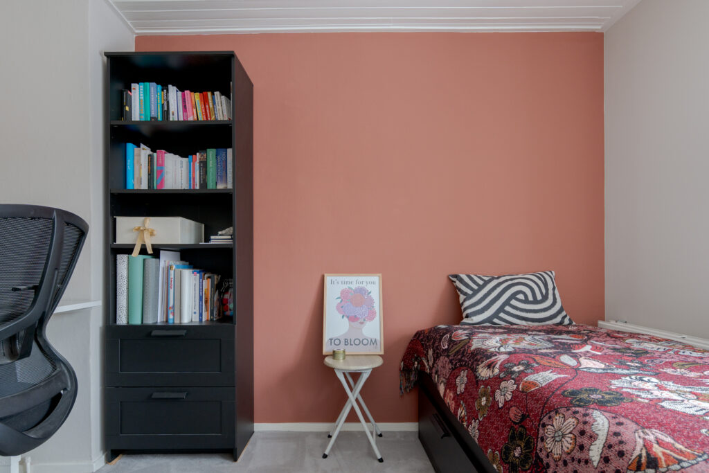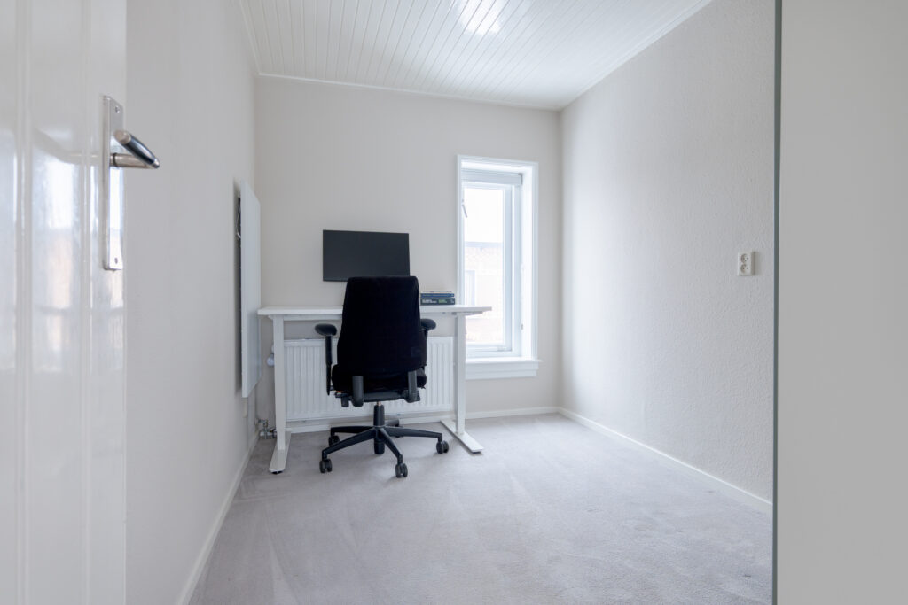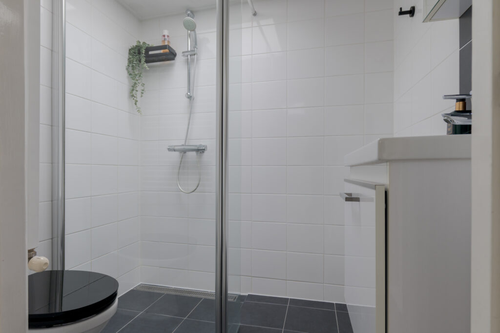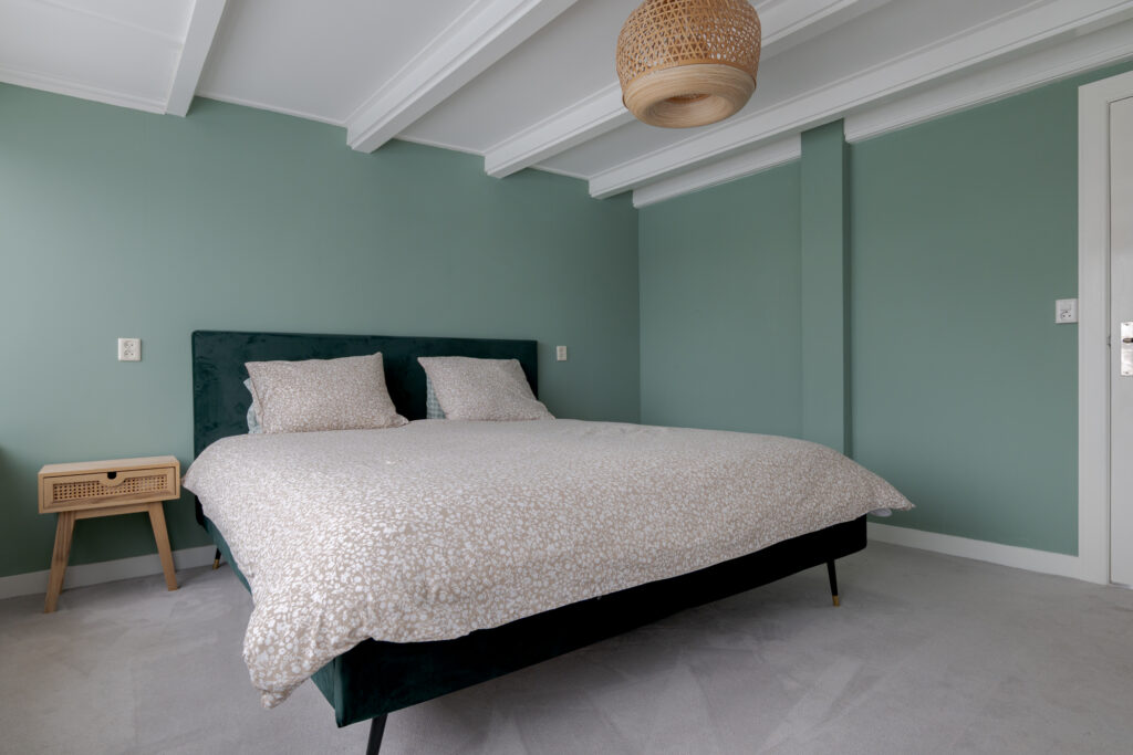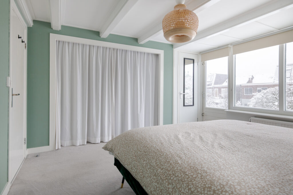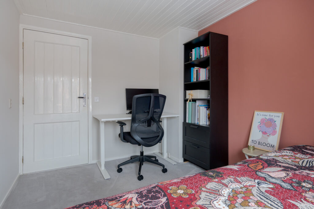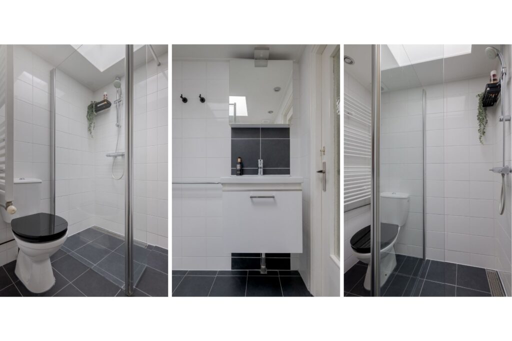 Op de eerste verdieping geeft de overloop toegang tot alle vertrekken. Hier treft u drie slaapkamers, waarvan één aan de achterzijde en twee aan de voorzijde van de woning. De grootste slaapkamer heeft een aparte ruimte voor de wasmachine en cv-ketel, praktisch en netjes uit het zicht. De badkamer is centraal gelegen en voorzien van een douche, wastafelmeubel, toilet en lichtkoepel.