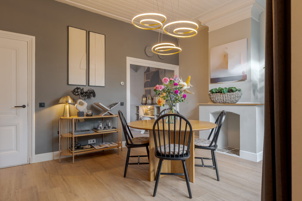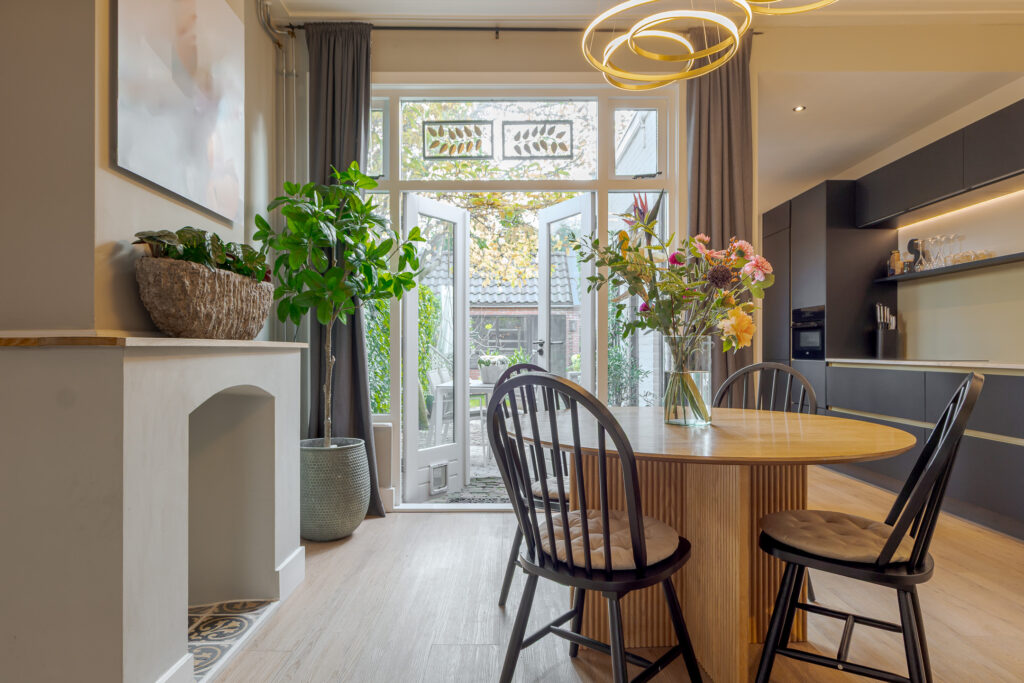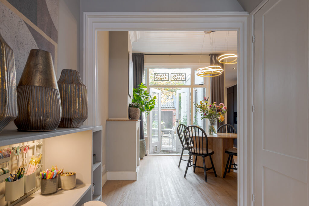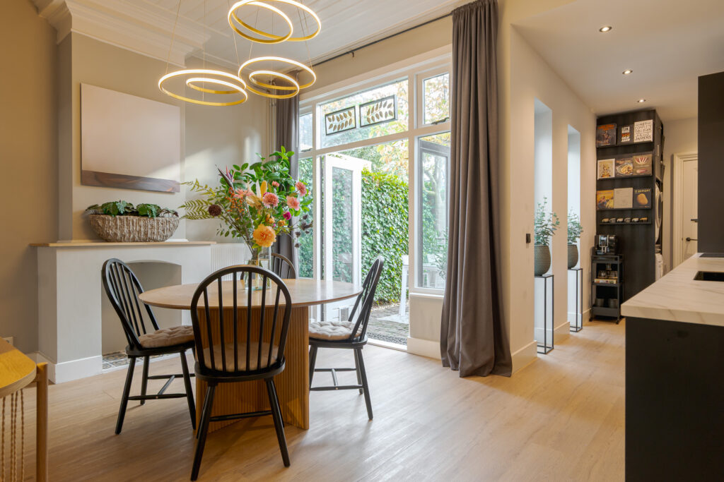 De woning ademt karakter vanaf het moment dat u de hal binnenstapt. Originele vloertegels, klassieke paneeldeuren en verfijnde sierlijsten zorgen voor een uitstraling waar u keer op keer van blijft genieten. De lichte woonkamer voelt ruim en uitnodigend aan, met volop plek voor een gezellige zithoek én een lange eettafel waar u samenkomt met familie of vrienden. Via openslaande deuren loopt u zó de tuin in, waardoor binnen en buiten op mooie dagen naadloos in elkaar overlopen.