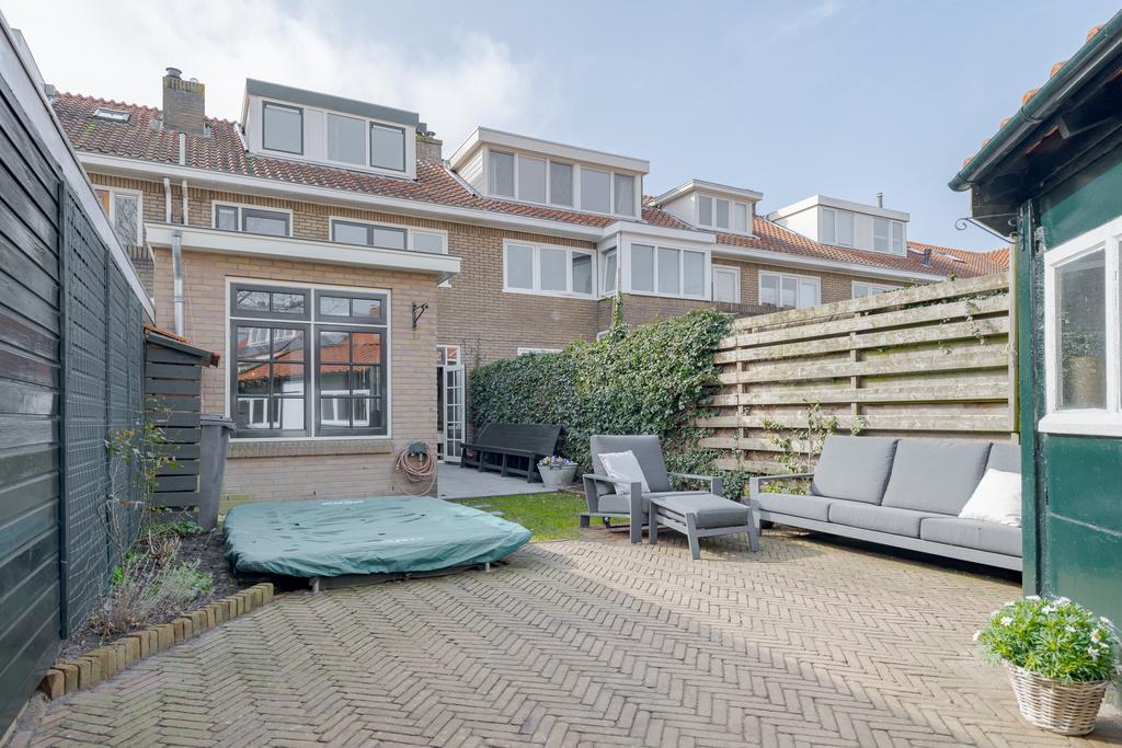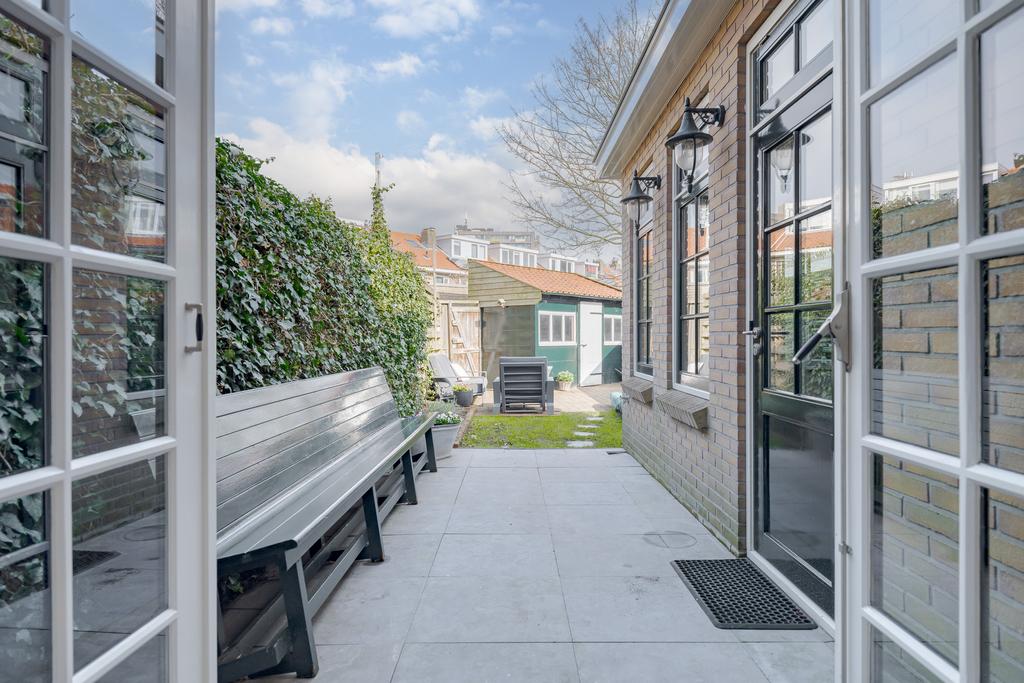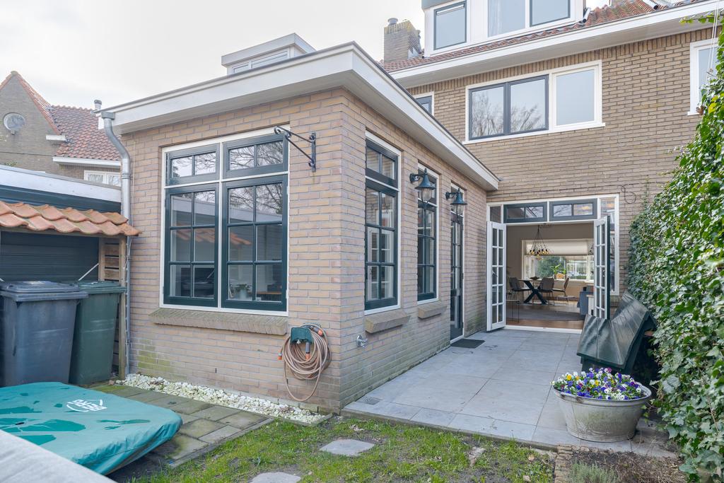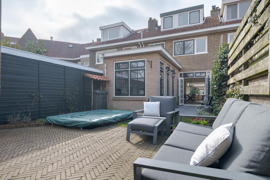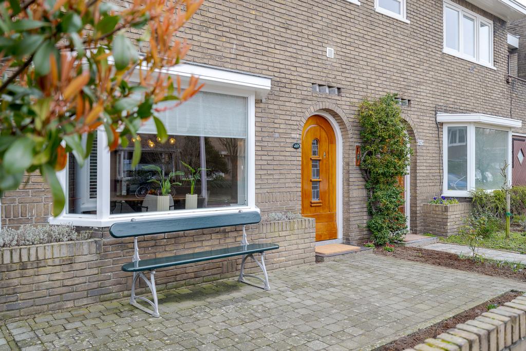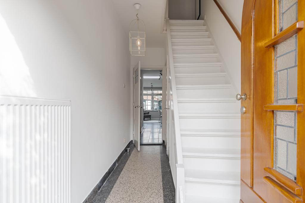 Dan de woning… De ruime voortuin zorgt voor privacy en geeft tegelijkertijd ruimte voor fietsen ofwel een leuke zitplek! Zowel aan de buiten- als aan de binnenzijde zijn de karakteristieke details goed bewaard gebleven. De terrazzo vloer in de hal is uitnodigend en kenmerkend voor deze jaren ’30 woning. De woonkamer is al even sfeervol met aan de voorzijde een prachtige erker, zichtbaar balkenplafond en eikenhouten vloer. Het zitgedeelte is aan de achterzijde gelegen, via de openslaande deuren heeft u van hieruit toegang tot de tuin.
