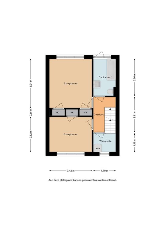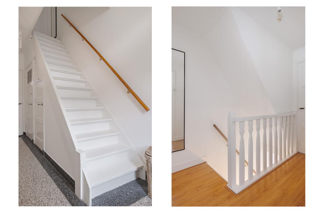 Op de overloop bevindt zich een aparte wasruimte, tevens is van hieruit toegang naar de tweede etage via een vaste trap.