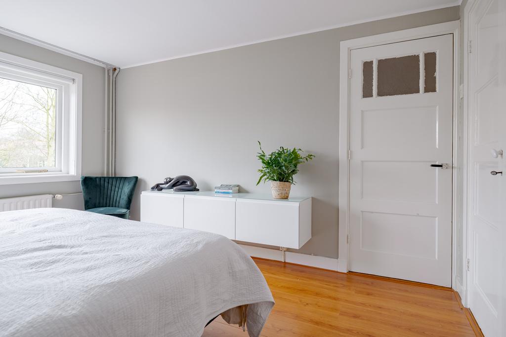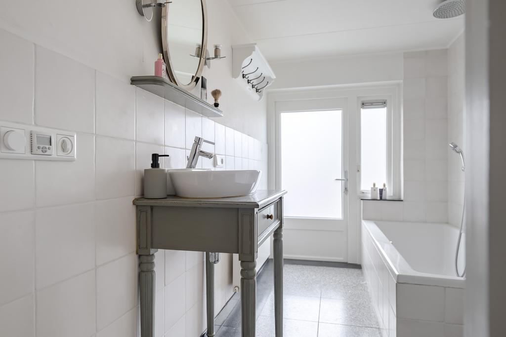 Op de eerste etage bevinden zich 2 slaapkamers, een separate wasruimte en de badkamer. De slaapkamers zijn licht en ruim. De ouderslaapkamer is voorzien van inbouwkasten met de prachtige kenmerkende paneeldeuren. De badkamer is opgesteld in neutrale kleuren en voorzien van een bad met douche, toilet en op maat gemaakt wastafelmeubel. De vloer met vloerverwarming is helemaal in stijl met de karakteristieke elementen in de rest van de woning!
