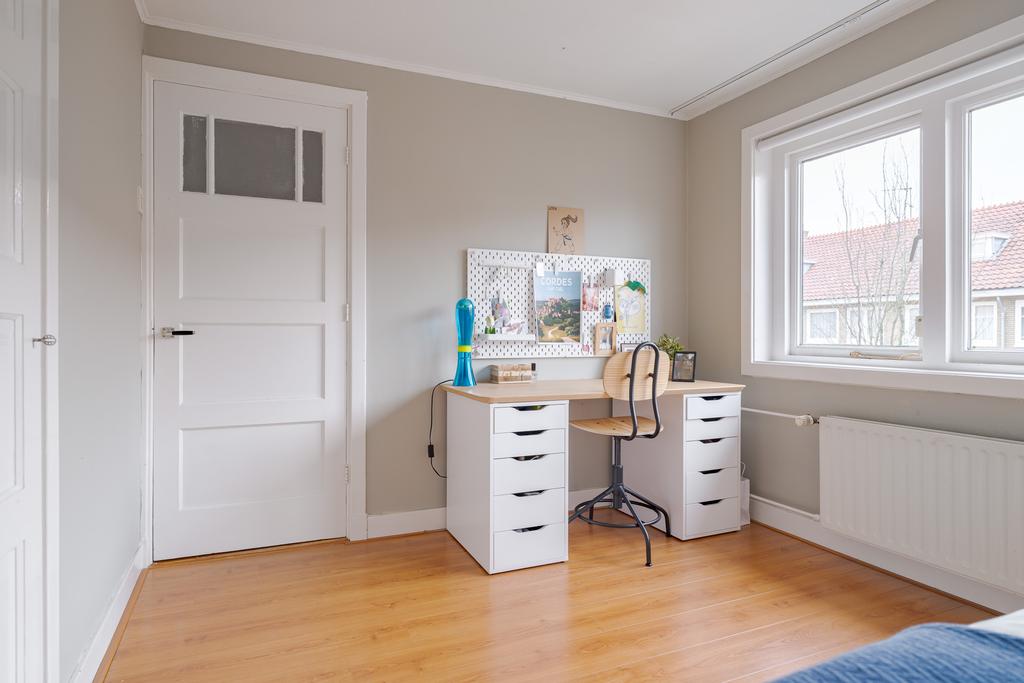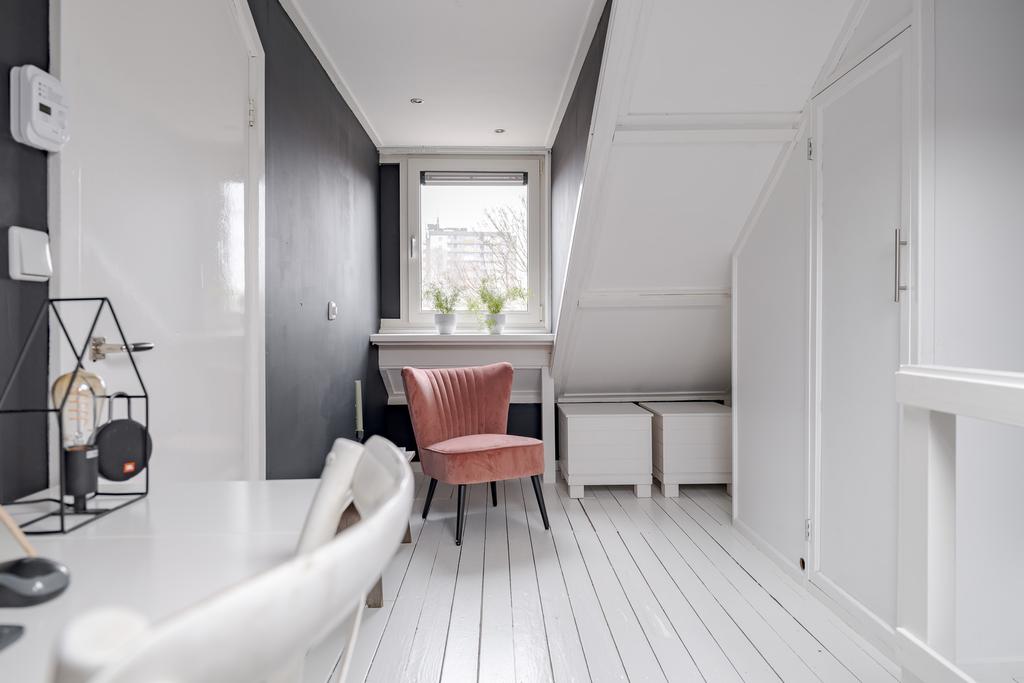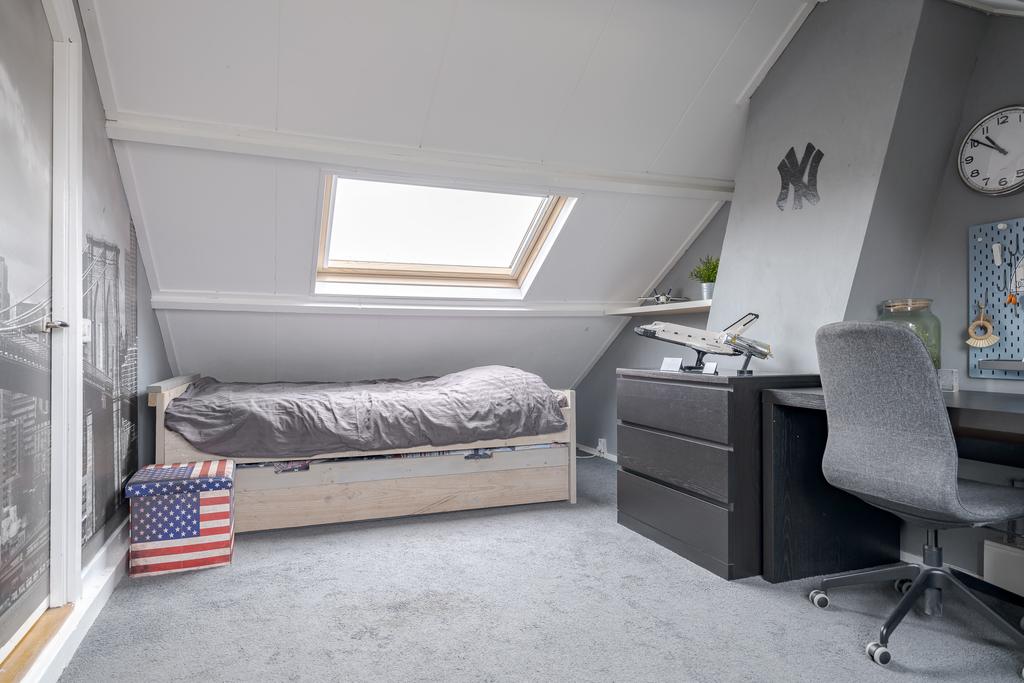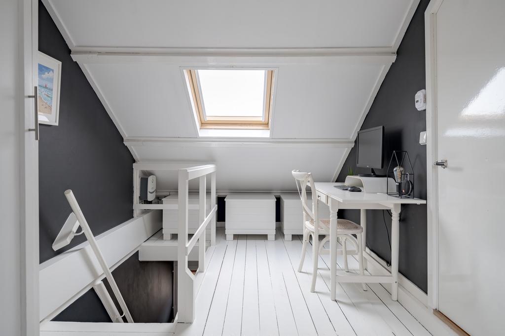 Hier bevindt zich een derde slaapkamer, licht en ruim dankzij de dakkapel aan de achterzijde. De voorzolder met in een maatkast weggewerkte cv-opstelling biedt zelfs nog een werkplek.