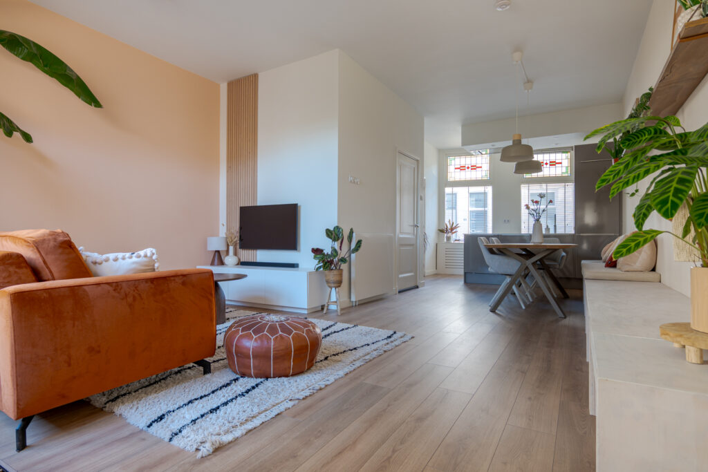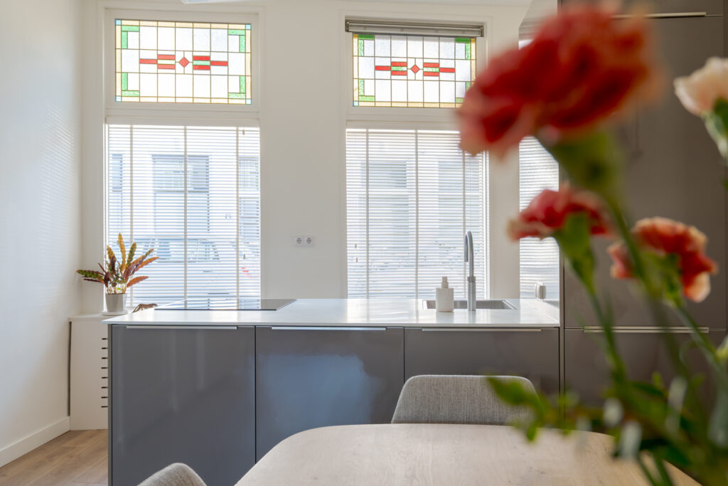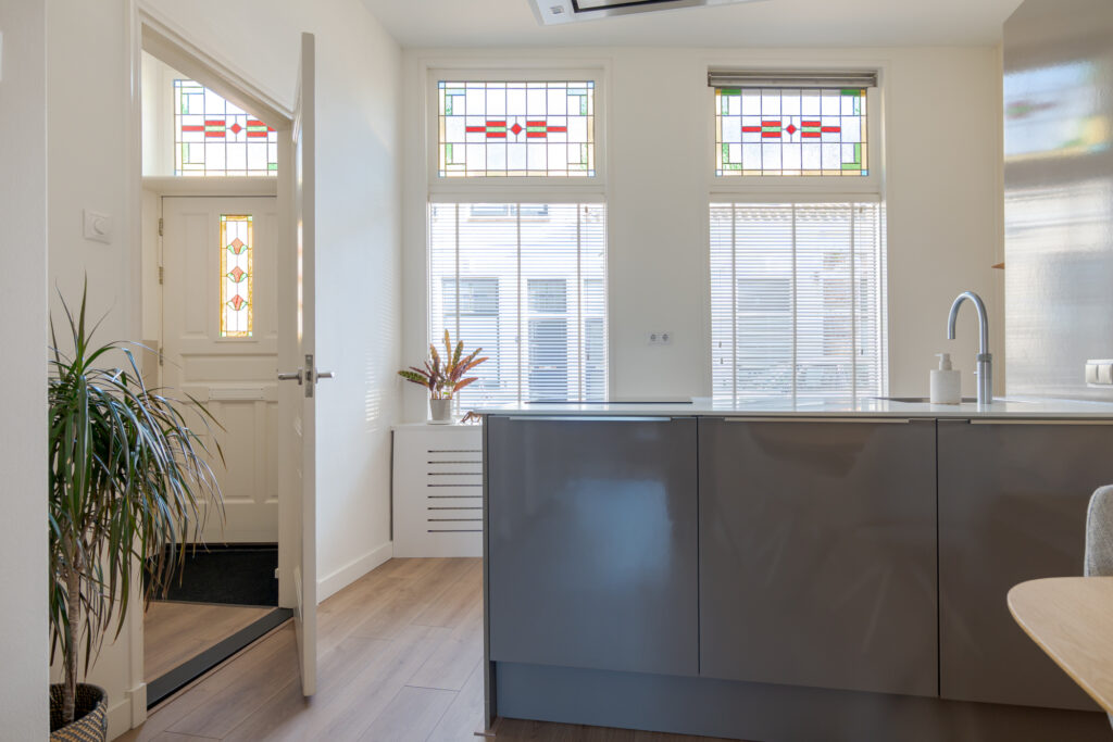 De karakteristieke gevel met glas-in-loodramen zorgt direct voor een warme en uitnodigende eerste indruk. Daarbij is de achtergevel in 2023 voorzien van nieuw stucwerk en zijn de kozijnen aan de voorzijde in 2024 geschilderd, wat de woning een verzorgde uitstraling geeft.