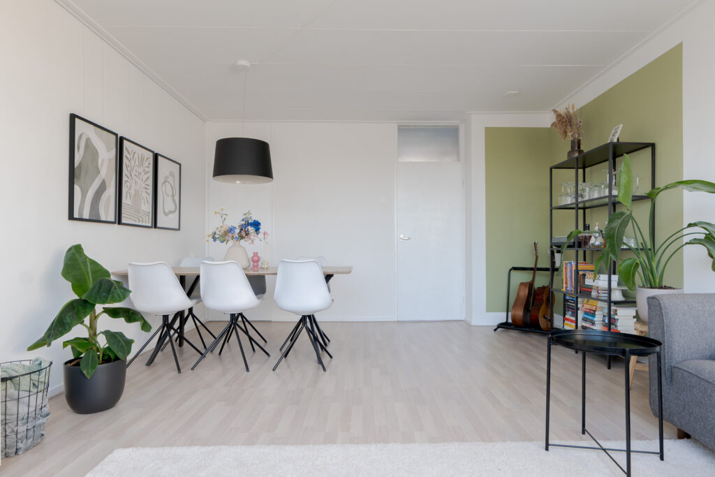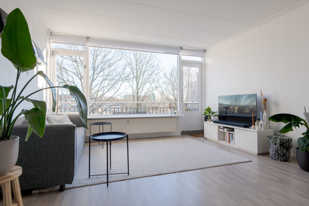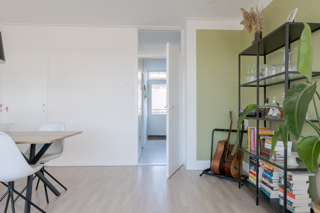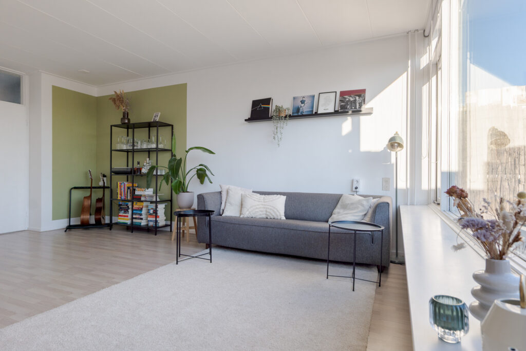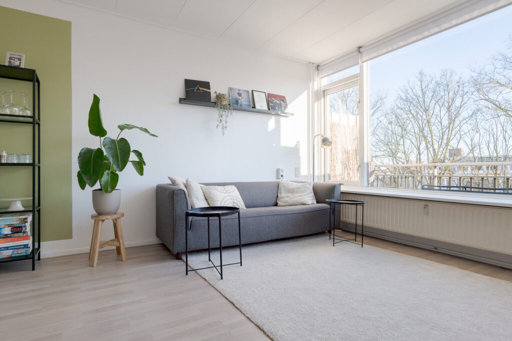 Via de galerij op de tweede woonlaag van het gebouw komt u binnen in de hal van het appartement, vanuit hier heeft u toegang tot de dichte keuken, aan de galerij gelegen, het toilet, trapopgang naar de verdieping en de woonkamer met toegang tot het balkon op het oosten. Perfect voor een kopje koffie in de ochtend! De woonkamer is ruim van opzet en de grote raampartijen zorgen voor een prettige lichtinval.