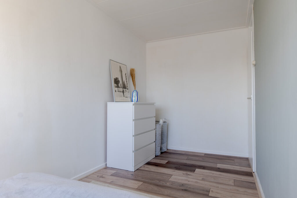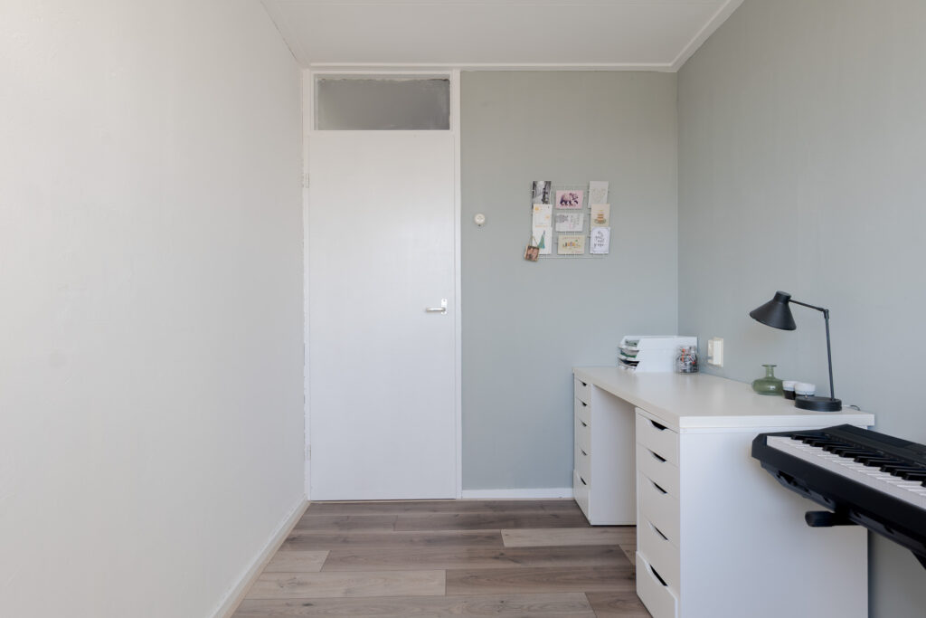Op de verdieping bevinden zich drie slaapkamers, allemaal bereikbaar via de overloop. De badkamer is centraal gelegen en voorzien van een douche en een wastafelmeubel. Op de overloop zijn vaste kasten aanwezig, wat zorgt voor extra bergruimte. Daarnaast beschikt het appartement over een eigen berging op de begane grond. Ideaal voor de fietsen. Rondom het gebouw is er voldoende parkeergelegenheid.
